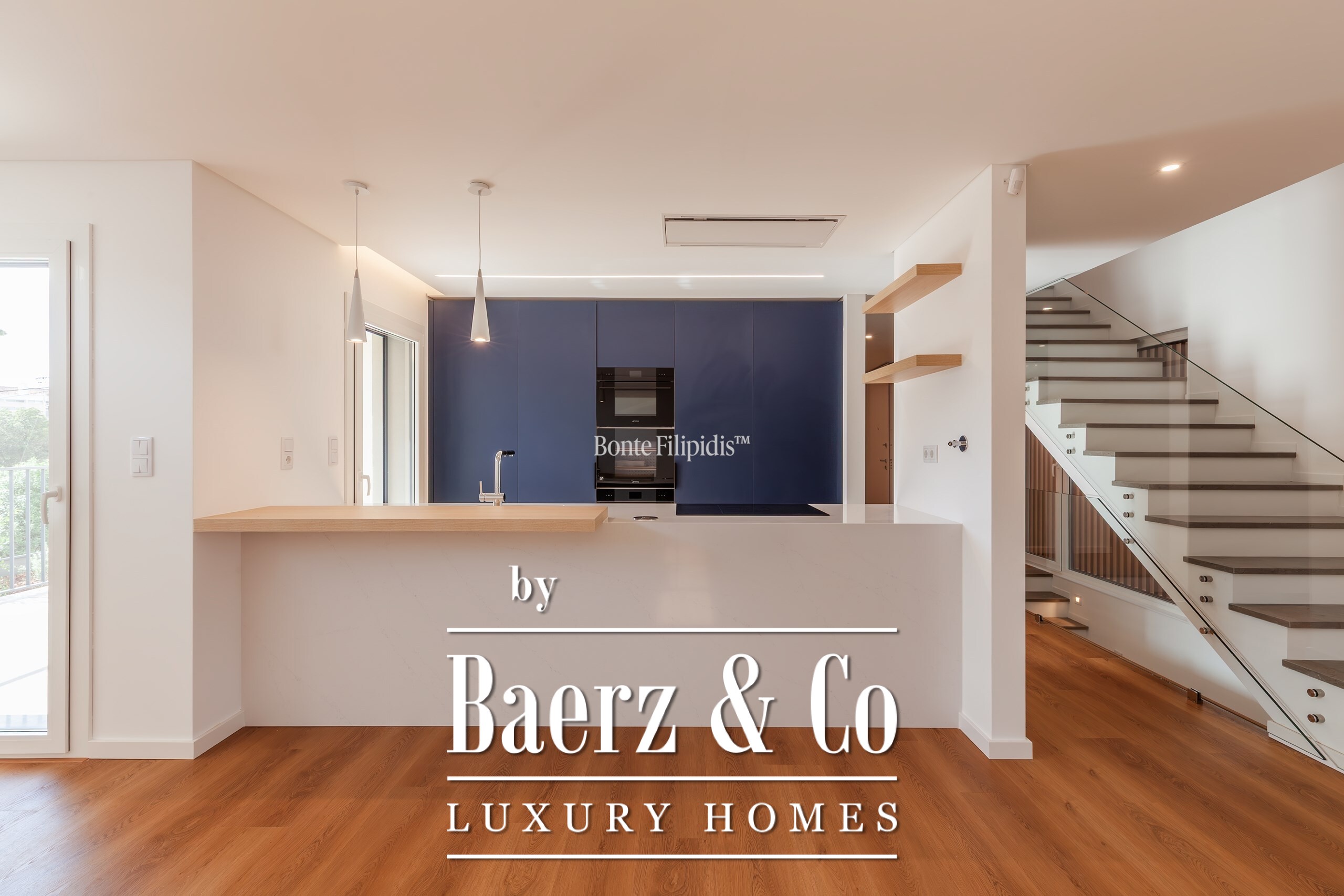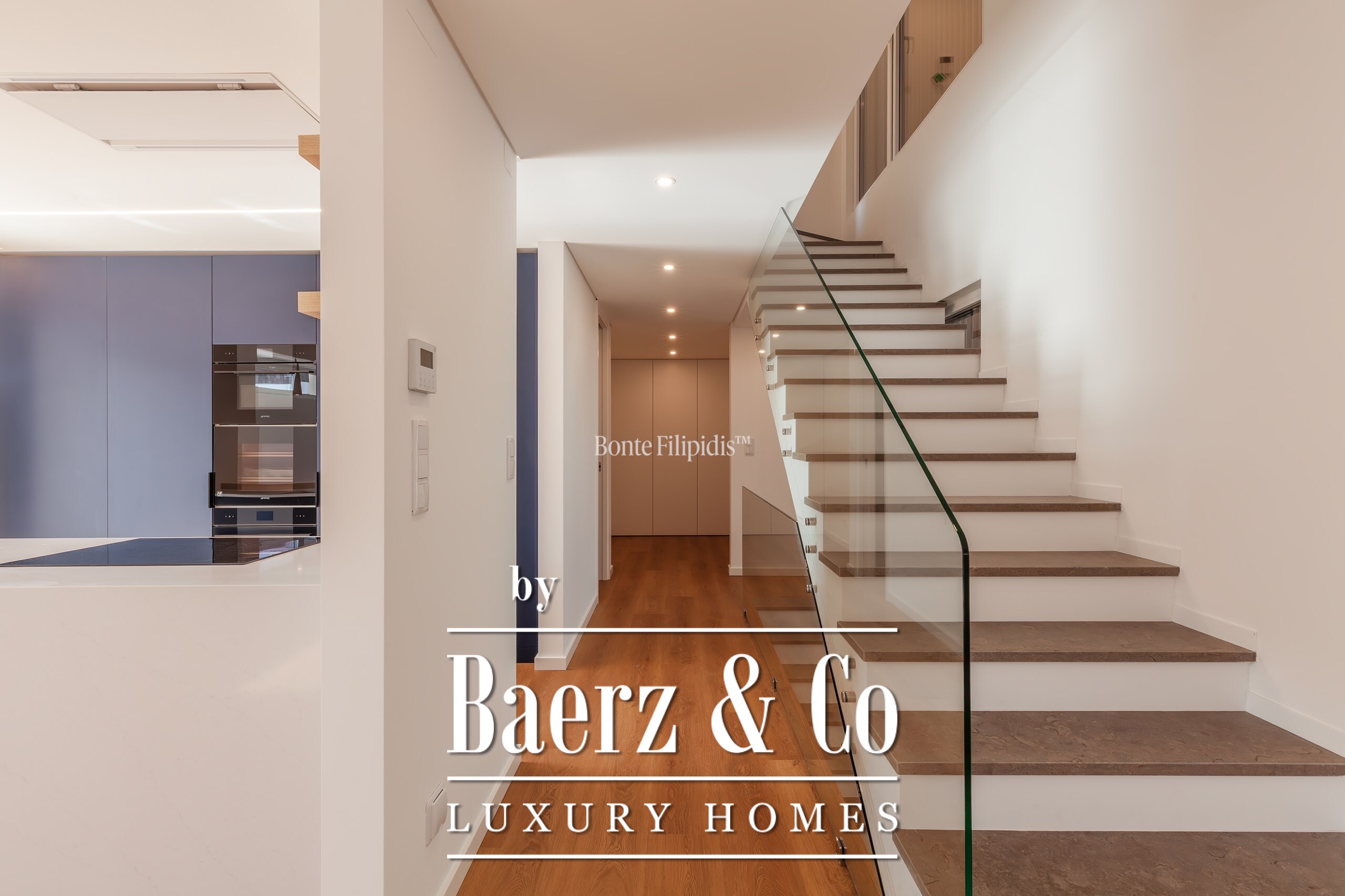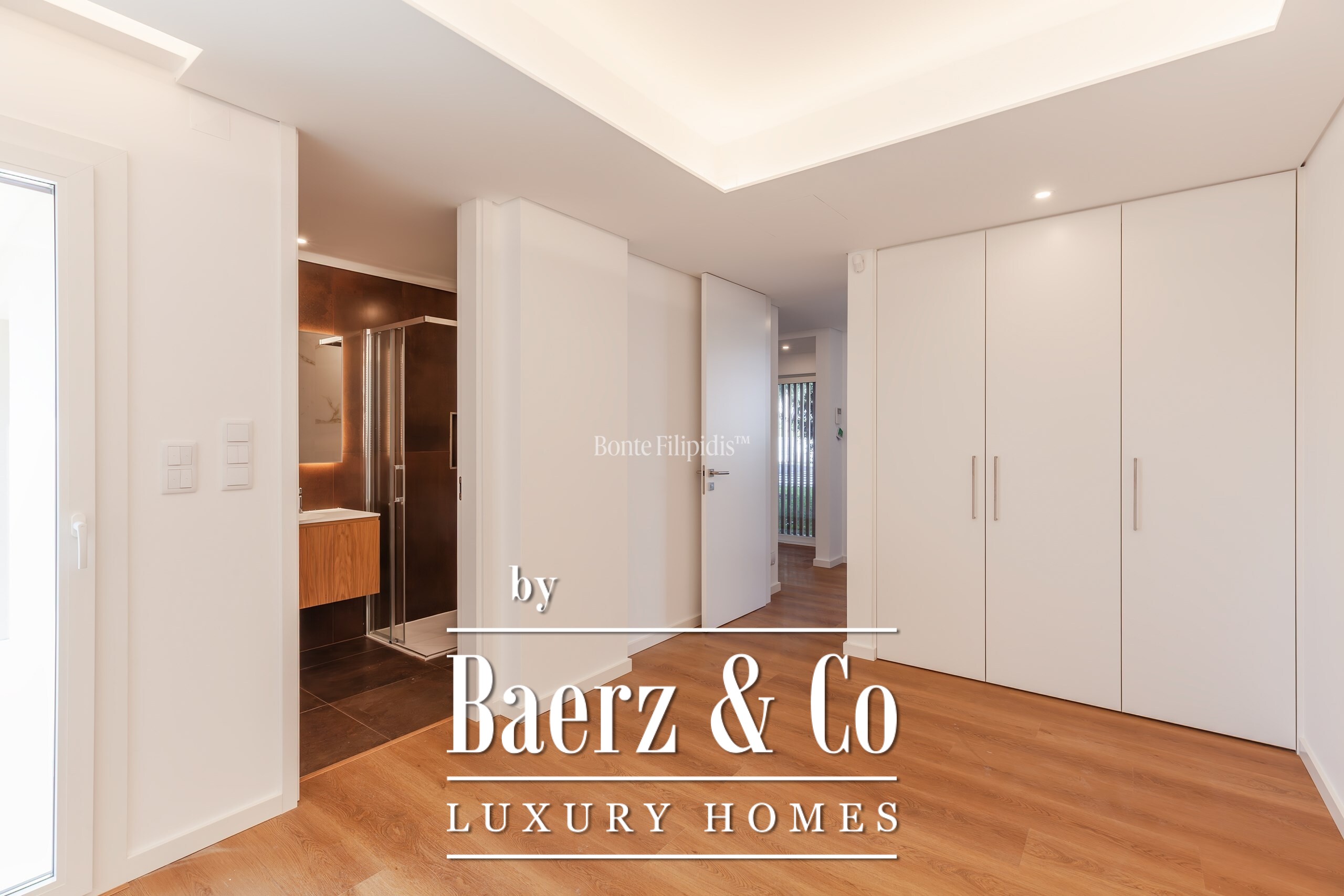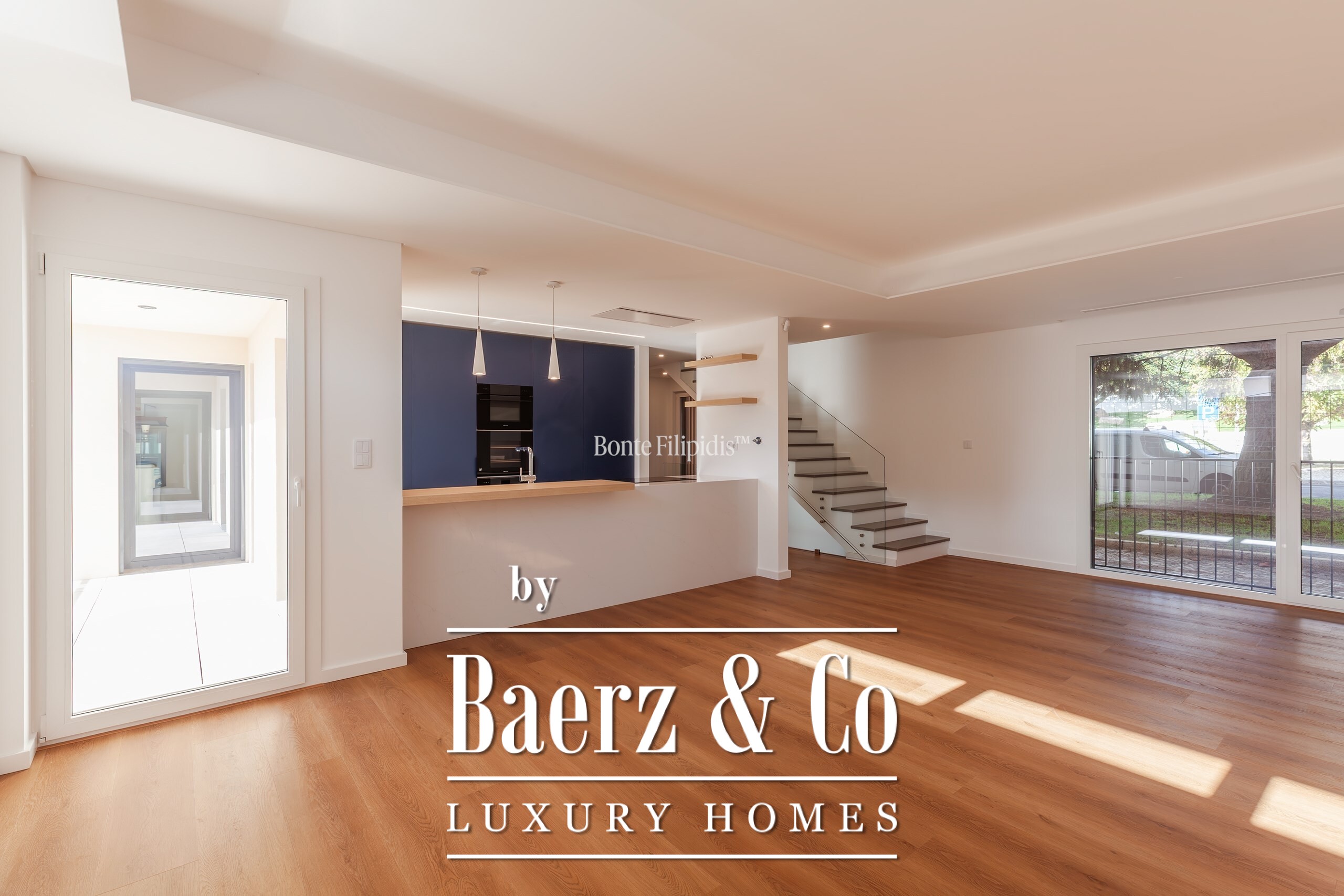 Op de begane grond verbindt een open keuken met hoogwaardige inbouwapparatuur zich met de woonkamer, ideaal voor samenkomsten of rustige avonden. Directe toegang tot het exterieur vergroot de lichtinval en het gevoel van verbondenheid, terwijl een suite op deze verdieping voor flexibiliteit zorgt. Op de eerste verdieping vindt u een serene master suite met inloopkast, verder twee extra slaapkamers en een luxe badkamer, alle met veel natuurlijk licht en hoogwaardige afwerking.