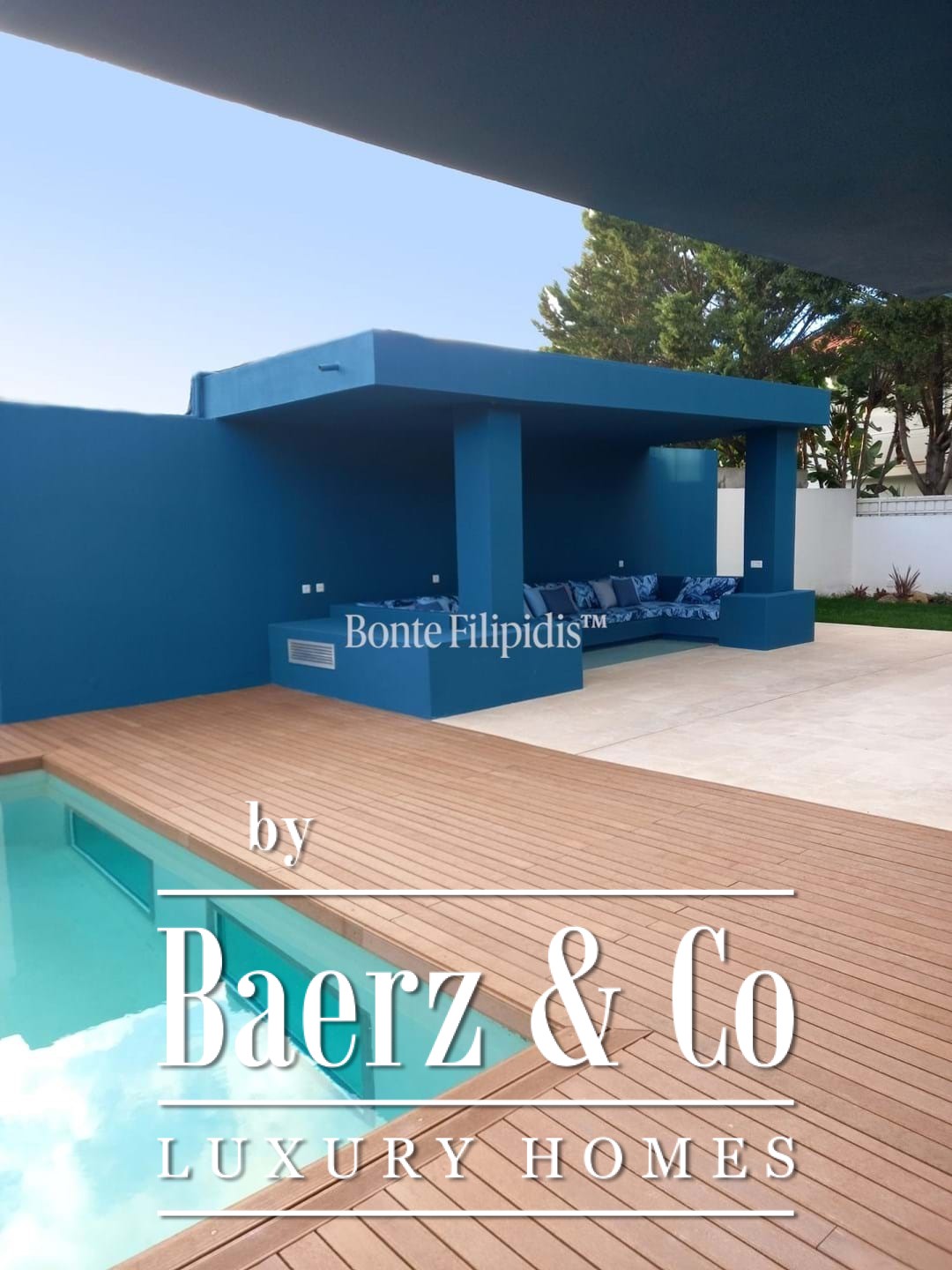 Villa Cascais e Estoril biedt 598 m² aan zorgvuldig vormgegeven woonruimte en belichaamt een harmonie tussen privacy en sociabiliteit. Deze villa met vijf slaapkamers is verdeeld over drie verdiepingen, waarbij het ontwerp evenveel aandacht besteedt aan dagelijks comfort als aan momenten van samenzijn. Bij binnenkomst overheerst een gevoel van ruimtelijkheid; de woonkamer en eetkamer van 65,64 m² openen direct naar 499 m² buitenruimte, waardoor de tuin en het het hele jaar door verwarmde zoutwaterzwembad naadloos worden geïntegreerd. De hoofdverdieping strekt zich uit tot een volledig uitgeruste keuken, een gastentoilet en een slaapkamer met badkamer en suite, met een doordachte doorstroming tussen de sociale zones.