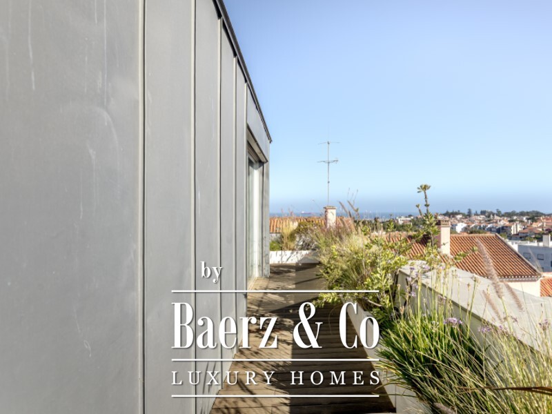 Op de bovengelegen verdieping opent een tweede lichte living direct naar het privé dakterras van ruim 100 m². De aangrenzende multifunctionele ruimte kan uitstekend dienen als thuiskantoor, extra slaapkamer of ontspanningsruimte. Het buitenleven krijgt hier extra allure dankzij panoramische vergezichten over Cascais en de Atlantische Oceaan, waarbij zeldzame privacy wordt geboden voor rust of samenkomsten.