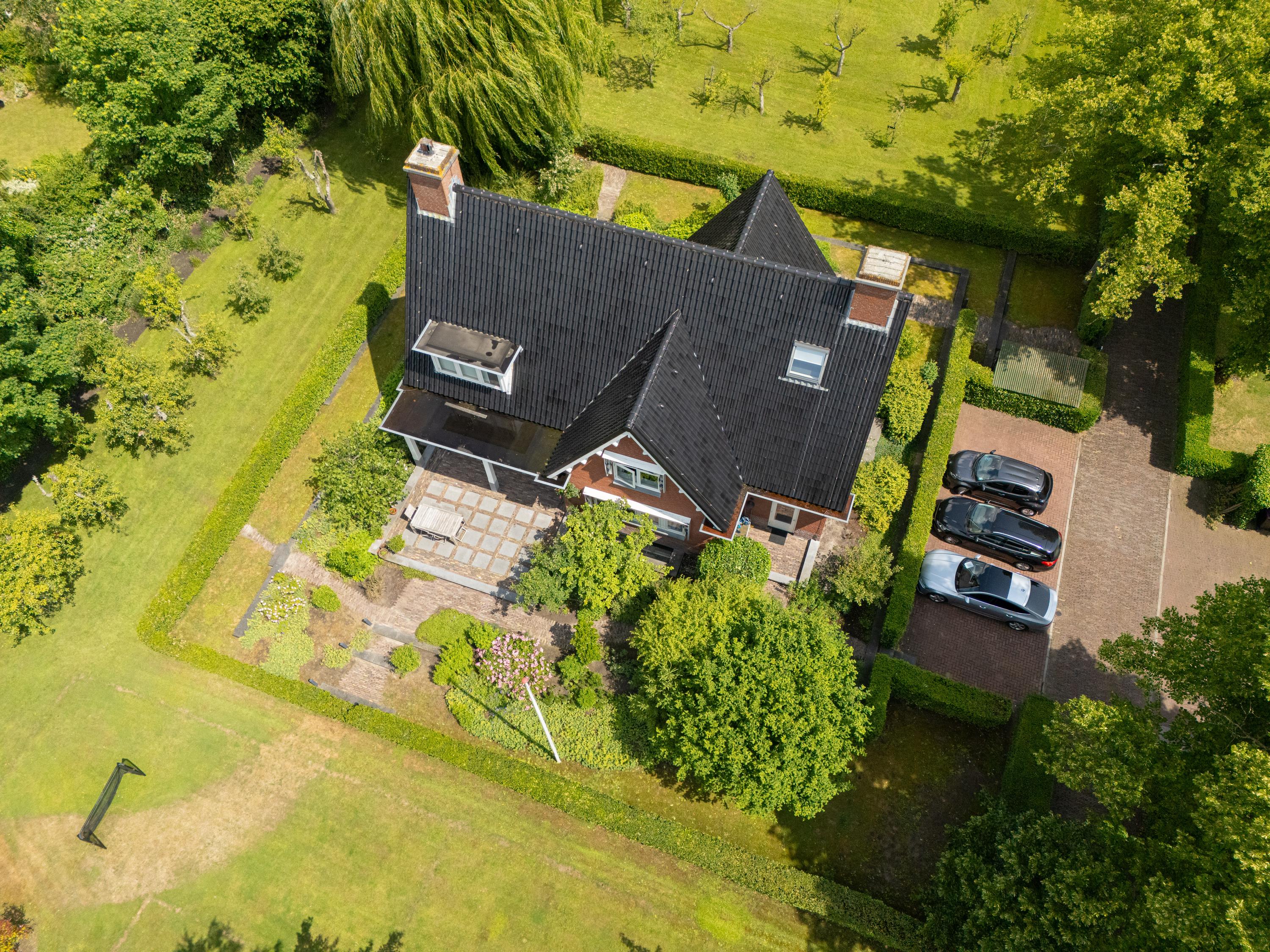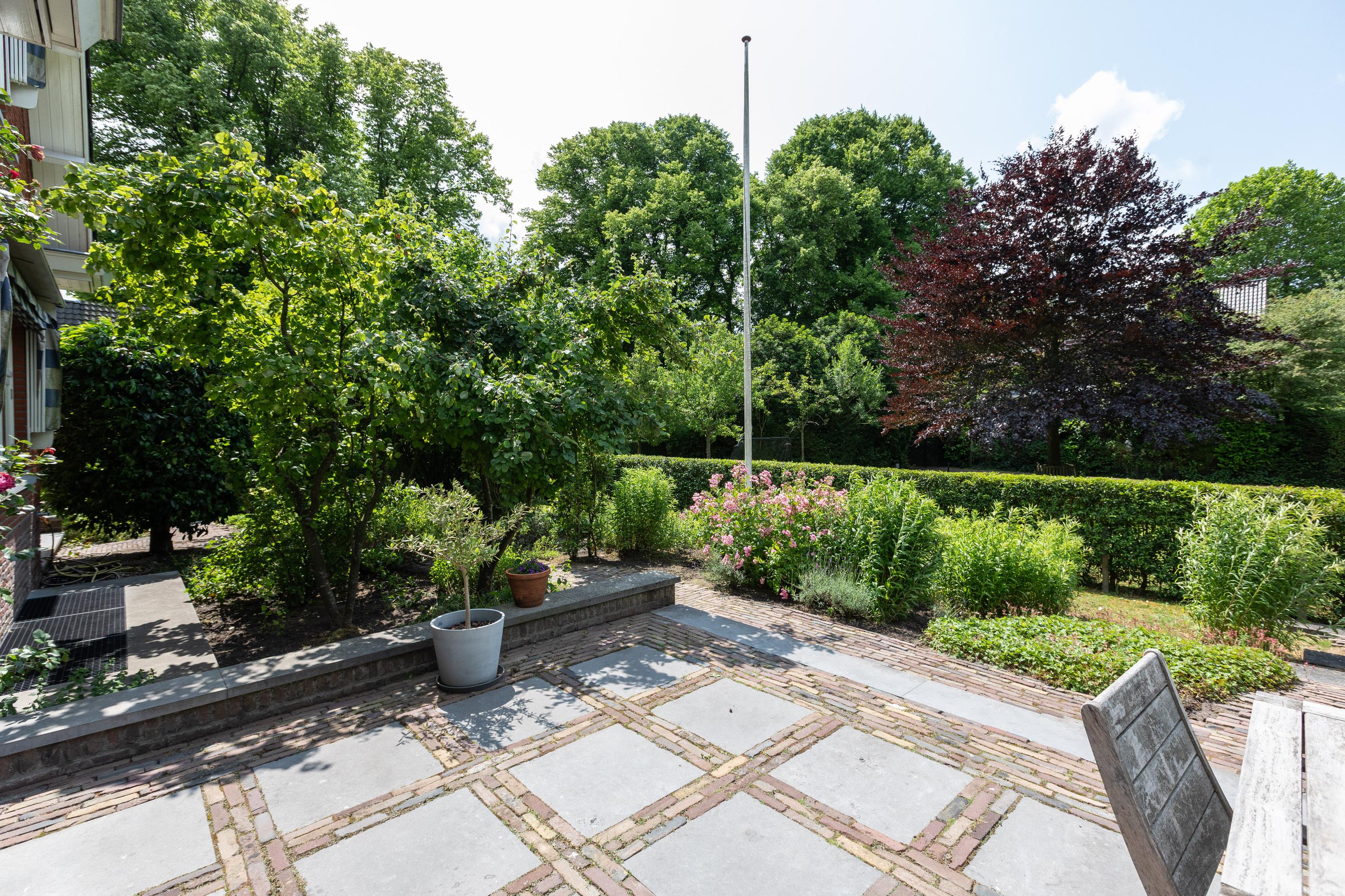 Entree, hal met garderoberuimte en meterkast. Ruime hal met aangrenzend de studeerkamer (3.80 x 3.40m). Toiletruimte. Woonkamer met fraaie visgraat-parketvloer en open haard. De woonkamer heeft meerdere openslaande deuren naar de omliggende tuin. Woonkeuken (Siematic, 4.18 x 5.30m) met Amerikaanse koel-/vrieskast, 6-pitsgaskookplaat met oven, afzuigkap, vaatwasser en aparte combi oven-/magnetron. Bijkeuken alwaar aansluitingen voor de wasmachine en droger. Zonnig, riant terras (6.05 x 6.22m).