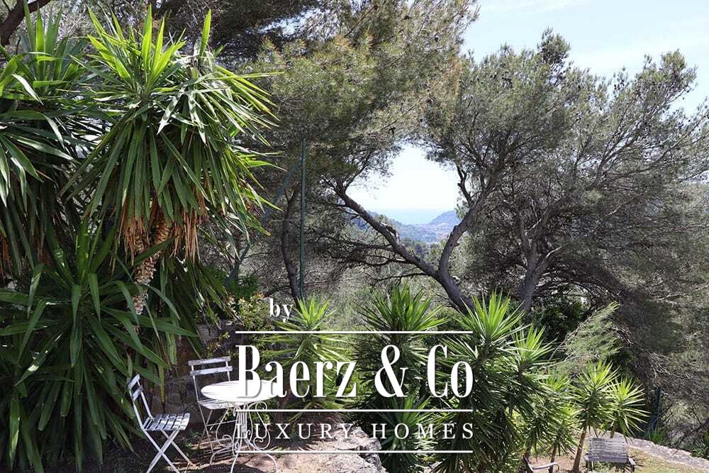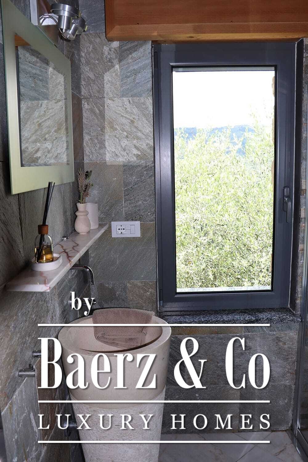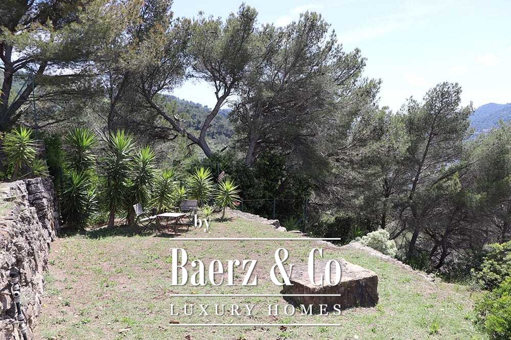 Het zwembad van 11 bij 4 meter, volledig gerenoveerd in 2022, ligt naast een royaal terras met uitzicht over de vallei en de zee. Diverse terrassen, buitenkeukens en schaduwrijke pergola’s nodigen uit tot ontspannen tafelen in alle seizoenen. Paden rondom de woning worden omzoomd door olijfgaarden, waar de vele zonuren zorgen voor een indrukwekkende oogst.