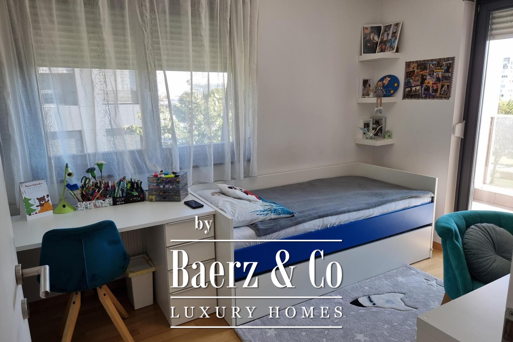Het interieur is uitgerust met maatwerkmeubilair, eiken parket en hoogwaardige keramiek. De living sluit aan op een royale loggia, die veel natuurlijk licht ontvangt vanuit het oosten, noorden en zuiden. Twee slaapkamers openen naar een tweede loggia; zo ontstaat er een prettig ritme van privé buitenruimte binnen de woning. De master suite heeft een eigen badkamer en door het hele appartement zijn inbouwkasten aanwezig. Afwerkingen zoals Laufen-sanitair, Hansgrohe-kranen, houten kozijnen en vloerverwarming ademen ingetogen luxe, aangevuld met veiligheidsdeuren, airconditioning, video-intercom en toegang via twee liften.