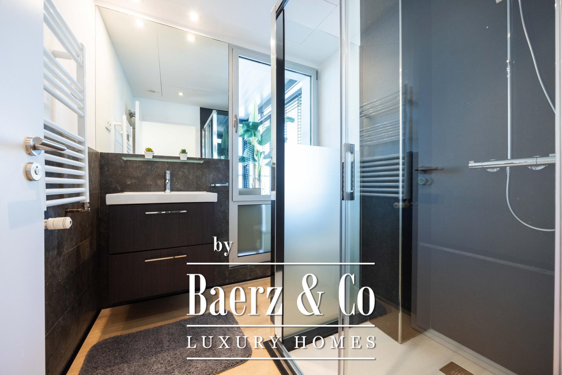 Het natuurlijke licht stroomt royaal door de hoge raampartijen die het interieur verbinden met buiten. De woonkamer, met een elegante open haard op hout, loopt vloeiend over in een royale open woonkeuken voorzien van Bosch-apparatuur, inductiekookplaat met geïntegreerde afzuiging en Amerikaanse koelkast. De ruimtes zijn ontworpen voor samenzijn en een ontspannen dagelijkse routine: verfijning wordt gecombineerd met toegankelijk comfort.