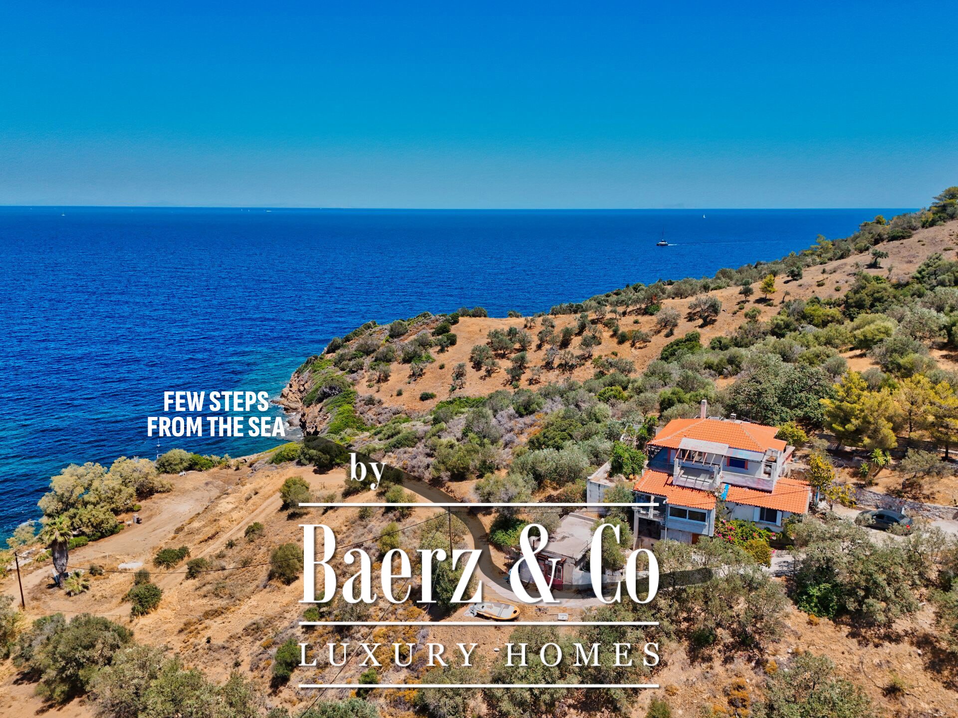 Access to the property is easy via a dirt road, and its location is particularly privileged, as it lies just 7 kilometers from the center of a charming seaside town and only 10 minutes from the island of Poros, offering immediate access to cosmopolitan options without sacrificing peace and seclusion.