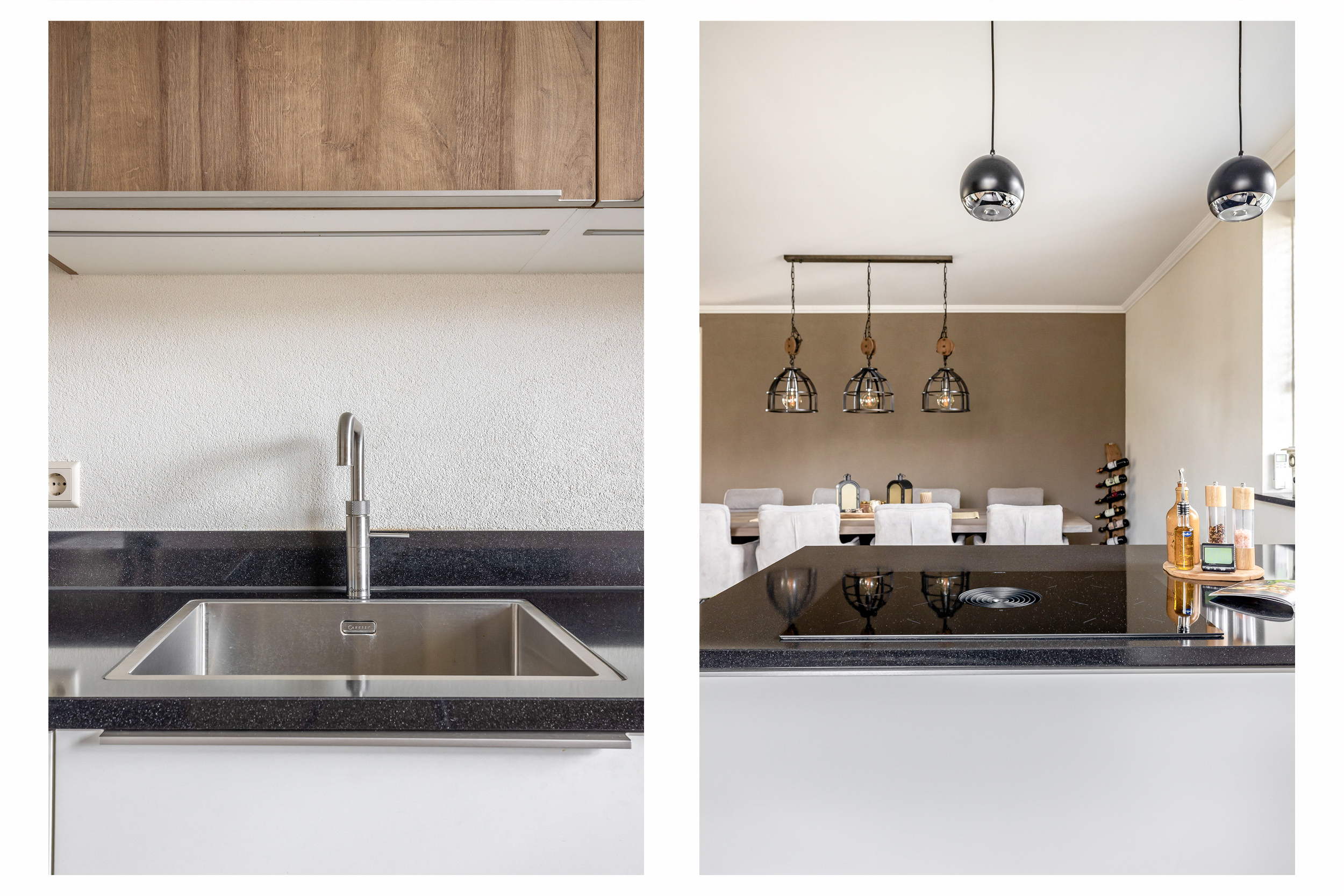 Via de stijlvolle entree kom je binnen in een ruime hal met vernieuwd zwevend toilet en fonteintje. Dubbele deuren leiden naar de zeer royale living, die in 2022 volledig is verbouwd. De leefruimte bestaat uit een luxe woonkeuken, eetkamer en zithoek met erker en openslaande deuren naar het terras. De moderne keuken is van alle gemakken voorzien: een inductiekookplaat met Bora-afzuiging, 2 identieke combi-ovens, grote koelkast en vriezer, vaatwasser, Quooker en een composiet werkblad. In de bijkeuken vind je aansluitingen voor wasmachine en droger en een deur naar buiten. Dankzij de grote raampartijen en de erker met openslaande deuren valt het daglicht rijkelijk binnen. De sfeervolle gashaard en inbouwspots maken het plaatje compleet. Op de begane grond bevindt zich verder een ruime slaapkamer met maatwerkkasten en een luxe badkamer ensuite (2022) met inloopdouche, zwevend toilet, wastafelmeubel en designradiator. Dit maakt gelijkvloers wonen mogelijk zonder in te leveren op comfort.