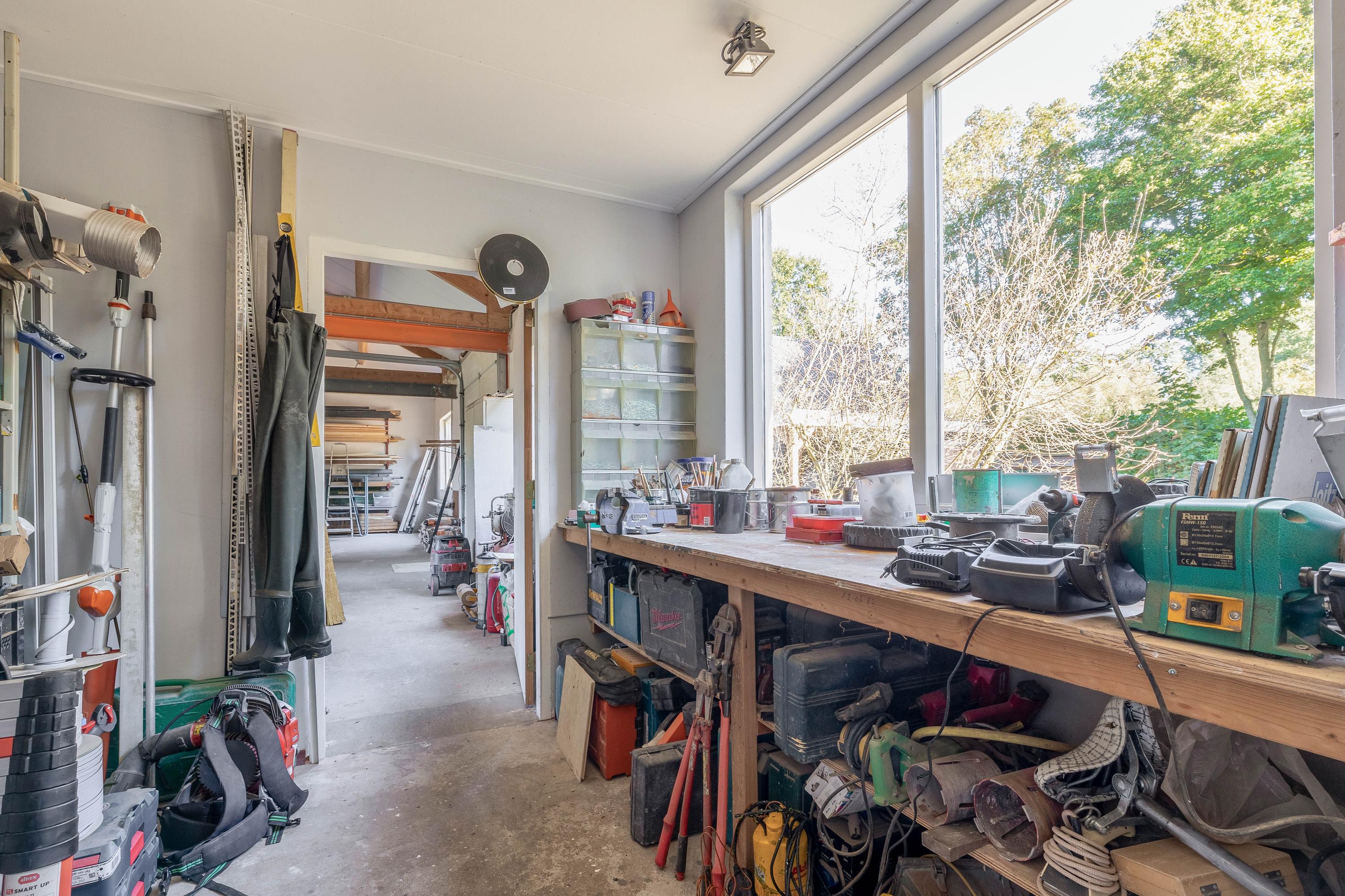 Achter het huis vind je een enorme werkplaats van meer dan 115 m2, die in 2012 volledig gerenoveerd is met onder andere een nieuw pannendak. Ideaal voor ondernemers die werken aan huis, praktijkruimte, mantelzorgwoning, fanatieke klussers, hobbyisten of voor wie extra opslag nodig heeft. De werkplaats is makkelijk bereikbaar via een brede oprit. Hier kun je jouw werk en wonen op een unieke manier combineren zonder concessies te hoeven doen, want er is in 2024 ook nog een garage gebouwd en een carport.