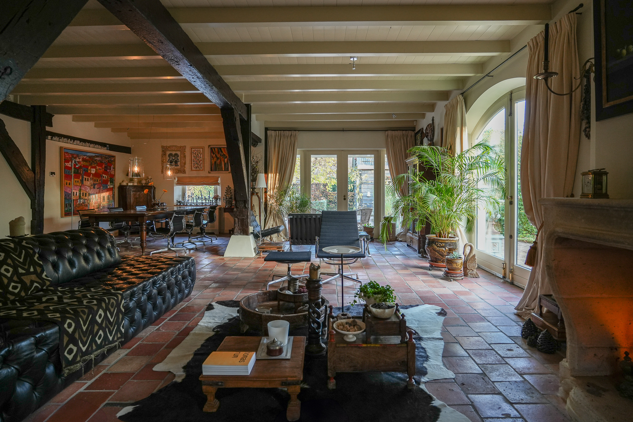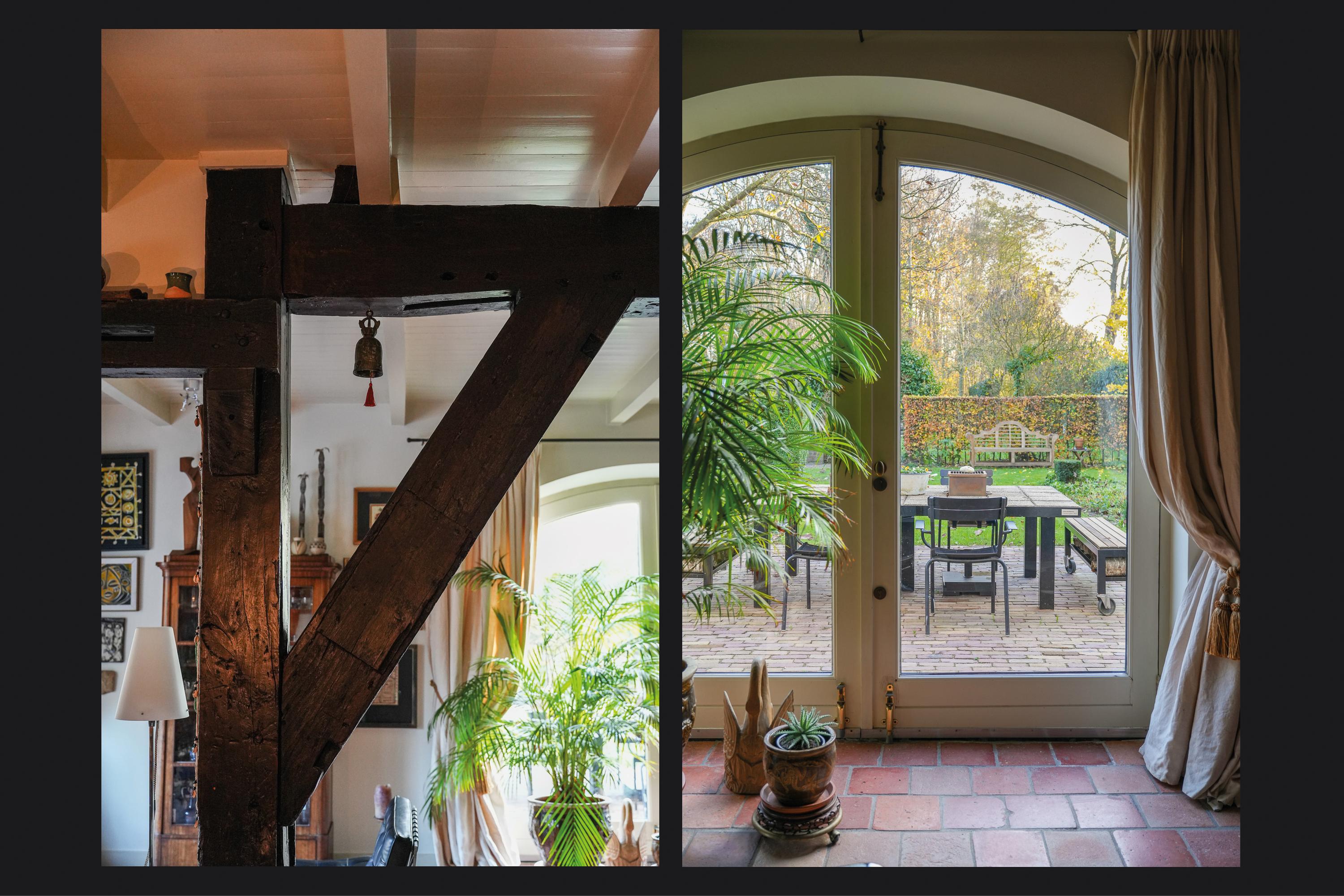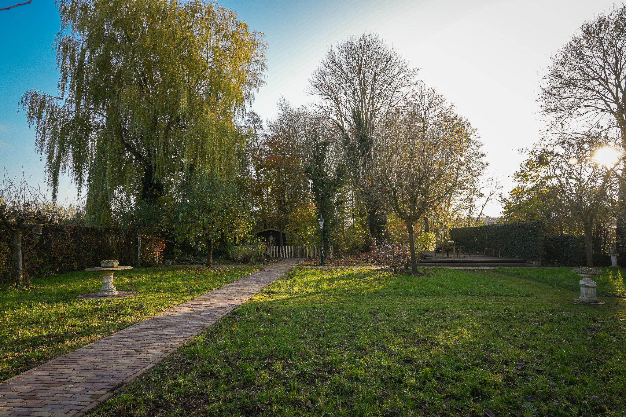 Twee paar openslaande deuren geven toegang tot het terras en de tuin, die ruim 100 meter doorloopt tot in het achterliggende privébos(je).