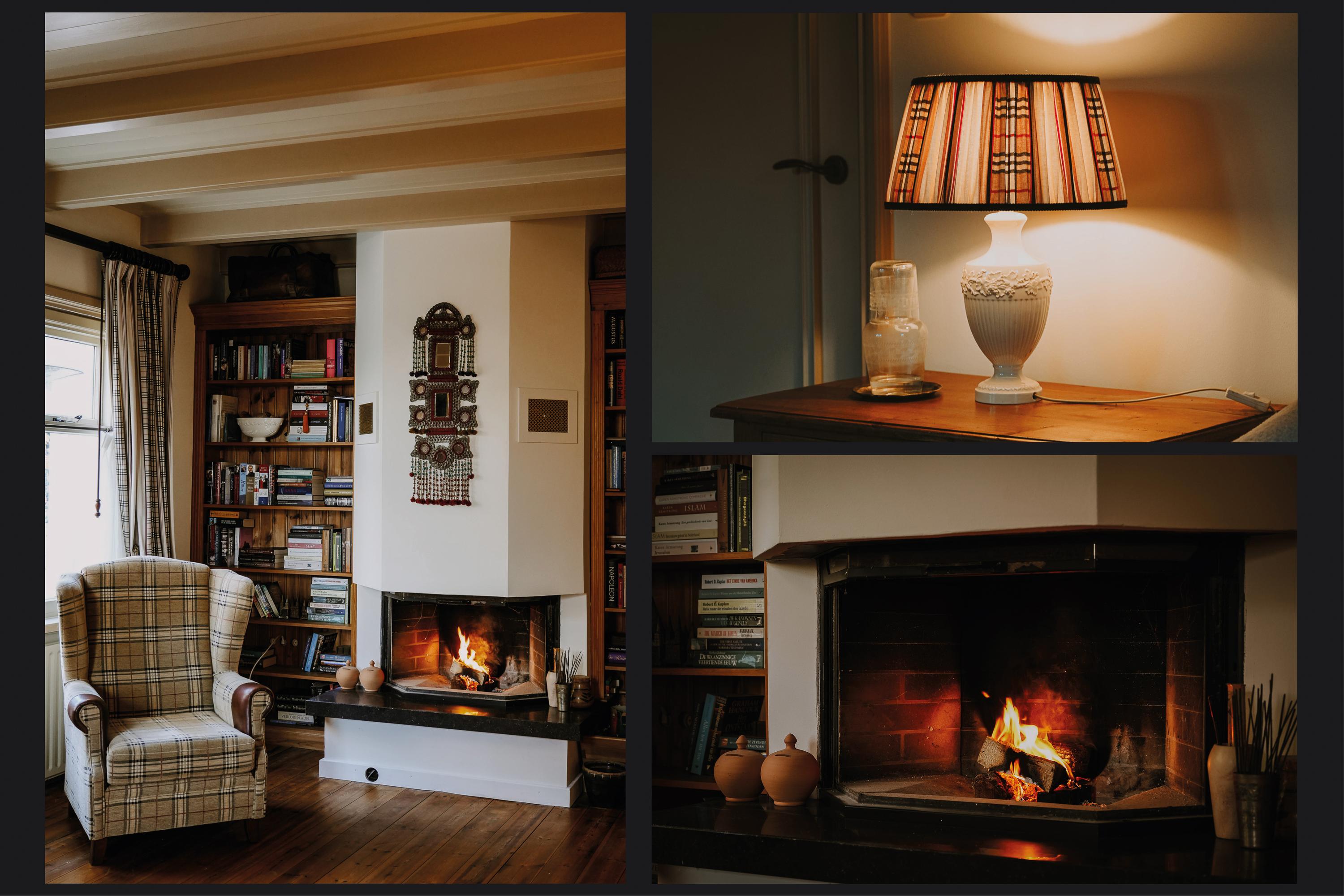 Aangrenzend bevindt zich een zitkamer met gashaard: een fijne plek om u in de avondzon terug te trekken, televisie te kijken of muziek te luisteren.
