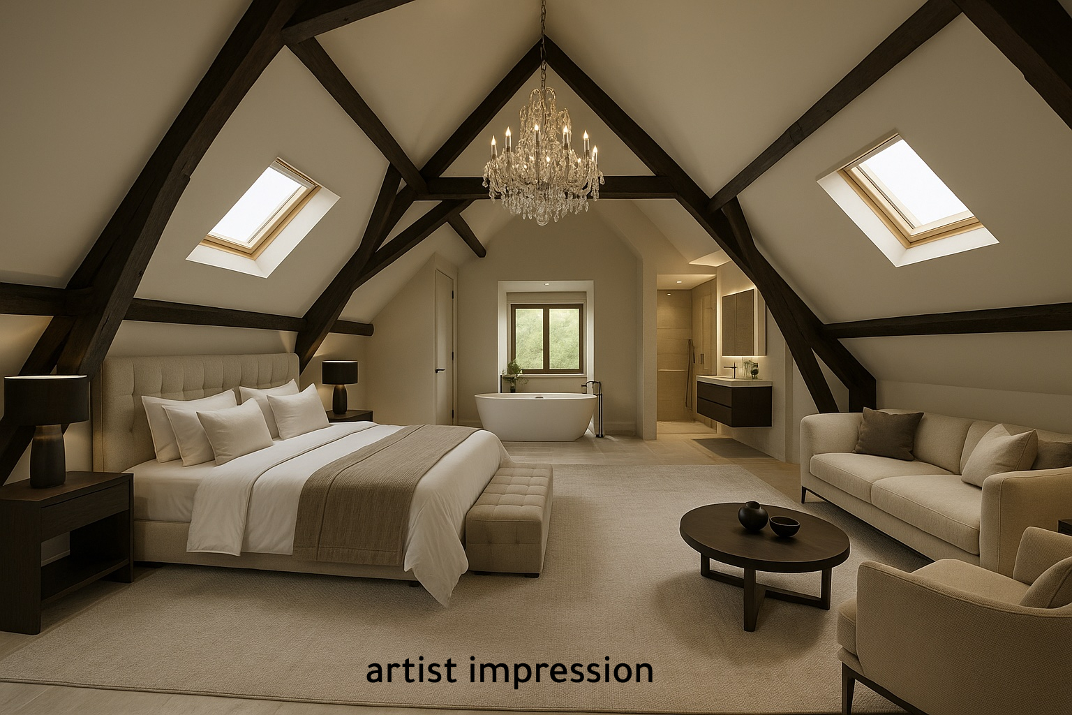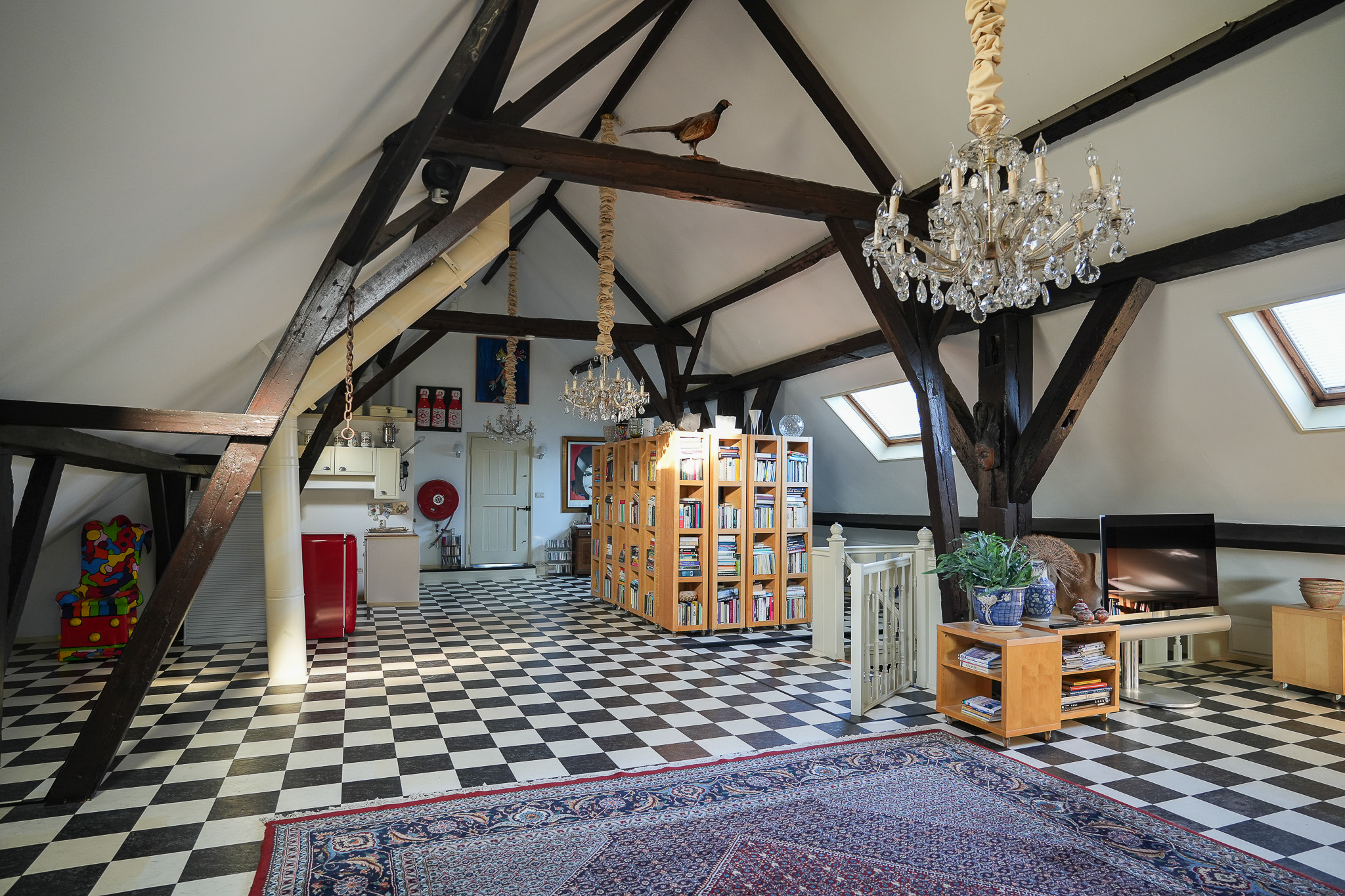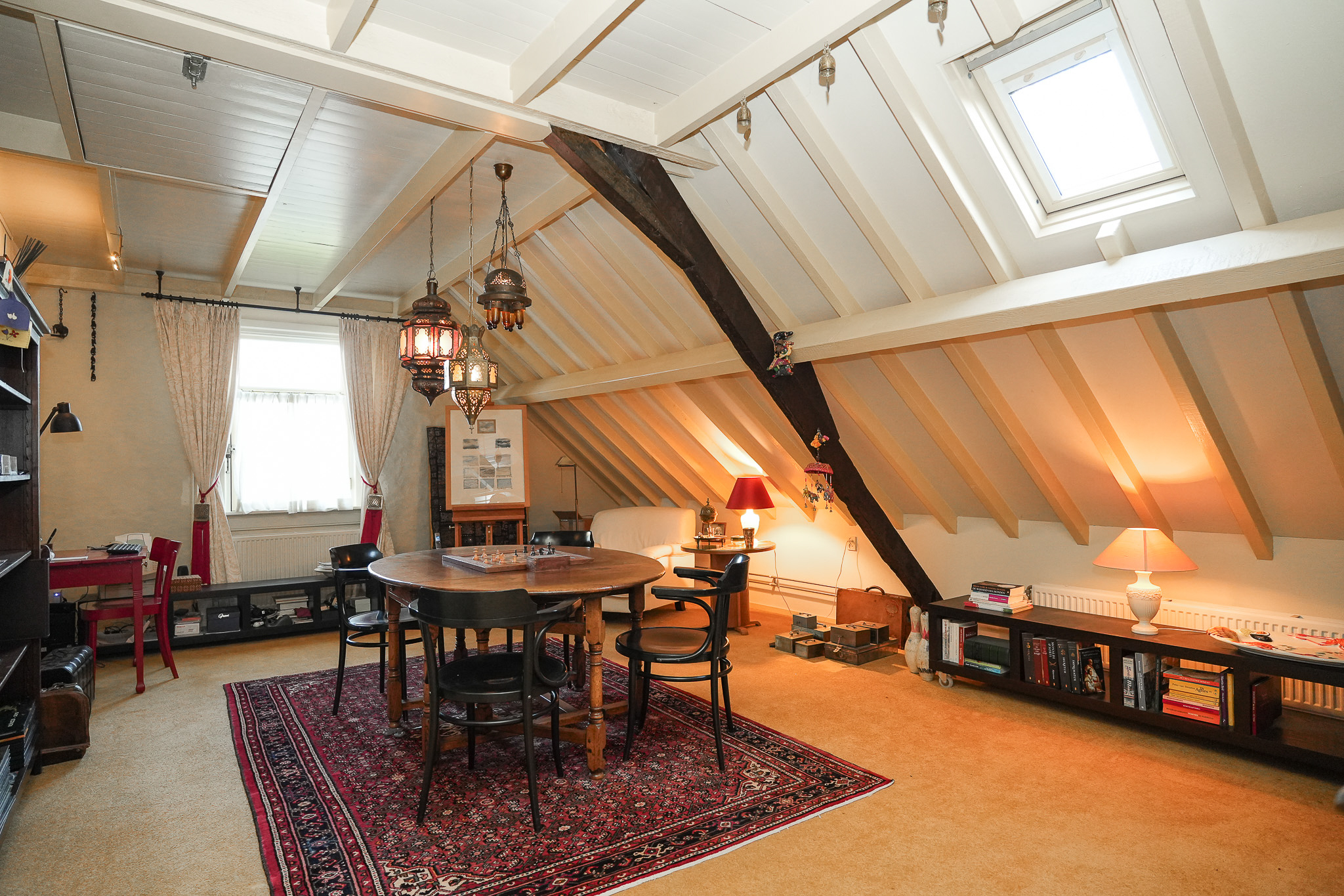 De verdieping boven het achterhuis is verrassend dankzij de indrukwekkende nokhoogte van ruim 4,5 meter en het open karakter van deze voormalige hooizolder. De huidige eigenaren hebben deze ruimte gebruikt als vergaderruimte, waarbij de pantry praktisch was. Deze verdieping kan desgewenst eenvoudig worden ingericht met extra (slaap)kamers en badkamer. Een optionele plattegrond is toegevoegd om dit inzichtelijk te maken. Het creëren van een luxe suite behoort ook tot de mogelijkheden.