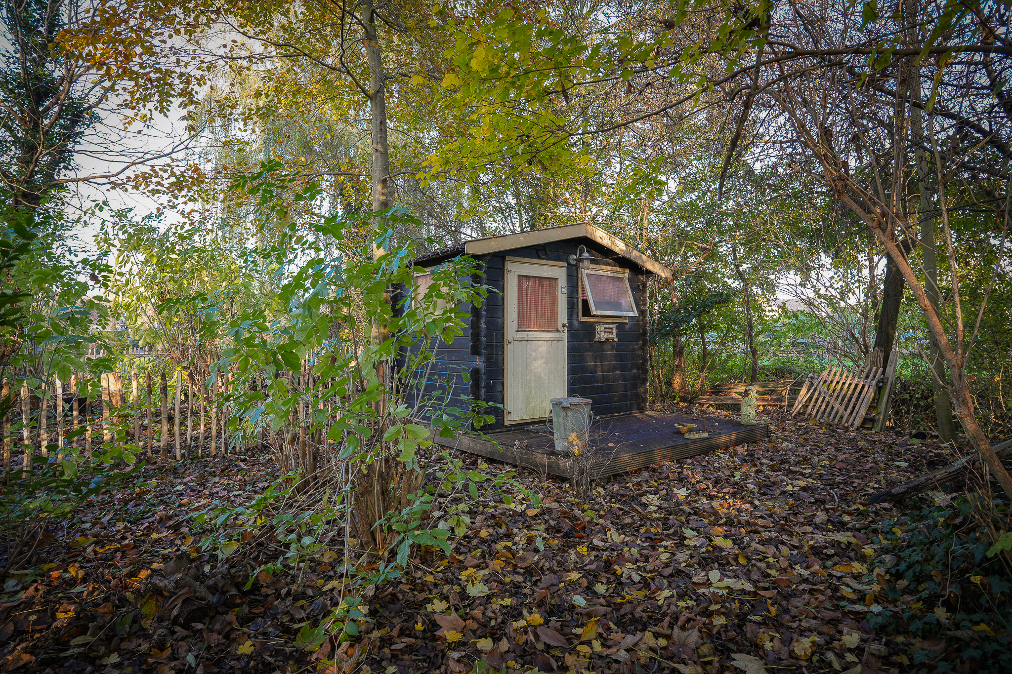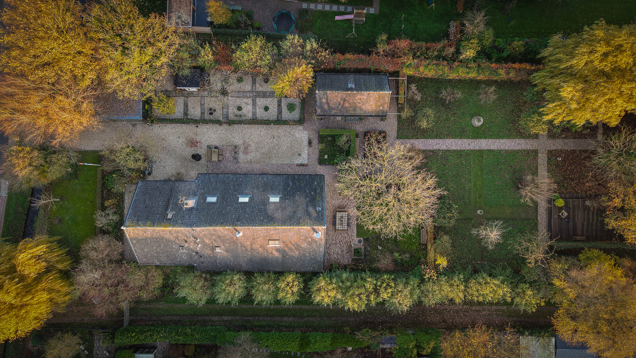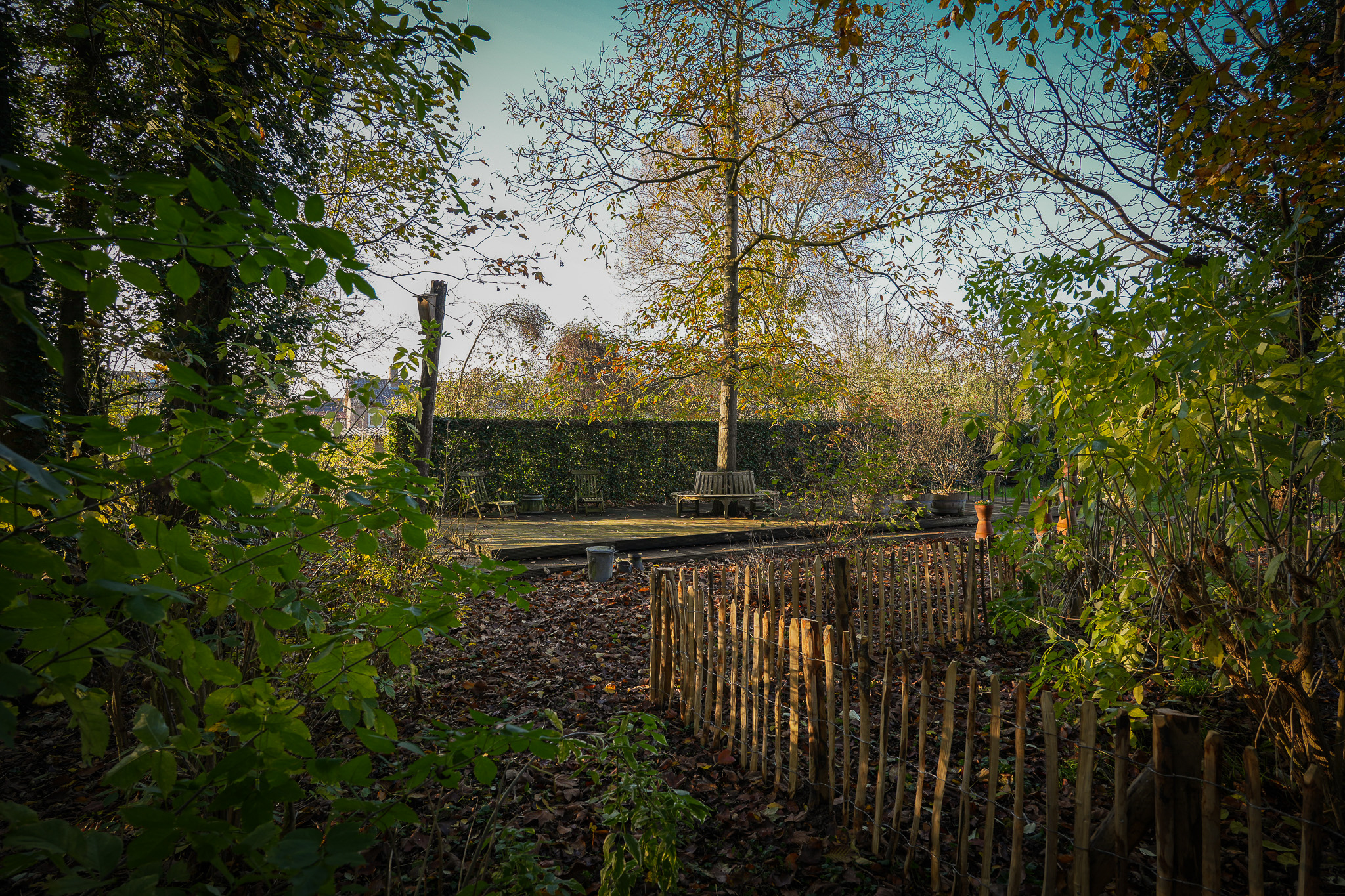 Het bijgebouw is met vergunning aanzienlijk te vergroten. Aan de achterzijde loopt het zuidgerichte perceel over in een eigen bos(je). Aan het begin van het bos staan een dierenverblijf met buitenren, een groot vlonderterras en een paddenpoel. Al met al een groene enclave met een parkachtige uitstraling, waar veel vogels en andere dieren zich thuis voelen. Regelmatig zijn er egels, kool- en pimpelmezen, merels, lijsters, vinken, roodborstjes, boomklevers, spechten, maar ook hazen en fazanten te zien. Her en der hangen nestkastjes voor vogels, vlinders en vleermuizen, die vrijwel ieder jaar volop worden gebruikt.
