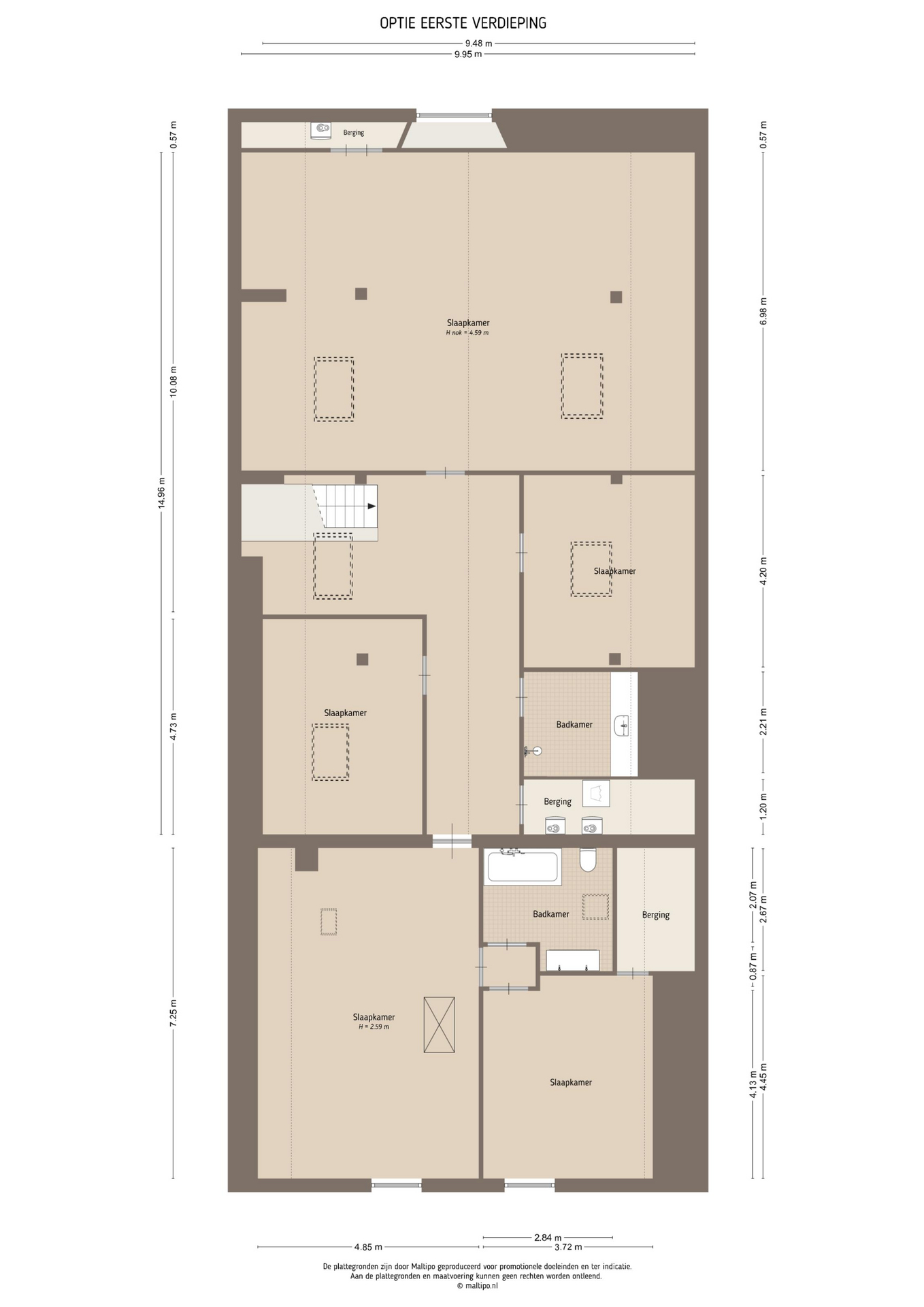 De huidige indeling van het voorhuis voorziet in twee ruime slaapkamers, een tweede badkamer en een berging.
