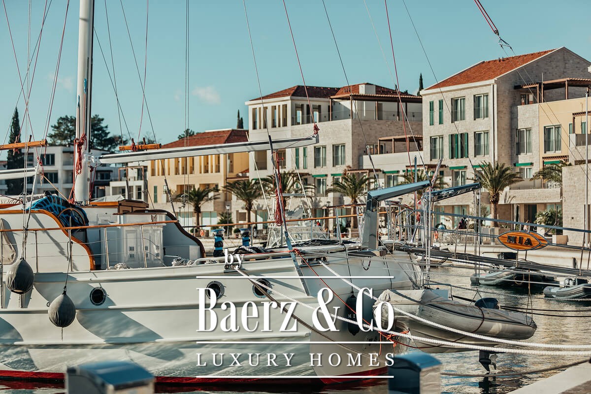 De indeling omvat een hal, een woonkamer die naadloos overgaat in de keuken en eetruimte, twee slaapkamers, twee badkamers, een gastentoilet en een ruim terras. Vanaf hier strekt het uitzicht zich uit over zee, jachthaven en omliggende bergen, waardoor het voortdurend veranderende Montenegrijnse licht iedere ruimte binnenstroomt. Afgewerkte vloeren, compleet ingerichte badkamers en airconditioning bieden comfort en ingetogenheid; als eigenaar profiteert u bovendien van toegang tot zwembaden, privéstranden en sportfaciliteiten binnen het complex.