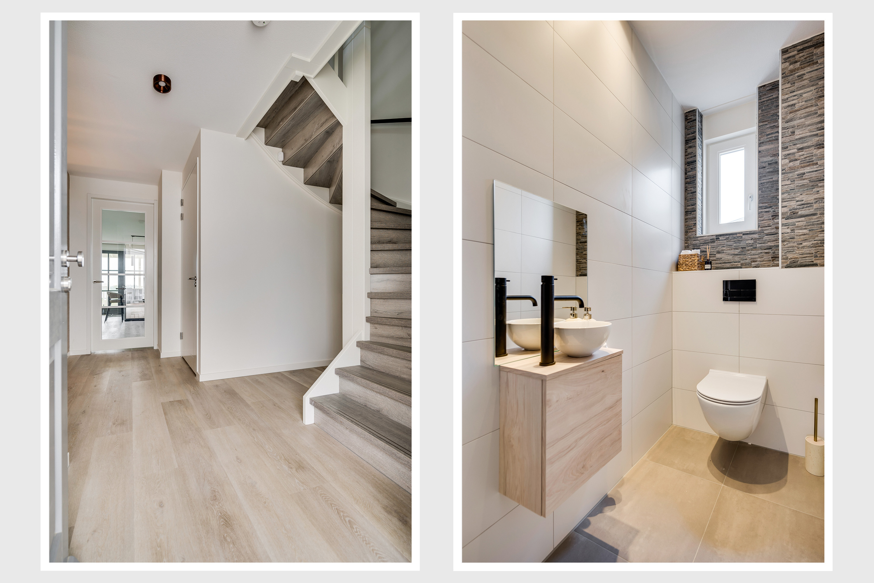 Welkom thuis! Treedt de woning binnen in de ontvangsthal waar zich de meterkast, het royale toilet, de trapopgang naar de eerste verdieping en de doorloop naar de living bevindt.
