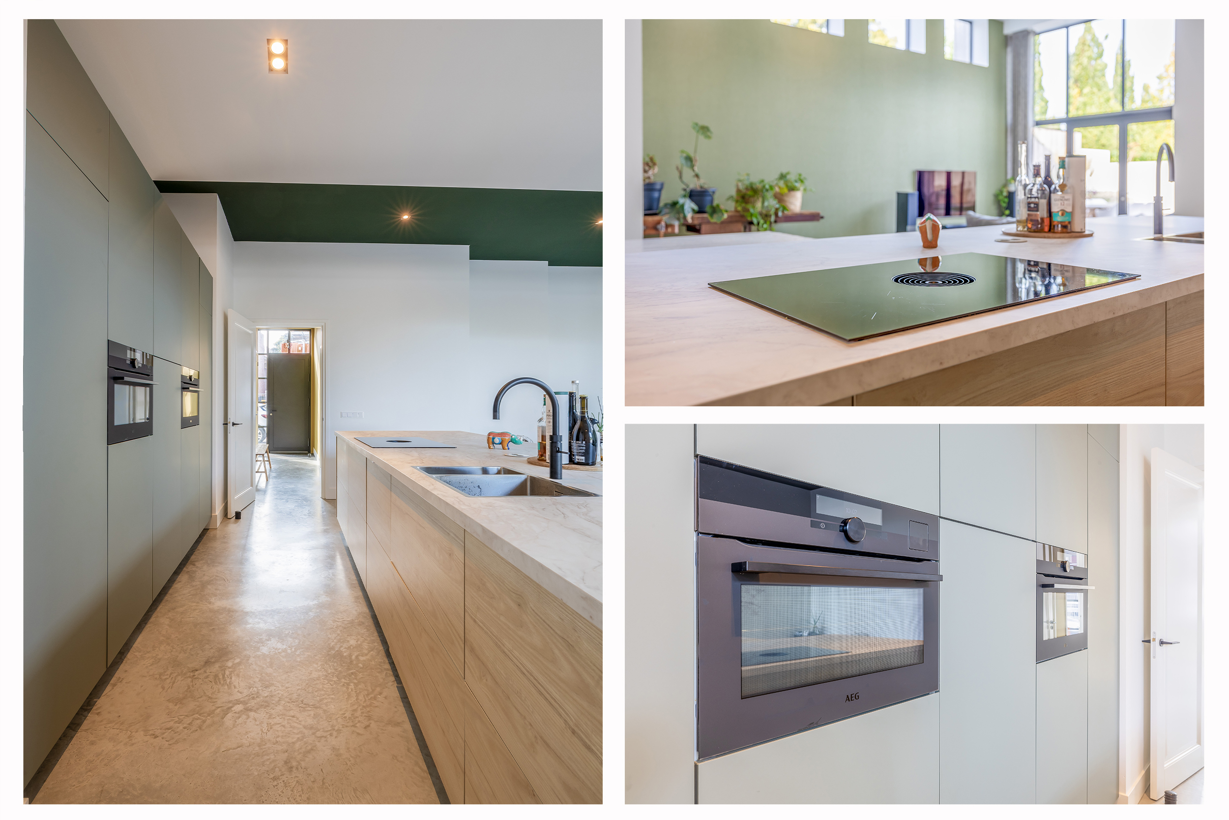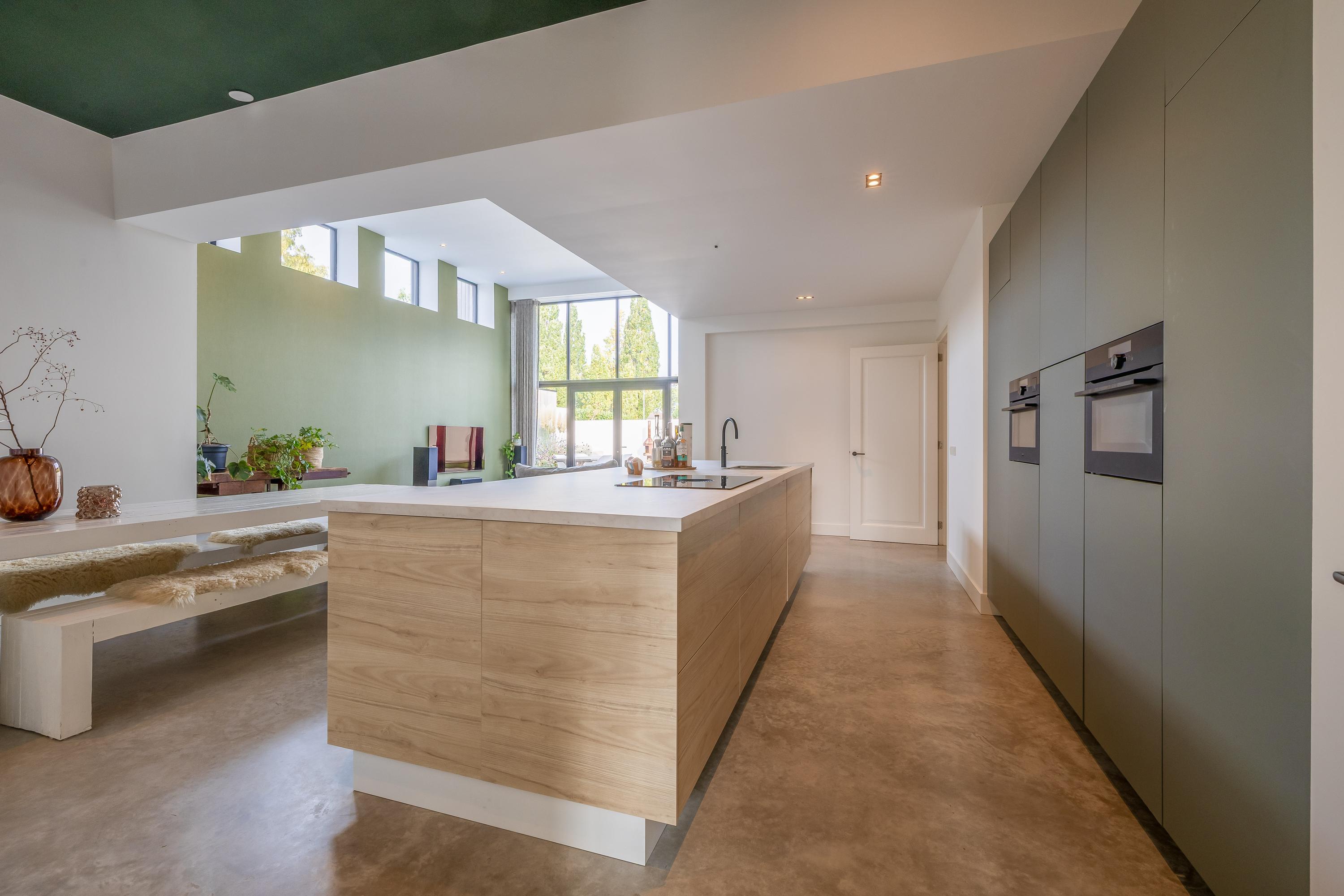 De keuken is uitgerust met een groot kook- en spoeleiland met Bora inductiekookplaat met geïntegreerde afzuiging en een Quooker. Daarnaast zijn er een grote koelkast, grote diepvries, een vaatwasser, een combi oven/magnetron en een aparte oven (zeer uitgebreid met verschillende functies) aanwezig.