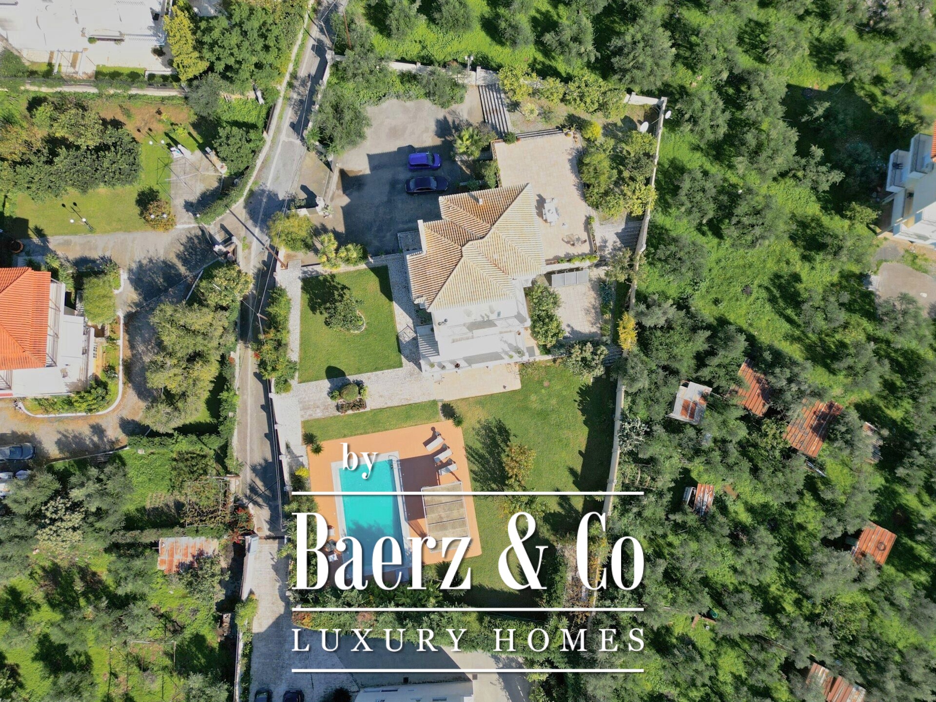 Vrijstaande woning in Kalamata biedt een indrukwekkend gevoel van ruimte en privacy over 370 m² en vier woonlagen. Het perceel van 2.000 m² voorziet in een perfecte balans tussen verfijnd comfort en een adembenemend panoramisch uitzicht op zee en bergen. Buiten nodigen het zwembad, de pergola en de compleet ingerichte barbecuezone uit tot ontspannen middagen of levendige bijeenkomsten, omgeven door weelderige tuinen en volwassen bomen. Er is voldoende parkeergelegenheid en een afgesloten garage, wat comfort en veiligheid waarborgt.