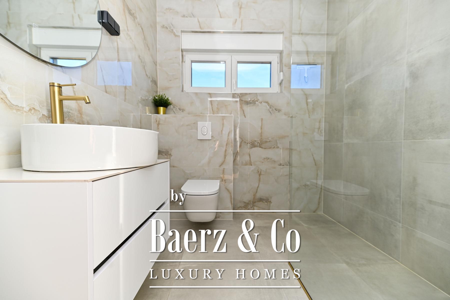Modern huis Kaštela biedt een verhoogde woonstandaard in Kroatië. Gelegen op een perceel van 490 m² en gerealiseerd in 2025, omvat deze eigentijdse woning 160 m² die smaakvol verdeeld zijn over twee verdiepingen. Op de begane grond vindt u een volledig uitgeruste keuken met eetgedeelte, een open woonkamer, een wasruimte, een gastentoilet en een slaapkamer met privébadkamer. Op de eerste verdieping bevinden zich twee extra slaapkamers, elk voorzien van een eigen badkamer, met toegang tot een ruim terras dat een panoramisch uitzicht op zee biedt – een ideale plek om op elk moment van de dag tot rust te komen.