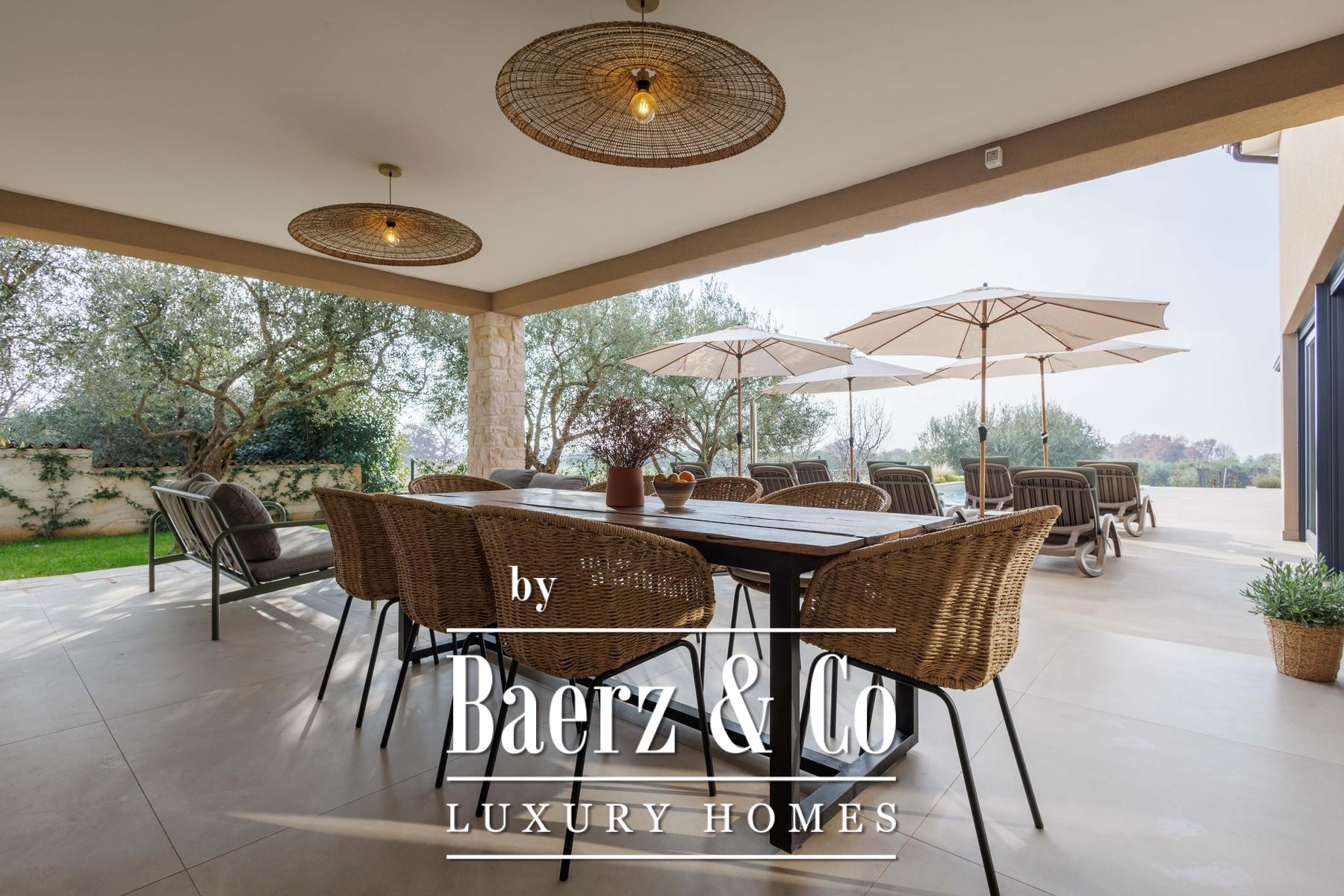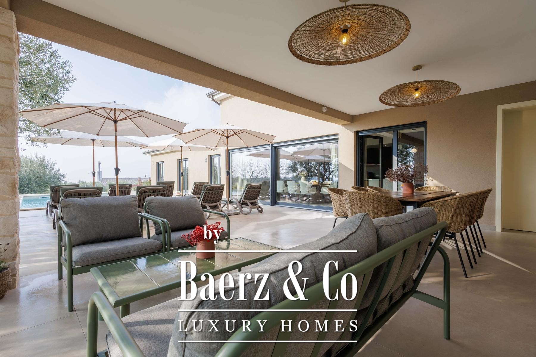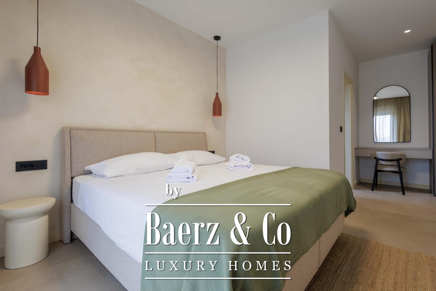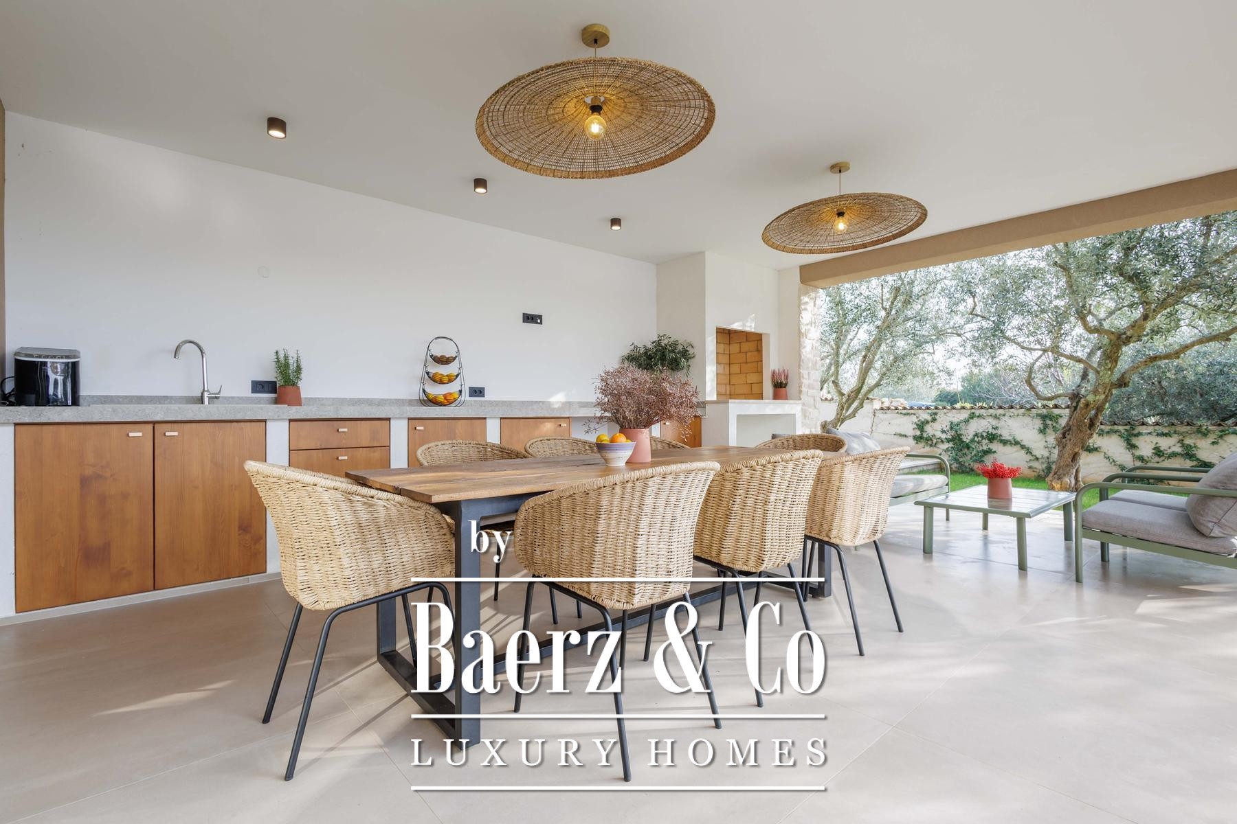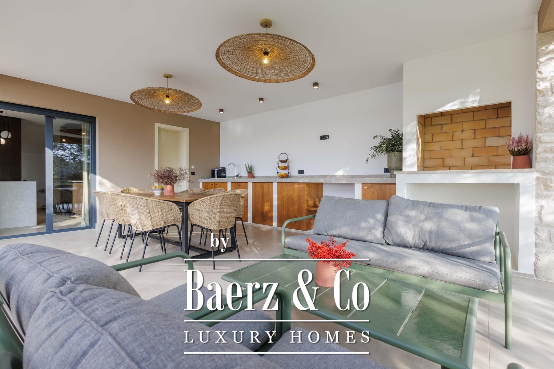 Deze villa, gebouwd volgens hoge standaarden en met een laag energieverbruik, is voorzien van vloerverwarming op basis van een warmtepomp en doorlopende airconditioning. Ook buiten zet het praktische ontwerp zich voort, want de vloerverwarming loopt door tot in de buitenkeuken. De indeling bevat verder twee aparte gastentoiletten voor extra gemak. Het perceel van 1.000 m² biedt optimale privacy dankzij een weelderig gazon, zes olijfbomen en een geautomatiseerd irrigatiesysteem voor eenvoudig onderhoud.
