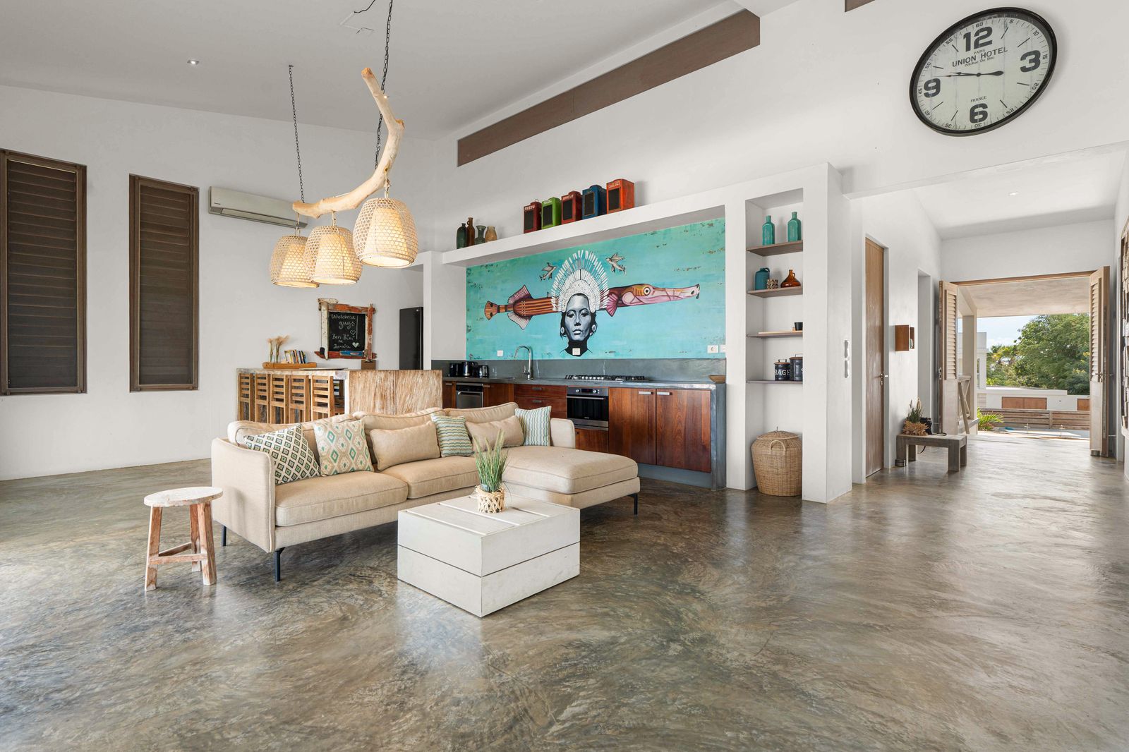 De villa is met zorg ingericht en biedt veel ruimte en comfort voor iedereen. Met 7 slaapkamers en 7 badkamers, verdeeld over drie zelfstandige units (twee 2-slaapkamerappartementen beneden en een 3-slaapkamerpenthouse boven), is er volop privacy en flexibiliteit voor verschillende gezelschappen.