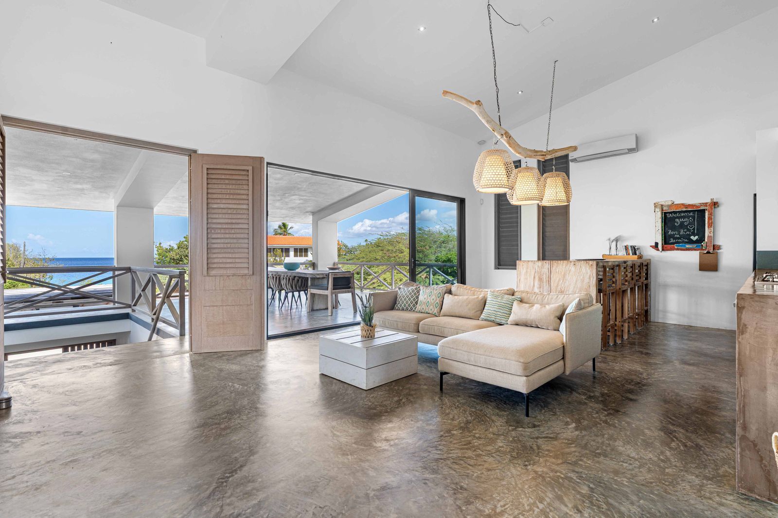 De bovenverdieping biedt een luxe 3-slaapkamerpenthouse met een schitterend uitzicht over zee en een lichte, open indeling. Een heerlijke plek om te ontspannen en te genieten van alles wat Bonaire te bieden heeft.