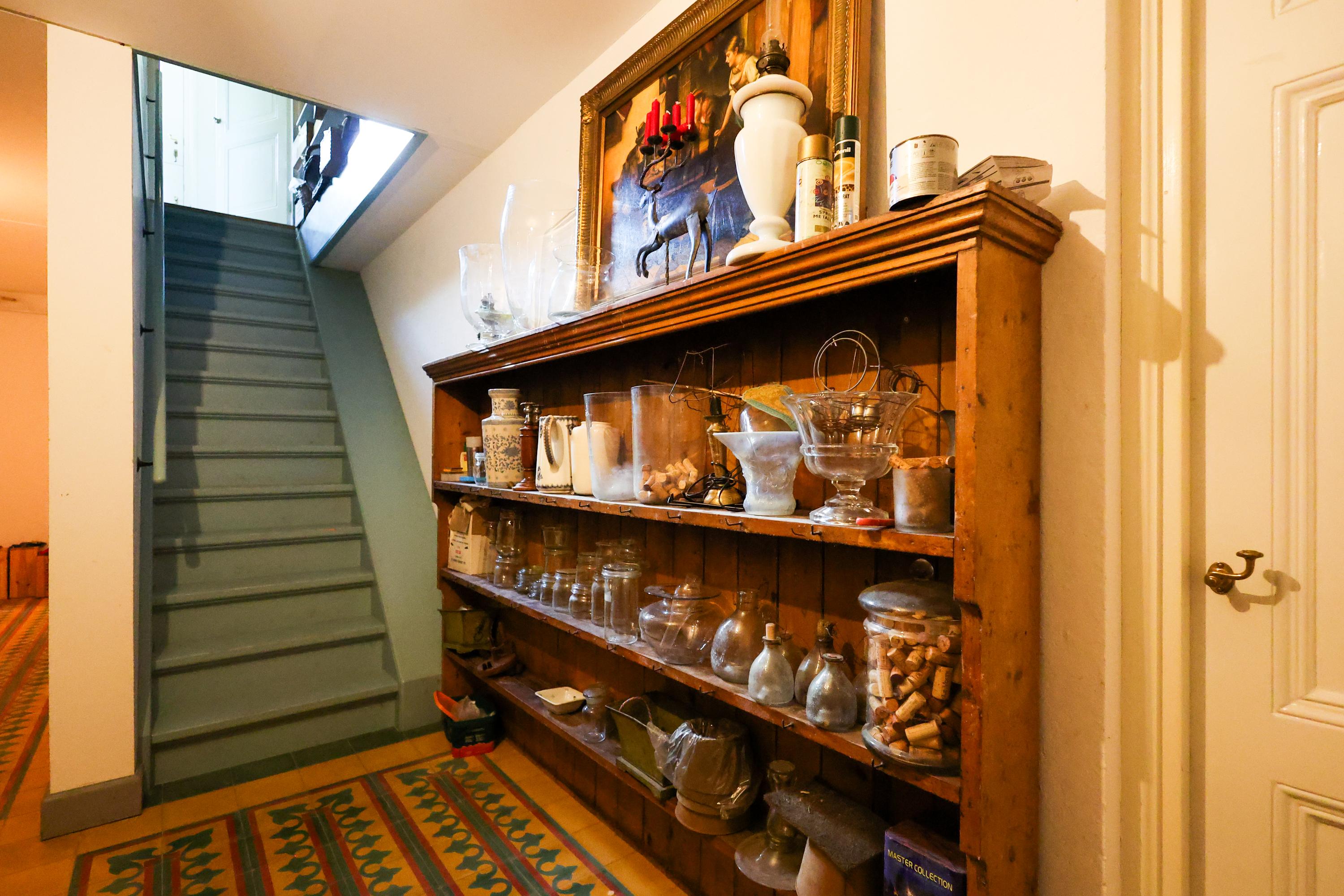 Binnen is de villa even verrassend als betoverend. Met een woonoppervlak van circa 350 m² en nog eens 150 m² in het souterrain biedt het huis een overvloed aan ruimte. De plafonds op de begane grond zijn bijna drie meter hoog, waardoor elke kamer een ademende ruimtelijkheid heeft. De statige hal met open haard en bordestrap voelt als een belofte van wat komen gaat.