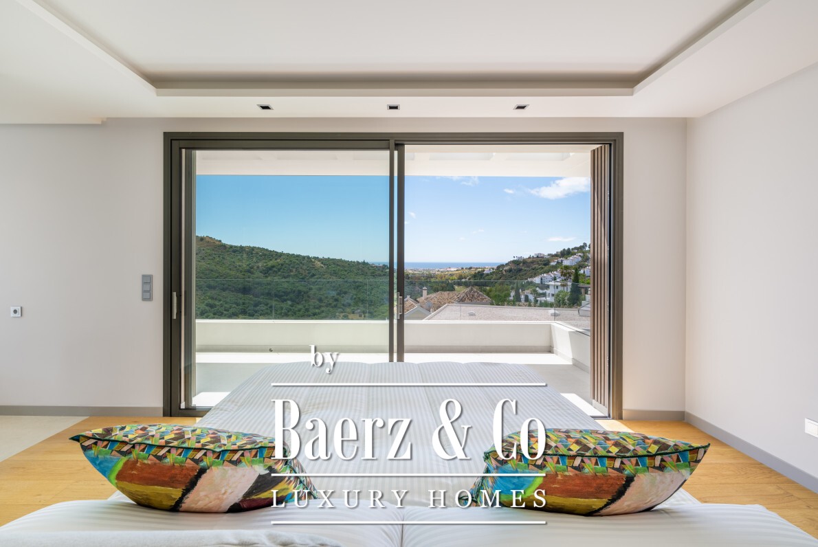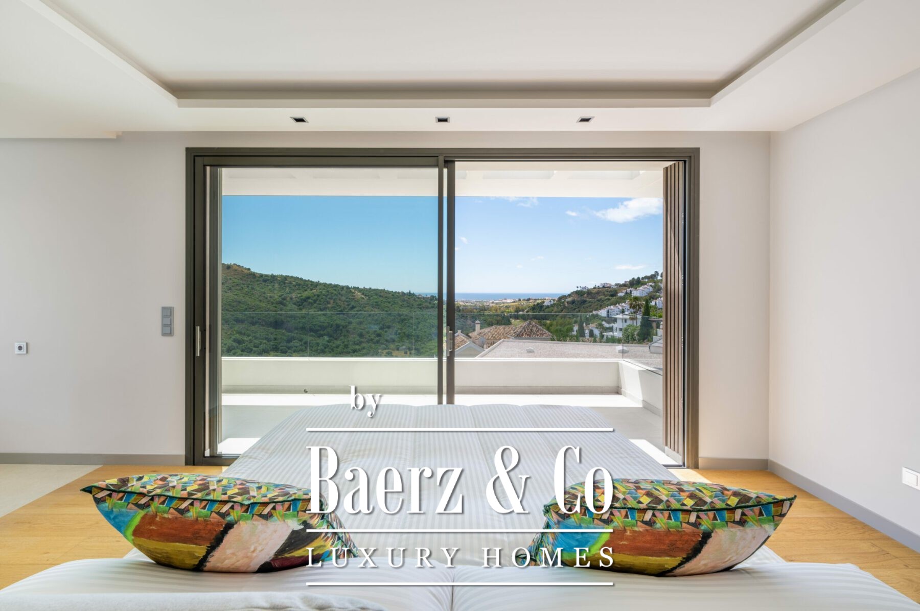 Villa Marbella met uitzicht op zee en bergen biedt verfijnd wonen in de rustige enclave Lomas de la Quinta, een exclusieve, afgesloten gemeenschap die bekend staat om haar privacy en serene sfeer. Deze villa van 764 m² met zes slaapkamers ligt op een perceel van 1.377 m² en heeft een eigentijdse architectuur waarin natuurlijke materialen, royaal licht en ruimte samenkomen. Vanaf het eerste moment bepalen het zeezicht en het uitzicht op de Sierra de las Nieves de sfeer, zowel op de 317 m² aan terrassen als in een van de twee loungegedeeltes waar grote ramen het mediterrane landschap omlijsten.