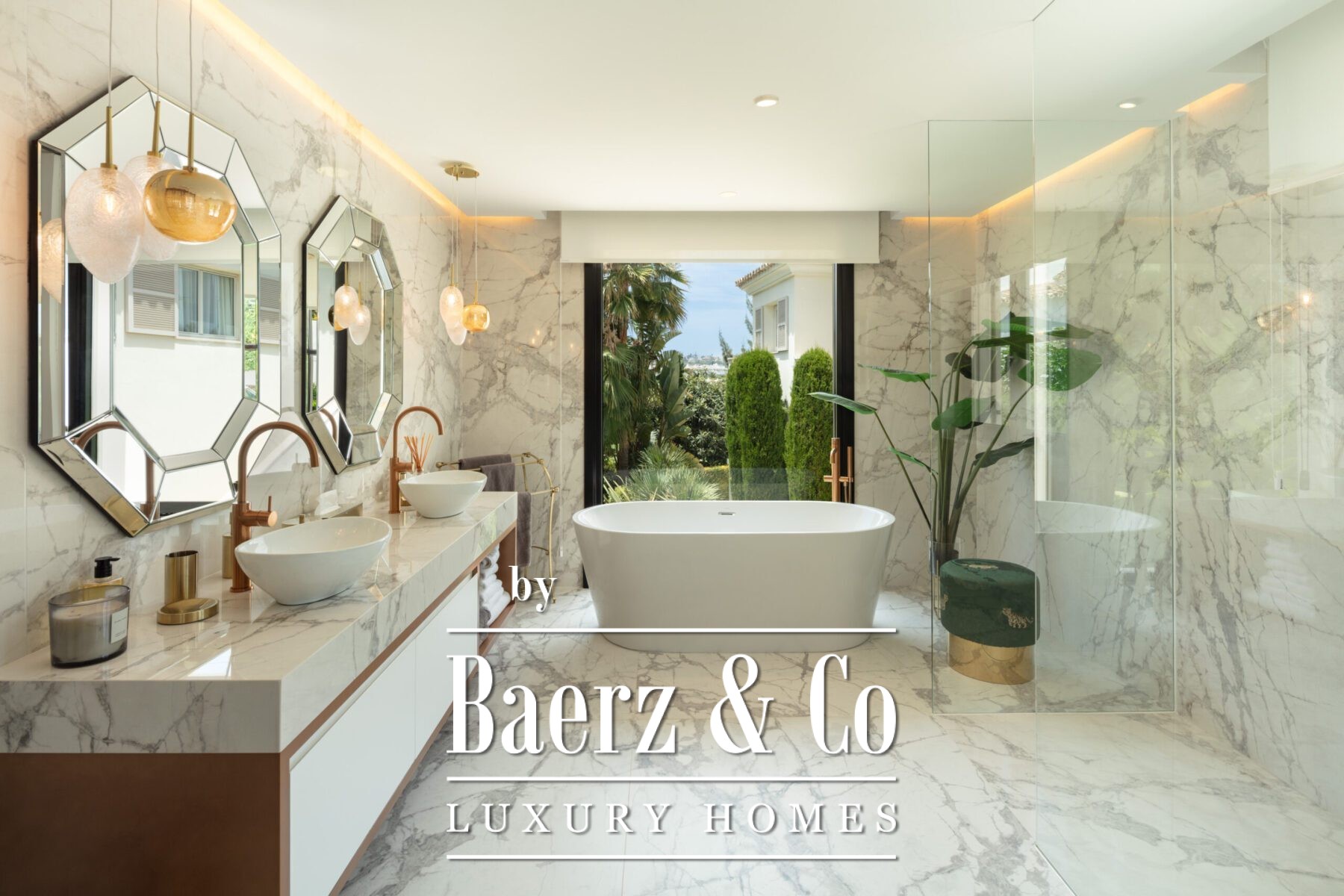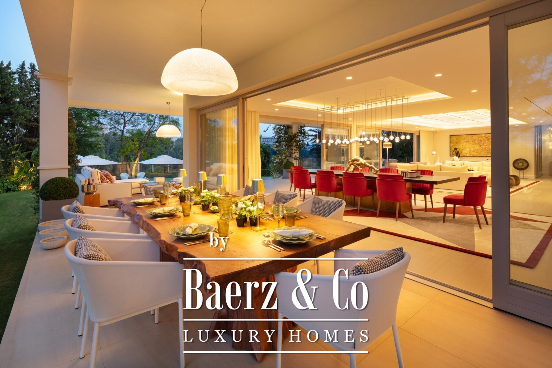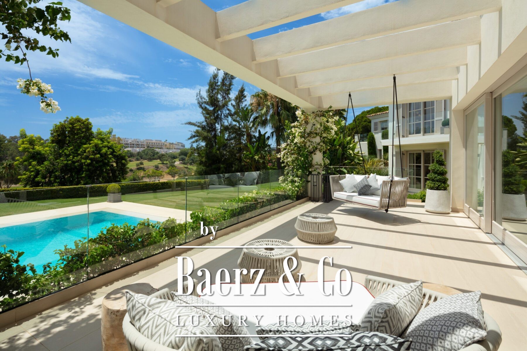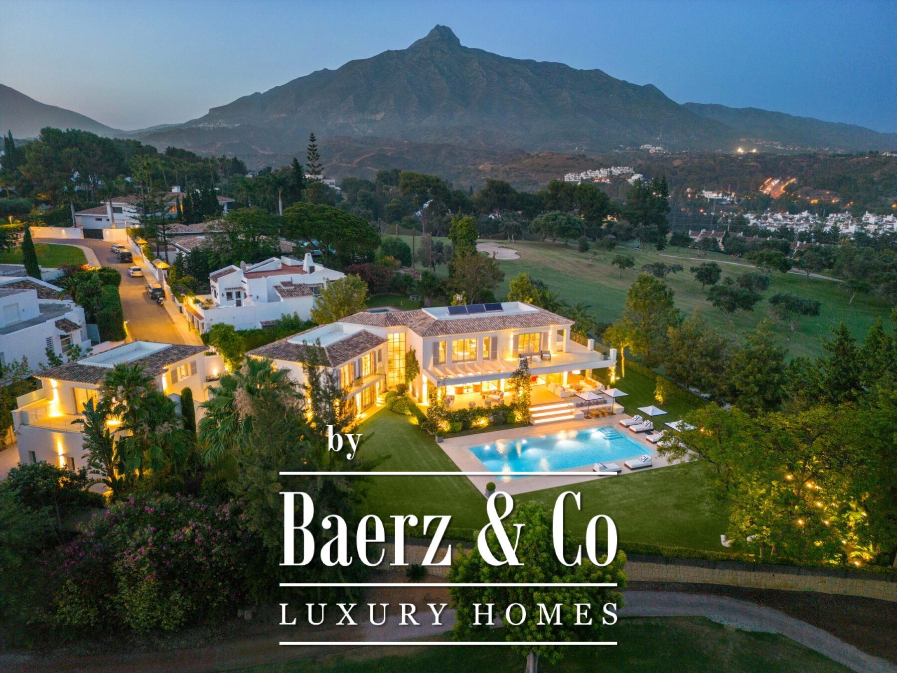 De relatie met het perceel van 2.349 m² wordt zichtbaar door volwassen tuinen en royale terrassen, die uitnodigen tot een leven in de openlucht onder het heldere Marbellaanse firmament. Indrukwekkende vergezichten over de golfbaan en bergen worden aangevuld door voorzieningen als een privézwembad, buitenkeuken, barbecue, dubbele garage en 24-uurs beveiliging, die samen een sfeer van ingetogen verfijning creëren. De nabijheid van golfbanen, lokale faciliteiten en de zee onderstreept de blijvende aantrekkingskracht van deze luxe villa te koop in Marbella.