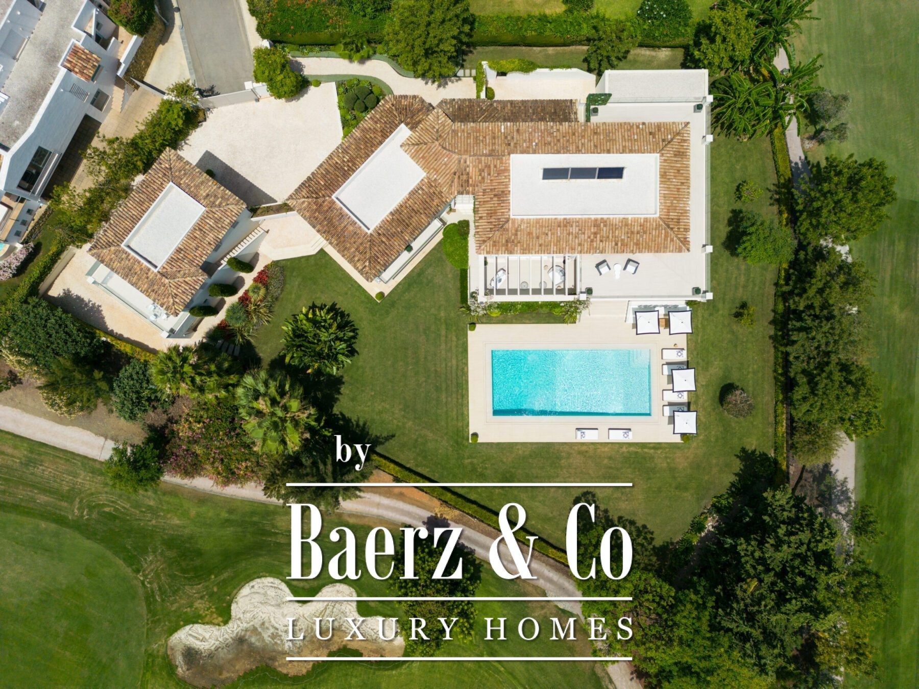 Villa Marbella vormt een privé-oase in het gewilde Golf Valley en geniet van de ingetogen luxe binnen een prestigieuze beveiligde gemeenschap. Deze Villa Marbella biedt een benijdenswaardige ligging aan de golfbaan met uitzicht over de Aloha Golf Course, waar tijdloze architectuur samenkomt met een vanzelfsprekende allure. Het interieur van 702 m² wordt gekenmerkt door zachte, uitnodigende kleurschakeringen en hoogwaardige afwerkingen, een evenwicht tussen klassieke elegantie en moderne terughoudendheid. Bijzondere ruimtelijke accenten verbinden elk van de vijf slaapkamers in de hoofdwoning, aangevuld met een master suite en separate kleedkamer, wat zorgt voor harmonie en individualiteit. Een apart gastenverblijf met één slaapkamer biedt privacy aan gasten of personeel.