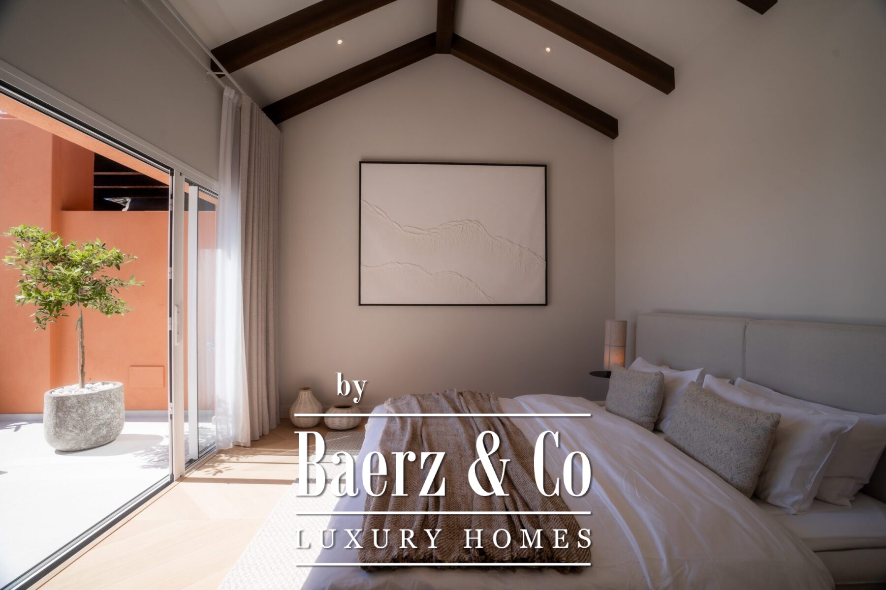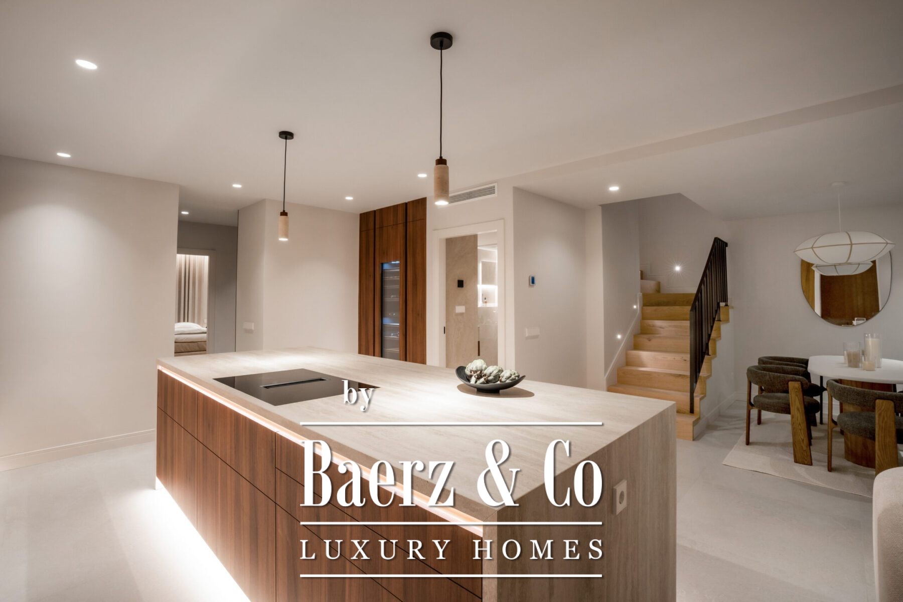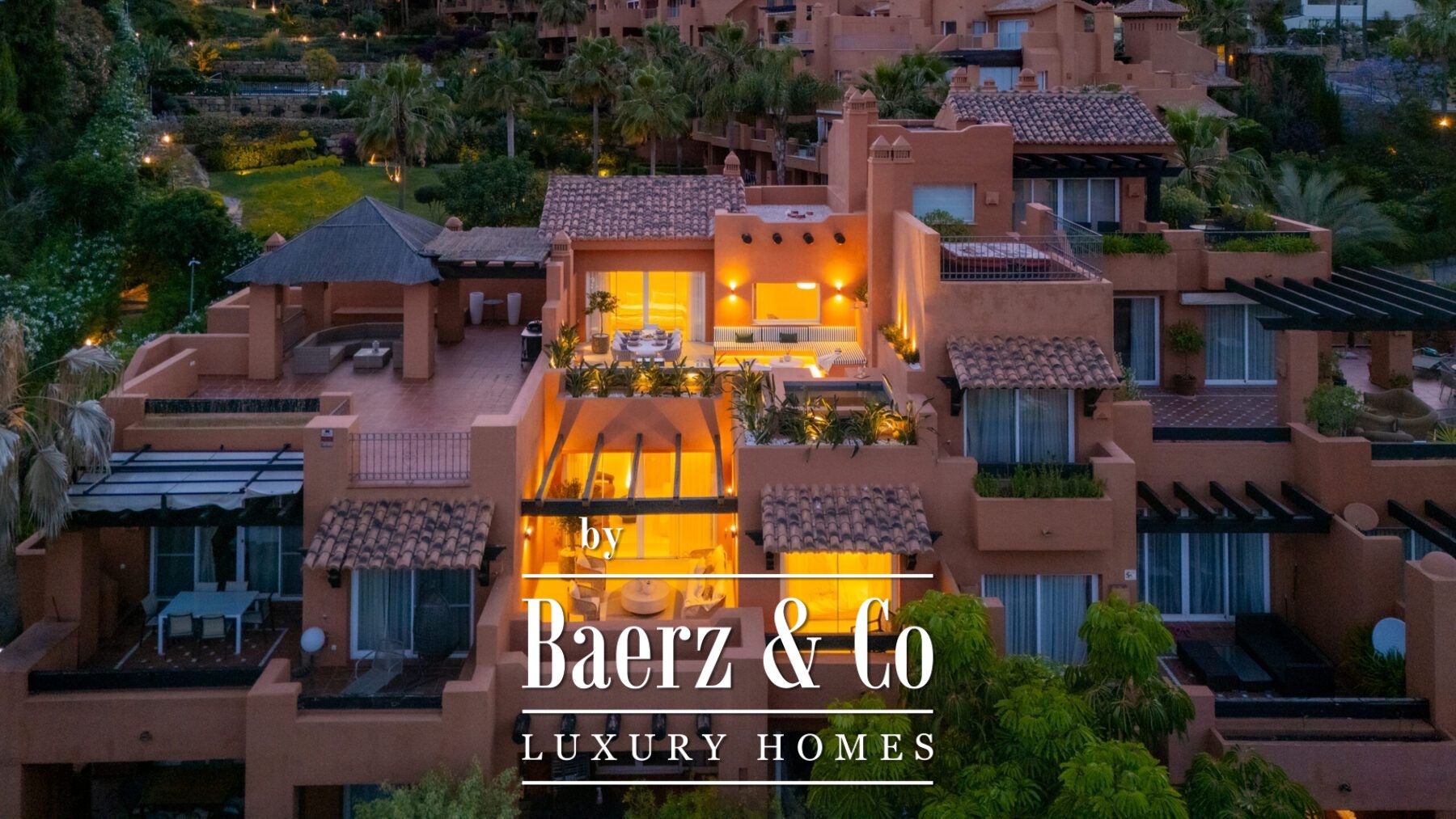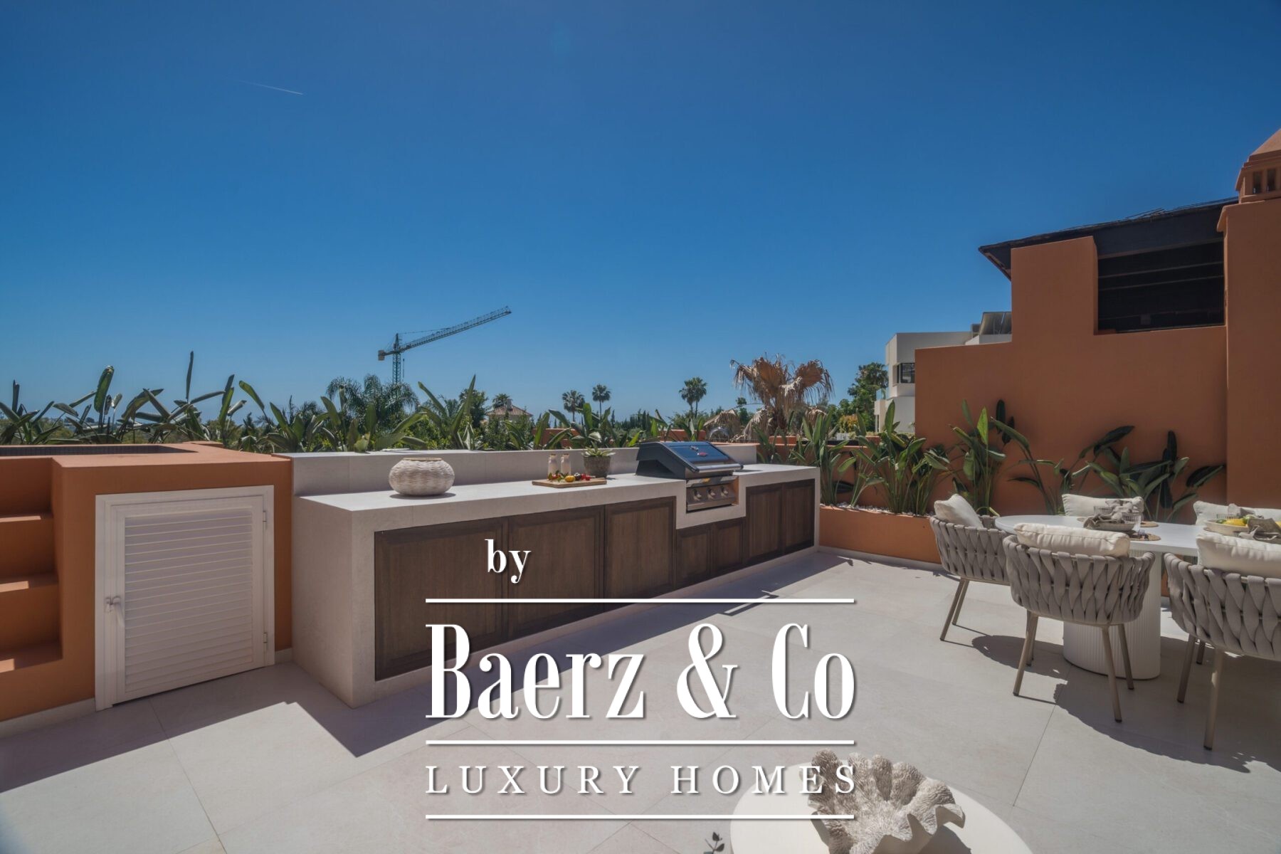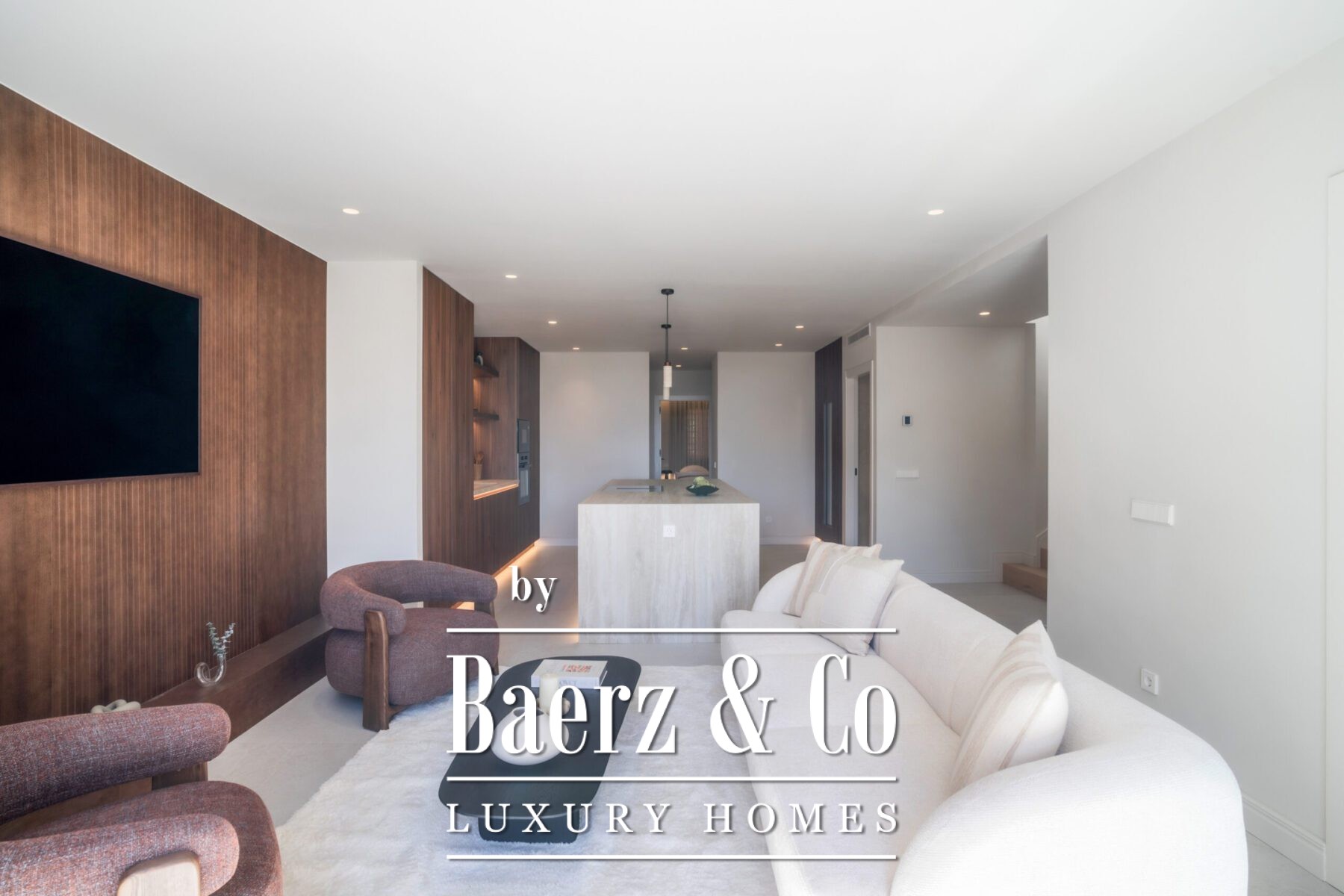Het duplex penthouse in Marbella bevindt zich in een beveiligde residentie in Nueva Andalucía en biedt een discreet toevluchtsoord op enkele momenten van de Middellandse Zee. Deze recent gerenoveerde woning van 210 m² beschikt over vier slaapkamers en drie badkamers, waarbij hedendaagse architectuur wordt gecombineerd met hoogwaardige afwerkingen. Op de hoofdverdieping grenst een keuken uitgerust met Miele-apparatuur aan open woon- en eetruimtes, die leiden naar een terras met een fraai uitzicht op La Concha en de zee.