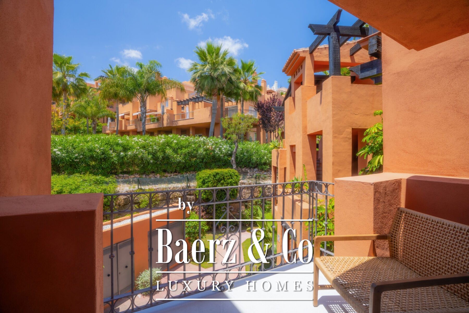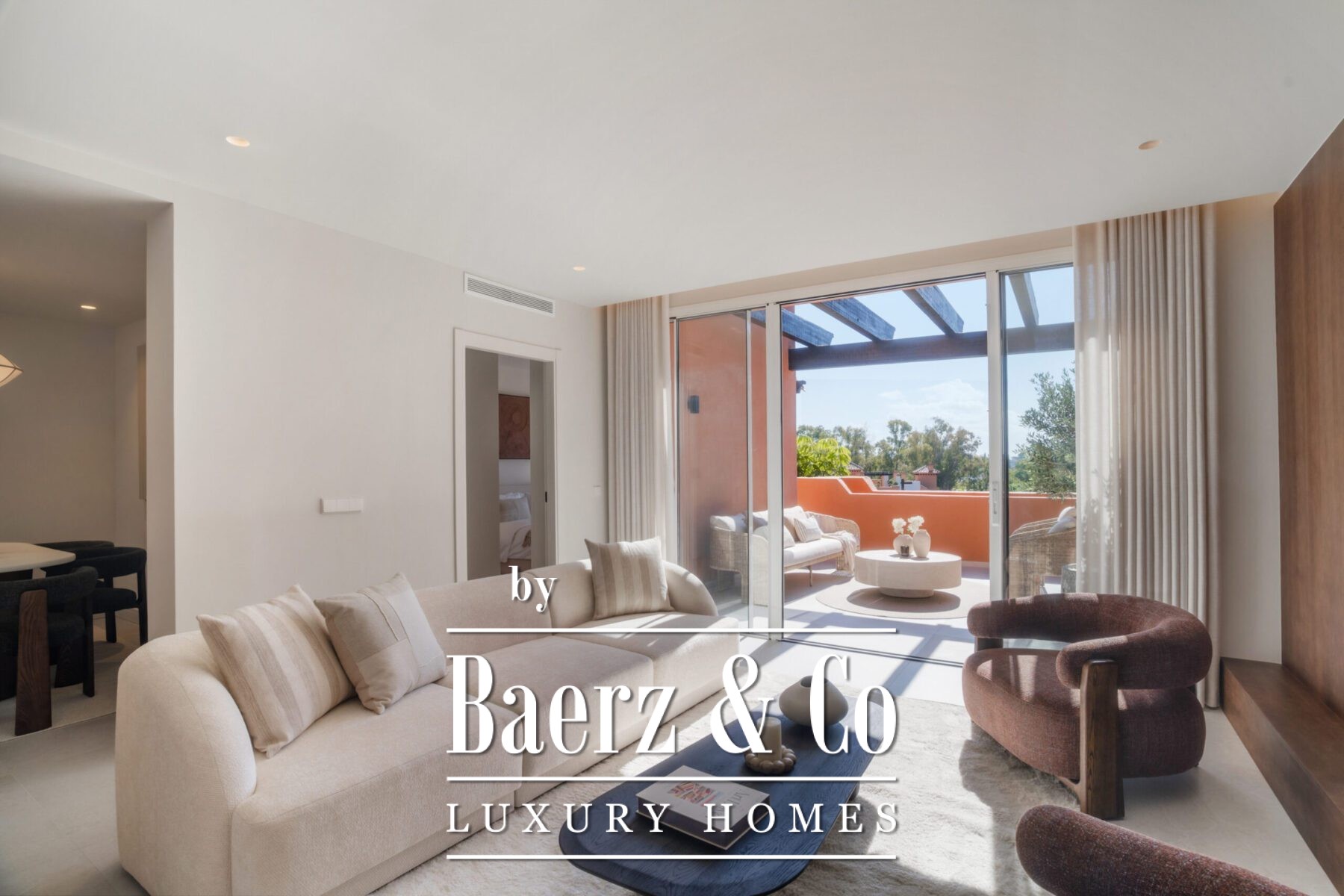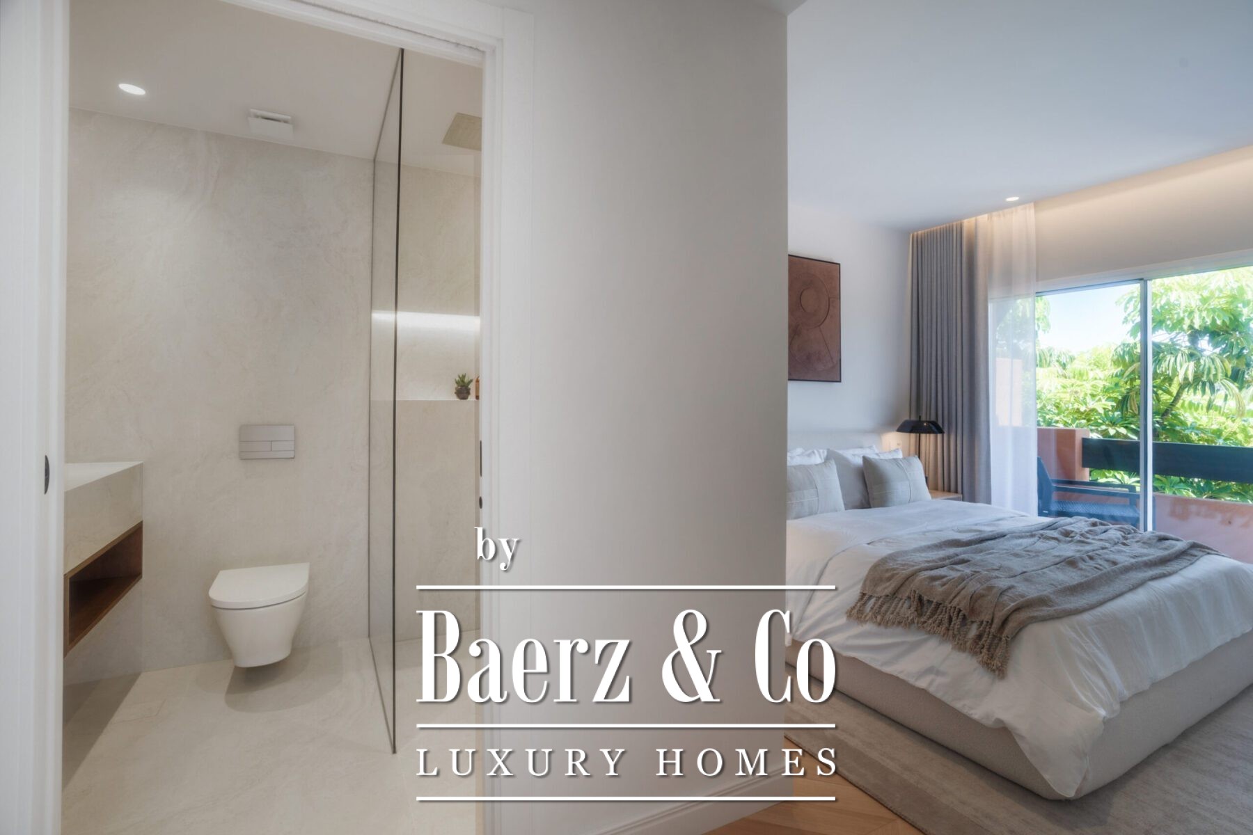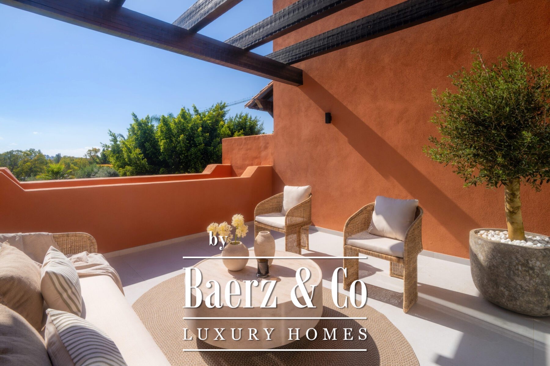 Het duplex penthouse in Marbella bevindt zich in een beveiligde residentie in Nueva Andalucía en biedt een discreet toevluchtsoord op enkele momenten van de Middellandse Zee. Deze recent gerenoveerde woning van 210 m² beschikt over vier slaapkamers en drie badkamers, waarbij hedendaagse architectuur wordt gecombineerd met hoogwaardige afwerkingen. Op de hoofdverdieping grenst een keuken uitgerust met Miele-apparatuur aan open woon- en eetruimtes, die leiden naar een terras met een fraai uitzicht op La Concha en de zee.