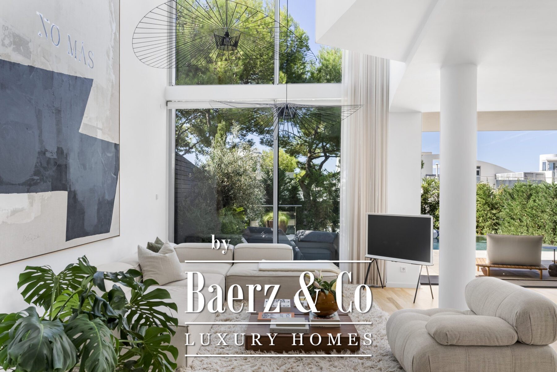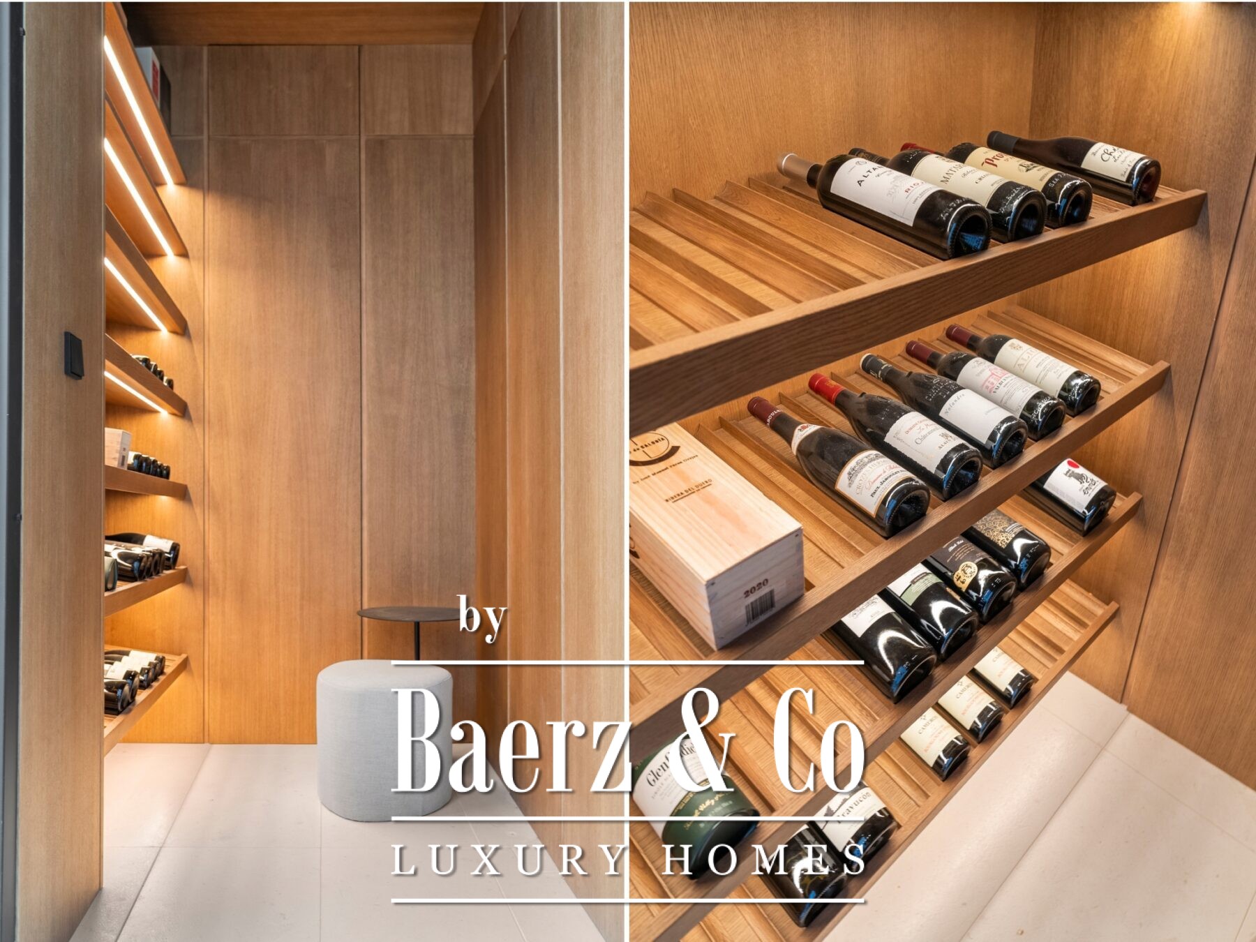 Binnen de 500 m² woonruimte is het huis ontworpen voor wie waarde hecht aan ingetogen luxe. Drie slaapkamers en drie badkamers gaan samen met hoogwaardige maatwerkafwerking en een reeks ruime, lichtovergoten interieurs. De privé wijnkelder, inloopkast en bijkeuken getuigen van oog voor detail, terwijl de golf simulator ruimte moeiteloos dienstdoet als thuisbioscoop of luxe ontspanningsruimte.