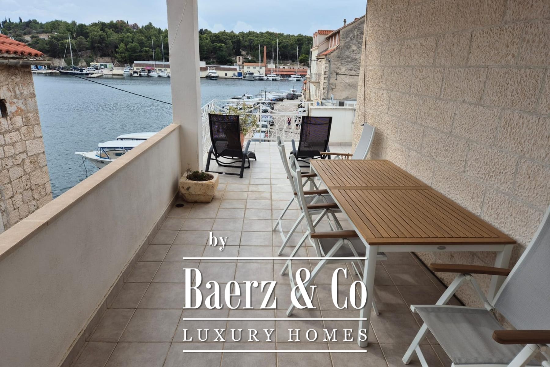 De begane grond herbergt een volledig uitgerust restaurant waarvan de deuren direct uitkomen aan de promenade, perfect voor zowel lokale gasten als bezoekers in zacht maritiem licht. Op de eerste verdieping bevindt zich een ruime eetzaal, een royale keuken en een badkamer; deze indeling biedt flexibiliteit in dagelijks gebruik of mogelijkheden voor uitgebreide gastvrijheid. De bovenverdieping bevat vier slaapkamers, een badkamer en een woonkamer met toegang tot een terras dat uitzicht biedt op de haven, het dorp en de zee, waardoor het tijdloze Dalmatische leven tastbaar wordt.