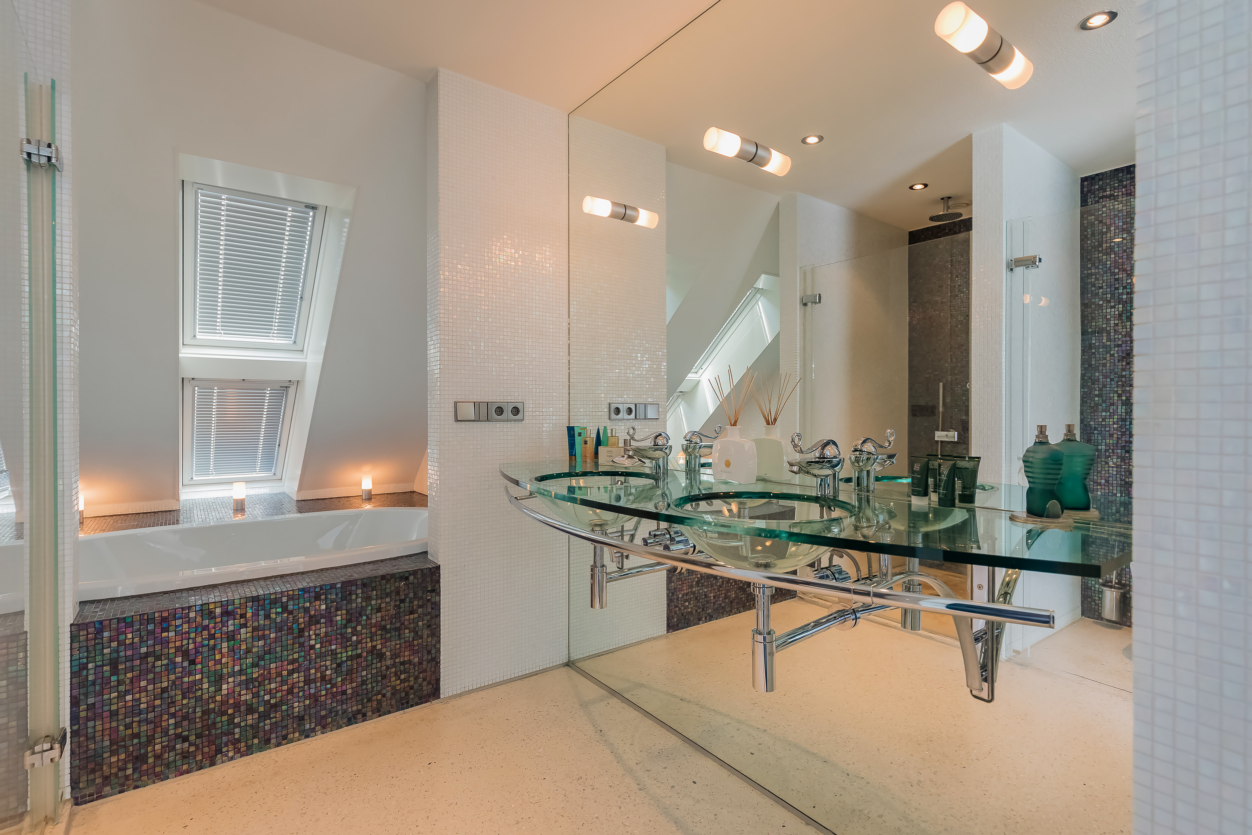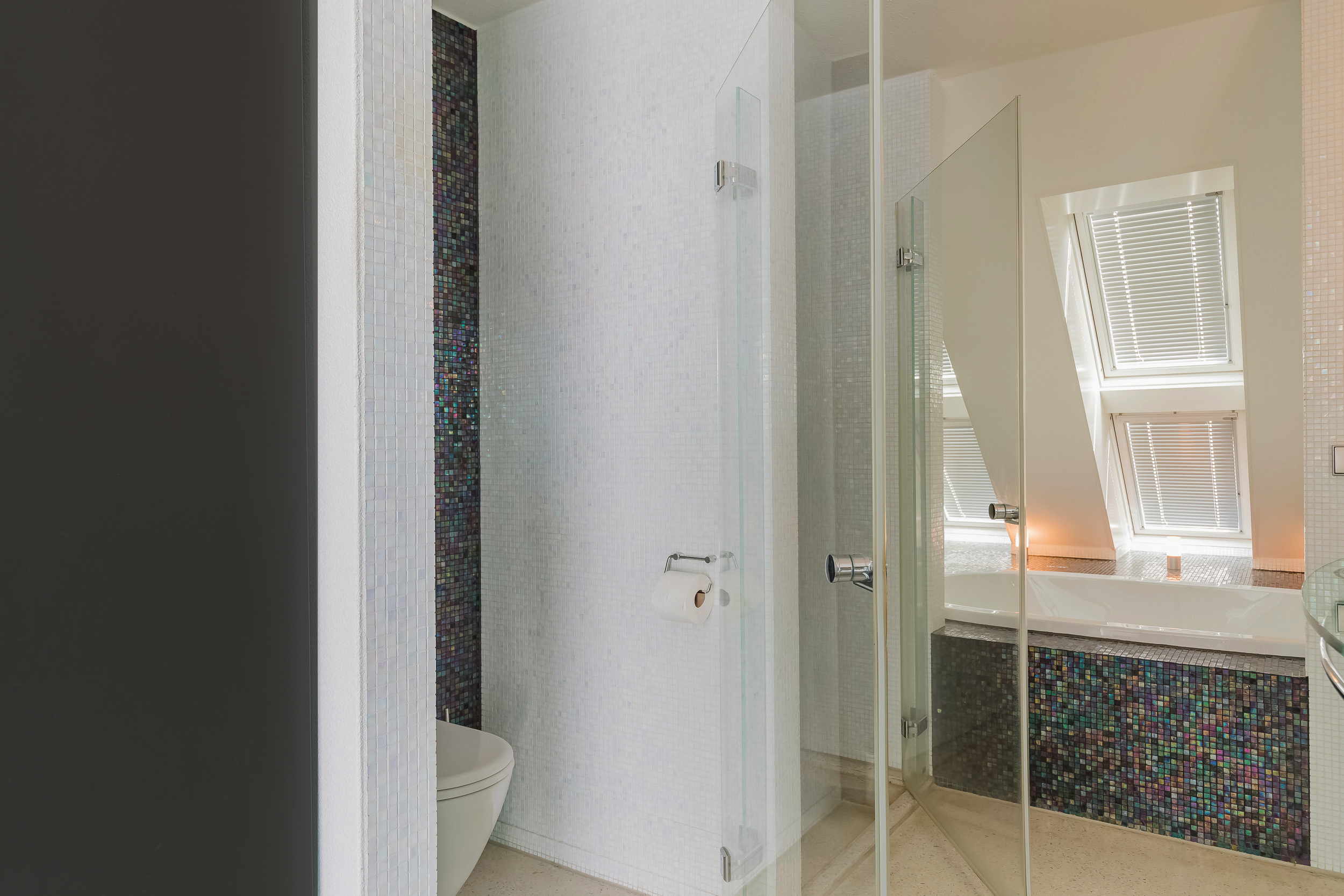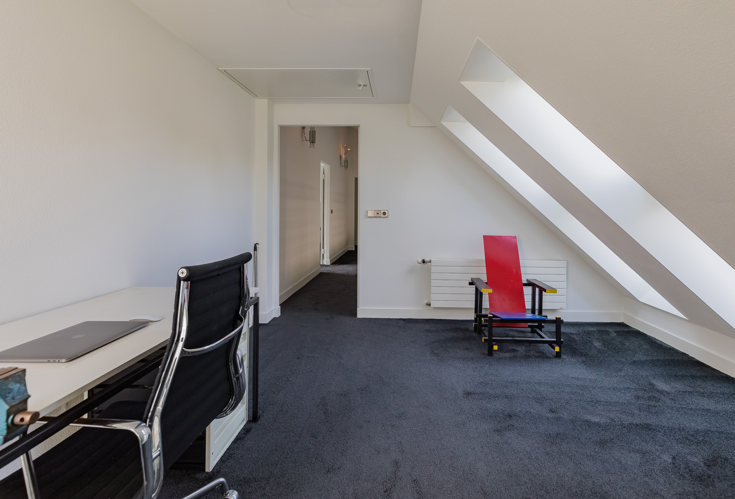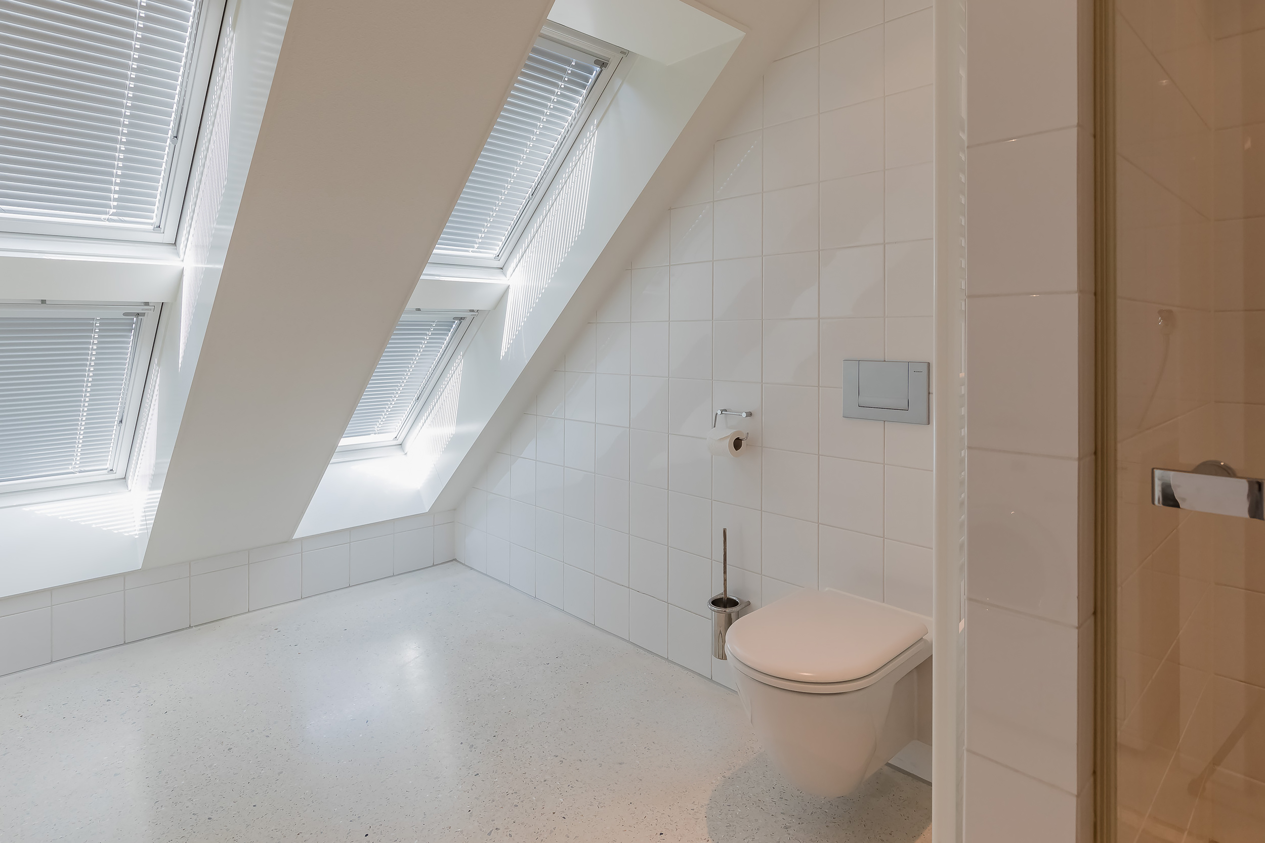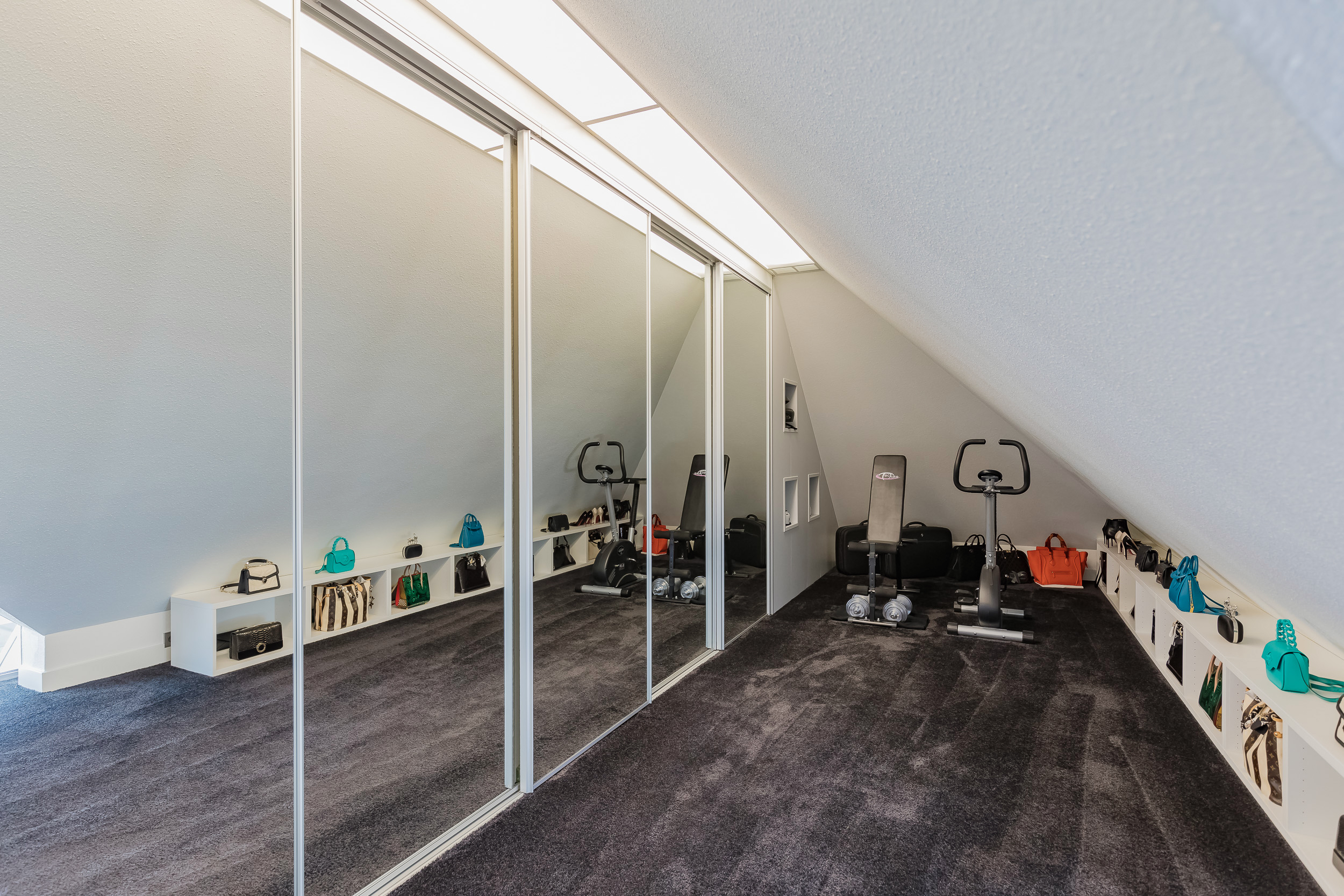 Op deze etage zijn 3 slaapkamers, 2 badkamers en een grote bergruimte. De zeer royale hoofdslaapkamer heeft een eigen luxe badkamer en een ruime kleedkamer. Het balkon is alleen vanuit deze kamer toegankelijk. 20 Dakramen zorgen voor extra lichtinval en ook hierin is de symmetrie doorgetrokken.