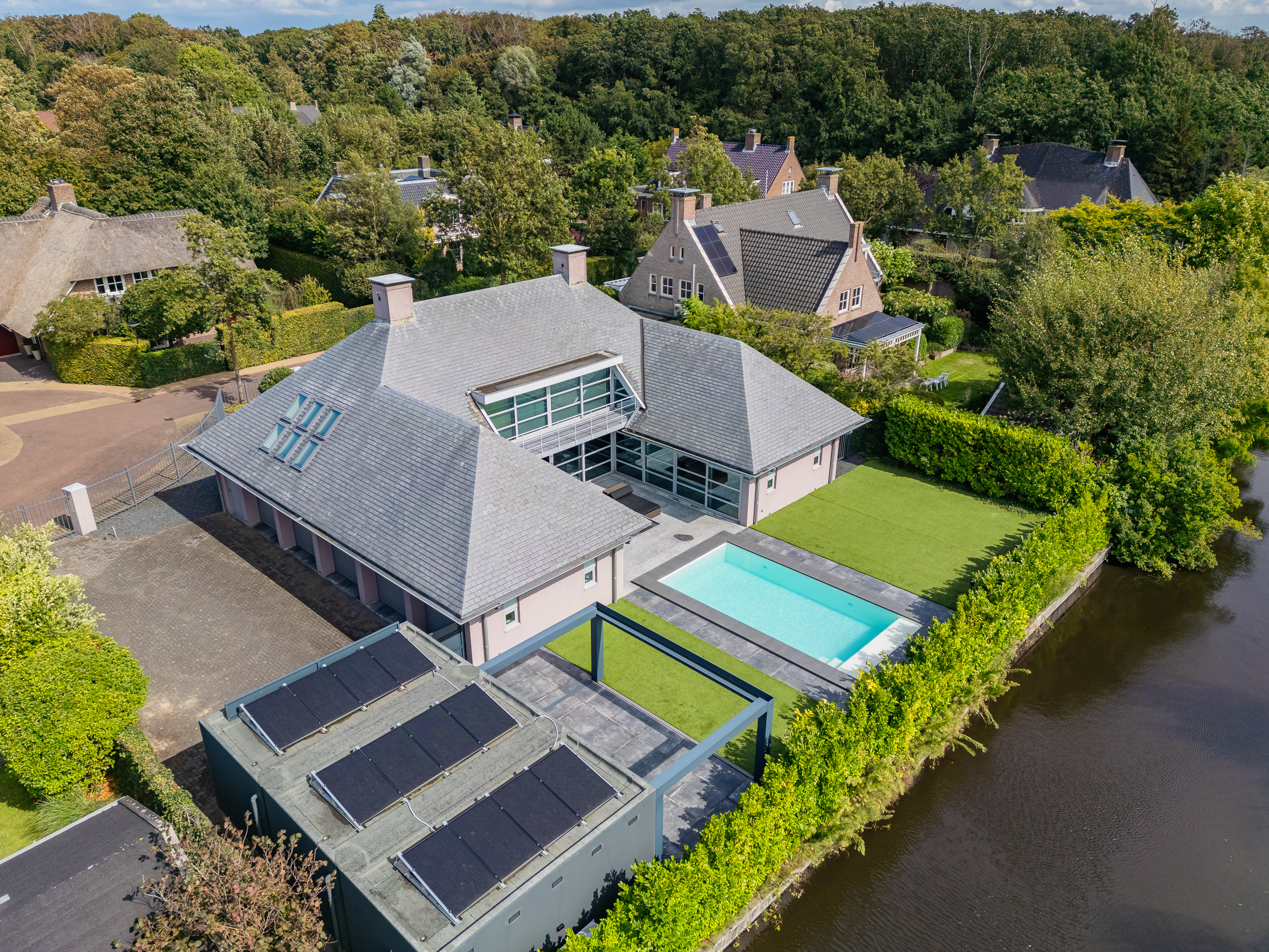Luxe moderne villa met verwarmd zwembad, inpandige garage voor 5 auto’s en een vrijstaande garage voor 2 (elektrische) auto’s, gelegen op één van de mooiste locaties van Noordwijk. Kernwoorden van deze bijzonder vormgegeven villa zijn; privacy, maatwerk en symmetrie.