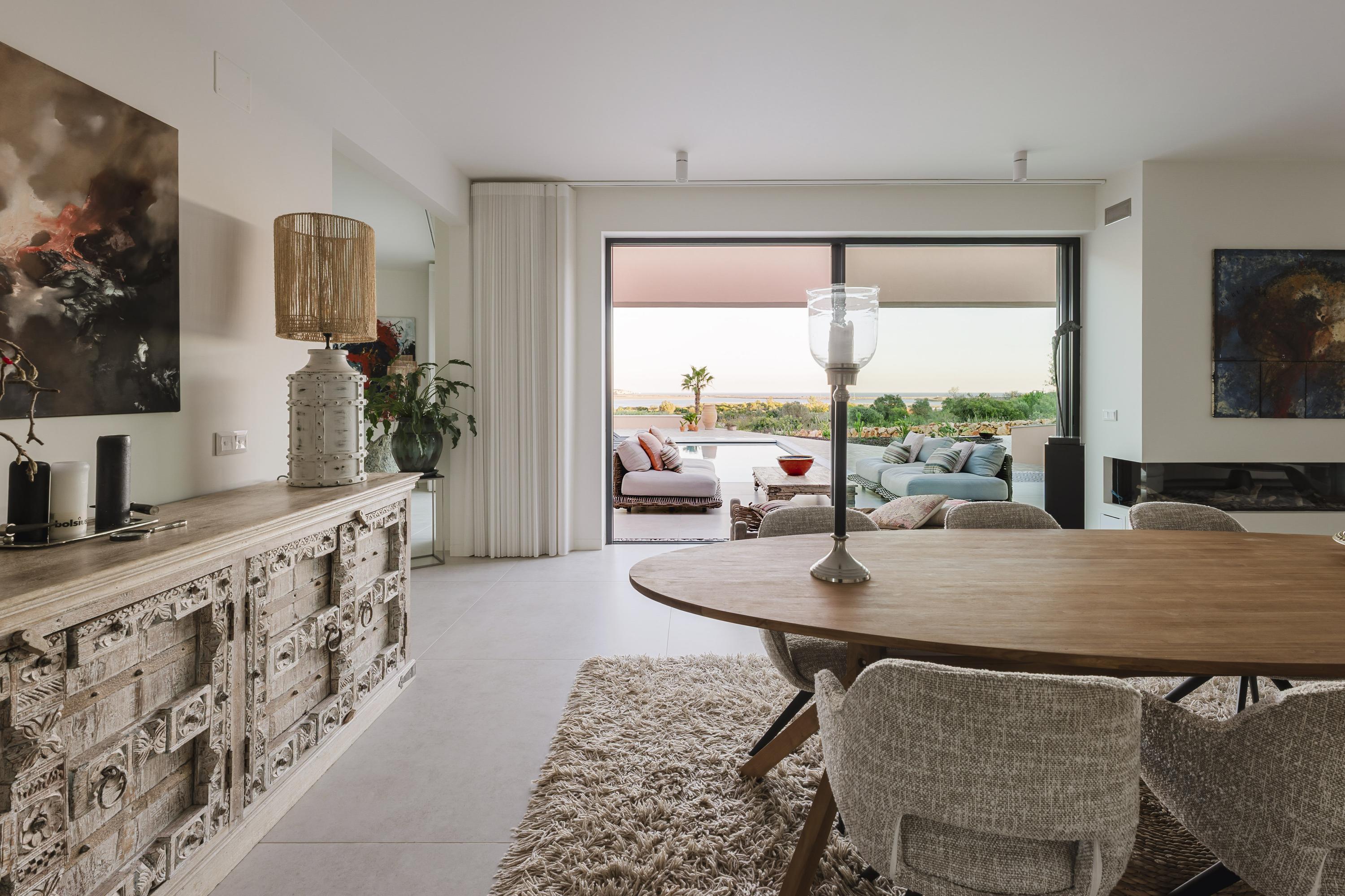 Licht, uitnodigend en met weids uitzicht over de Atlantische Oceaan en Palmares Golf. De naadloze overgang naar terras en zwembad creëert een moeiteloze binnen-buitenbeleving. Het voorste terras kan optioneel worden afgesloten met glas, waardoor een elegante all-season lounge of eetruimte ontstaat zonder het uitzicht te verliezen.