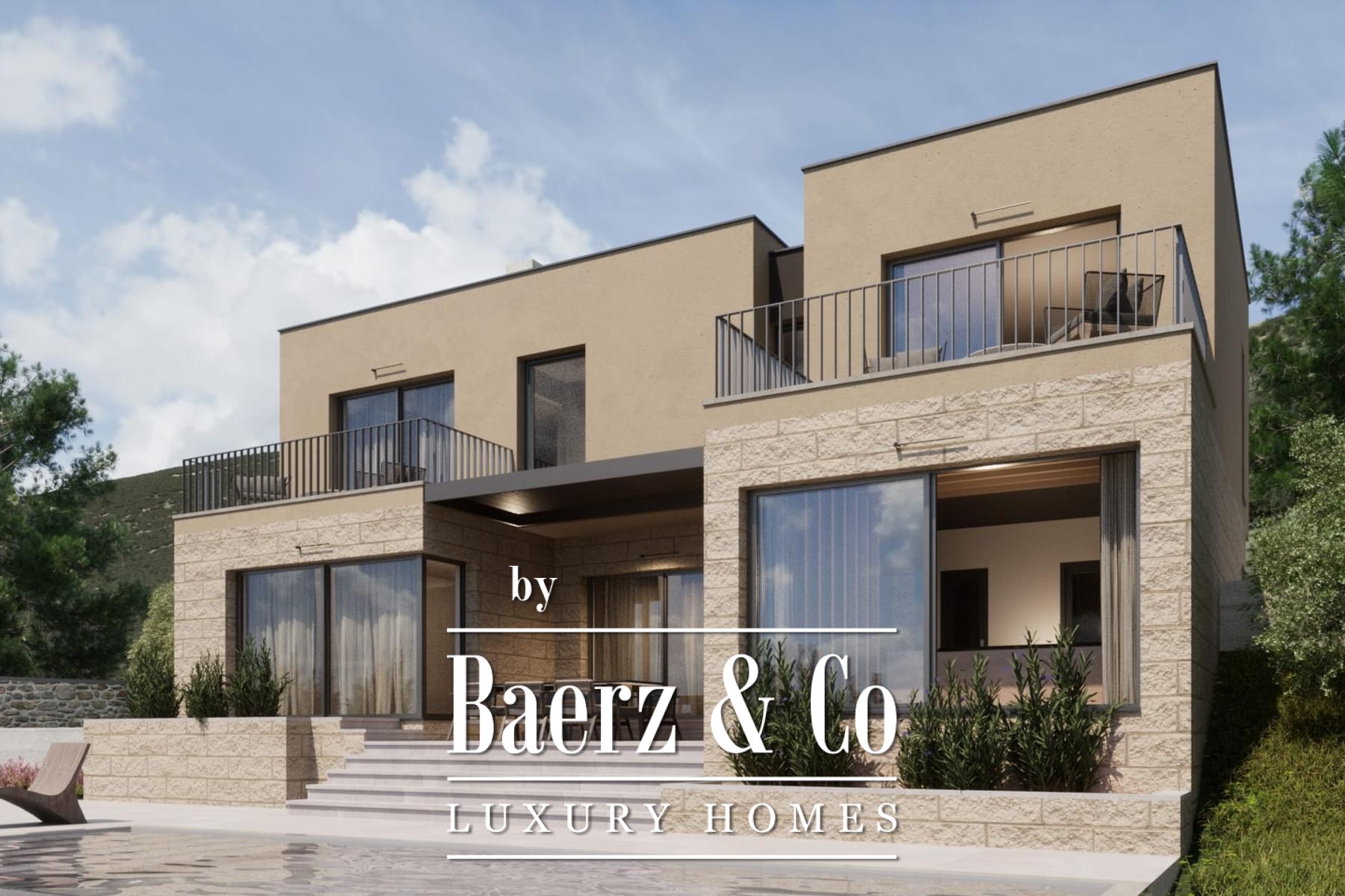De buitenzijde combineert hedendaagse lijnen met lokale materialen zoals Brač-steen en royale glazen wanden. Buiten versterken een zonneterras, een terras met eet- en barbecuefaciliteiten, een zwembad van 32 m² en vier parkeergelegenheden het gevoel van vrijheid en ontsnapping.