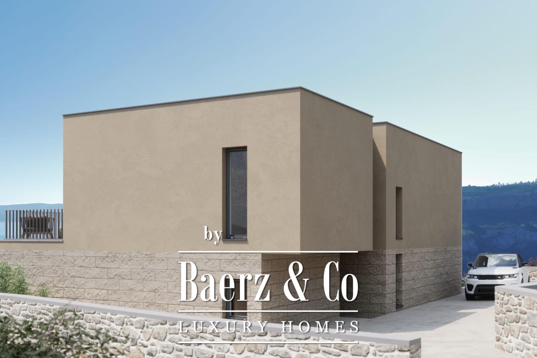Moderne villa Omiš is elegant gepositioneerd aan het einde van een besloten doodlopende straat, op een perceel van 775 m² dat panoramisch uitzicht biedt over de stad en het Brač-kanaal. De villa beslaat 195 m², harmonieus verdeeld over twee verdiepingen, met een ontwerp dat privacy en overvloed aan daglicht garandeert.