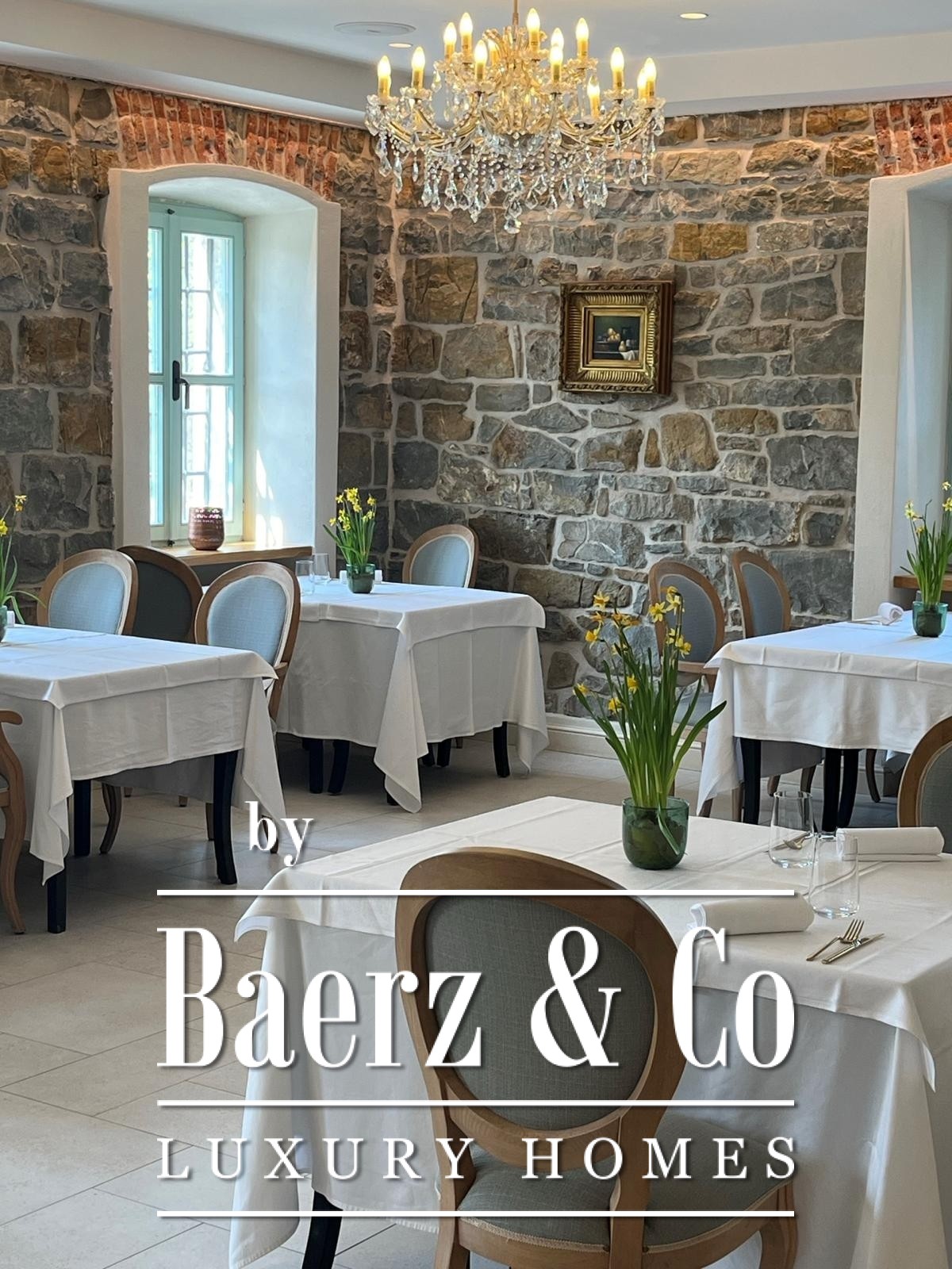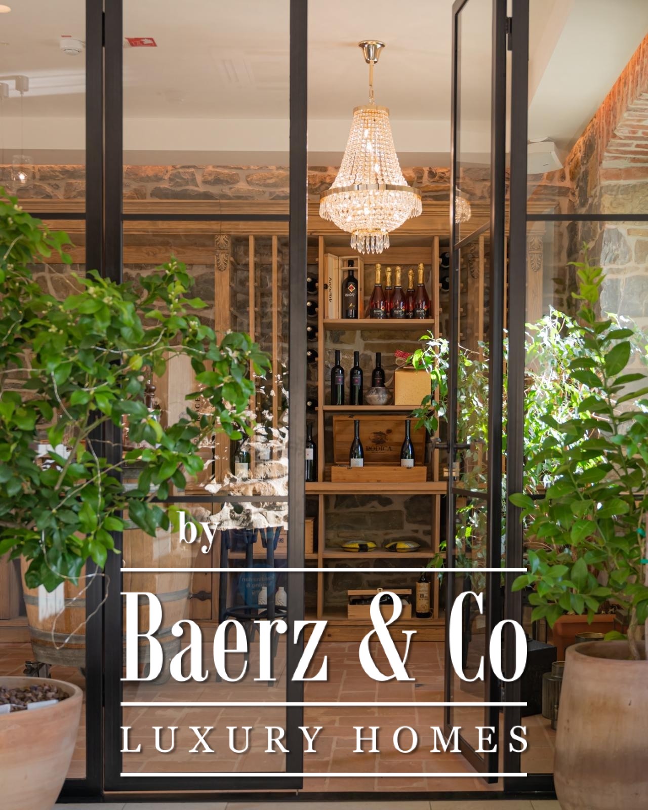De begane grond draait om een riant gastronomisch vertrek: een professionele keuken en stijlvolle eetkamer grenzen direct aan de mediterrane tuinen en creëren een soepele overgang voor intieme bijeenkomsten of exclusieve evenementen. In het souterrain weerspiegelt de met steen uitgehouwen wijnkelder het verbonden karakter van het landgoed met de streek— ingericht voor de presentatie van lokale topwijnen.
