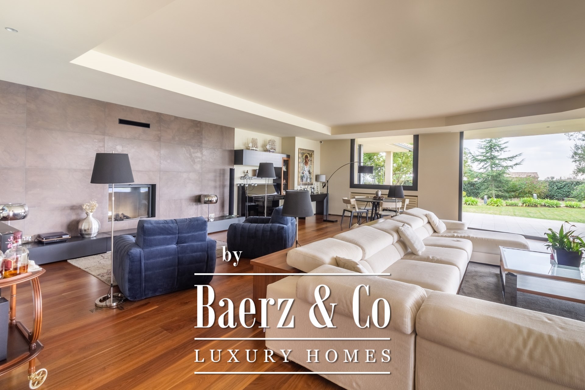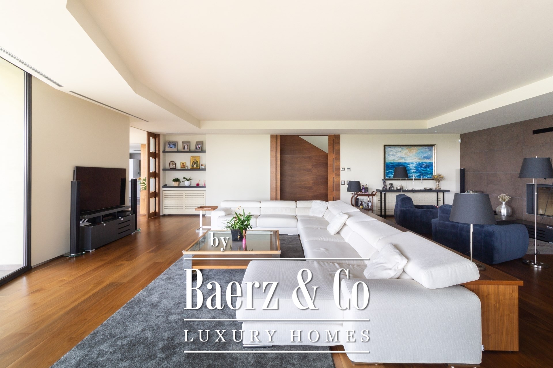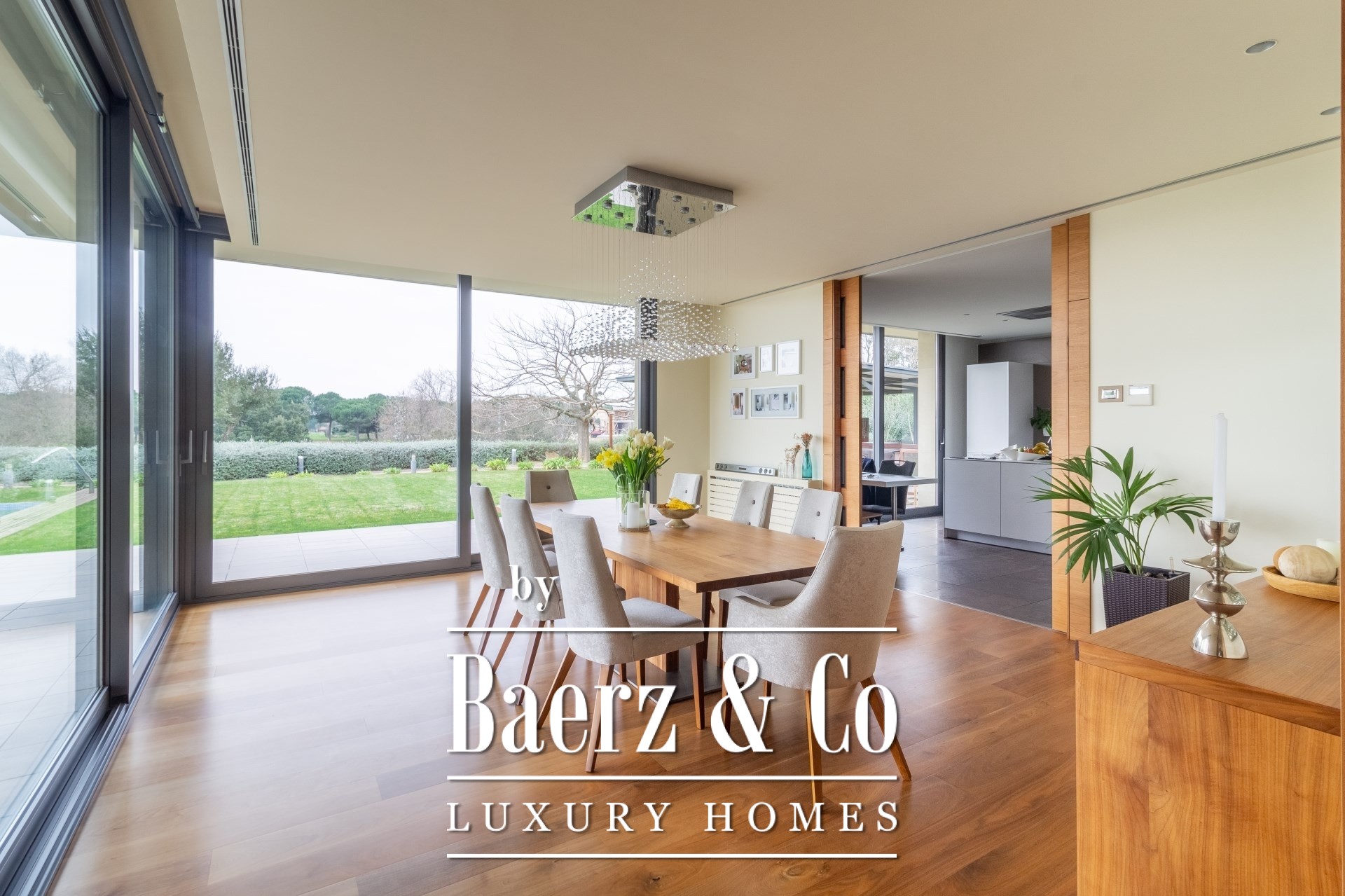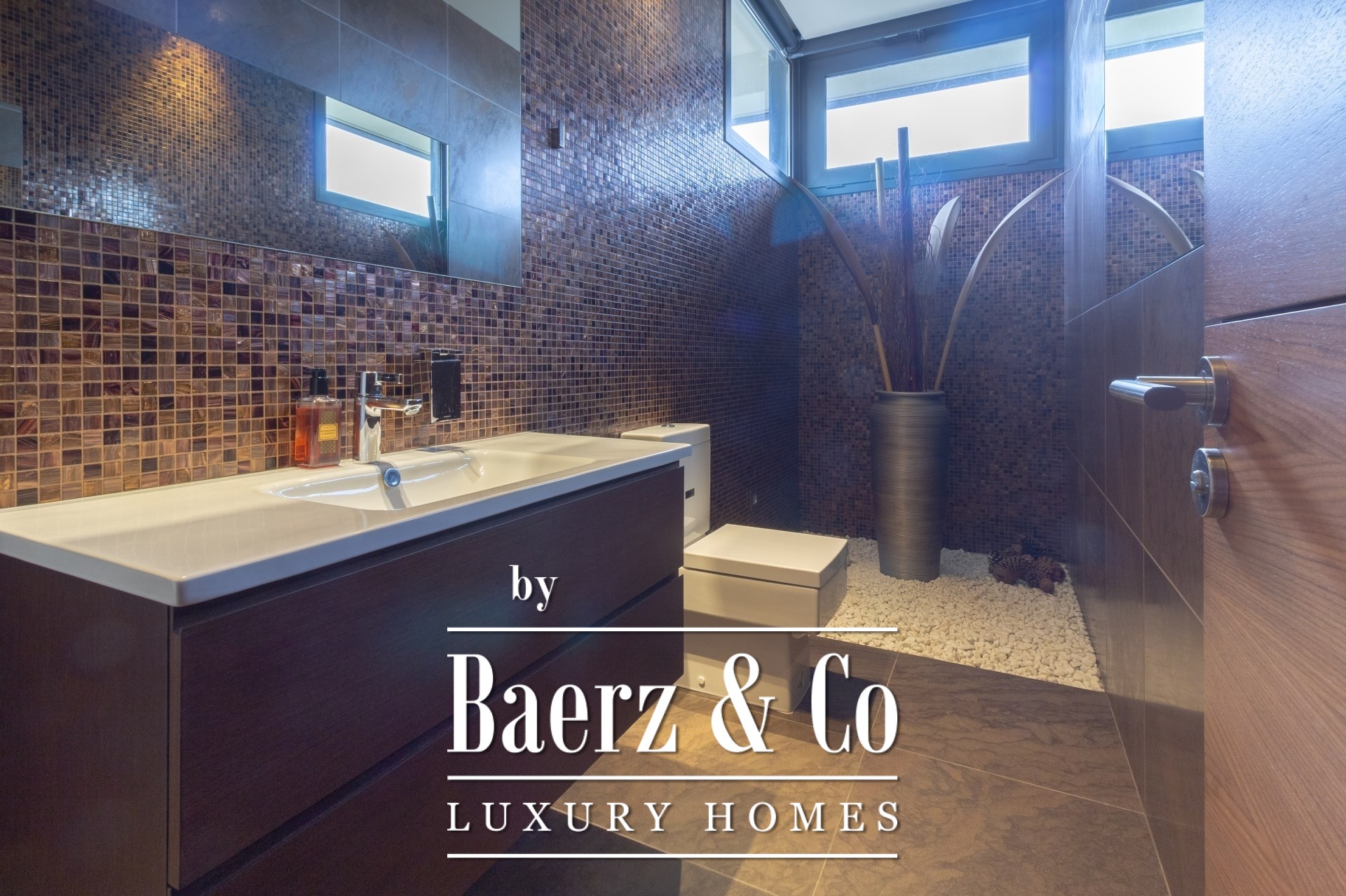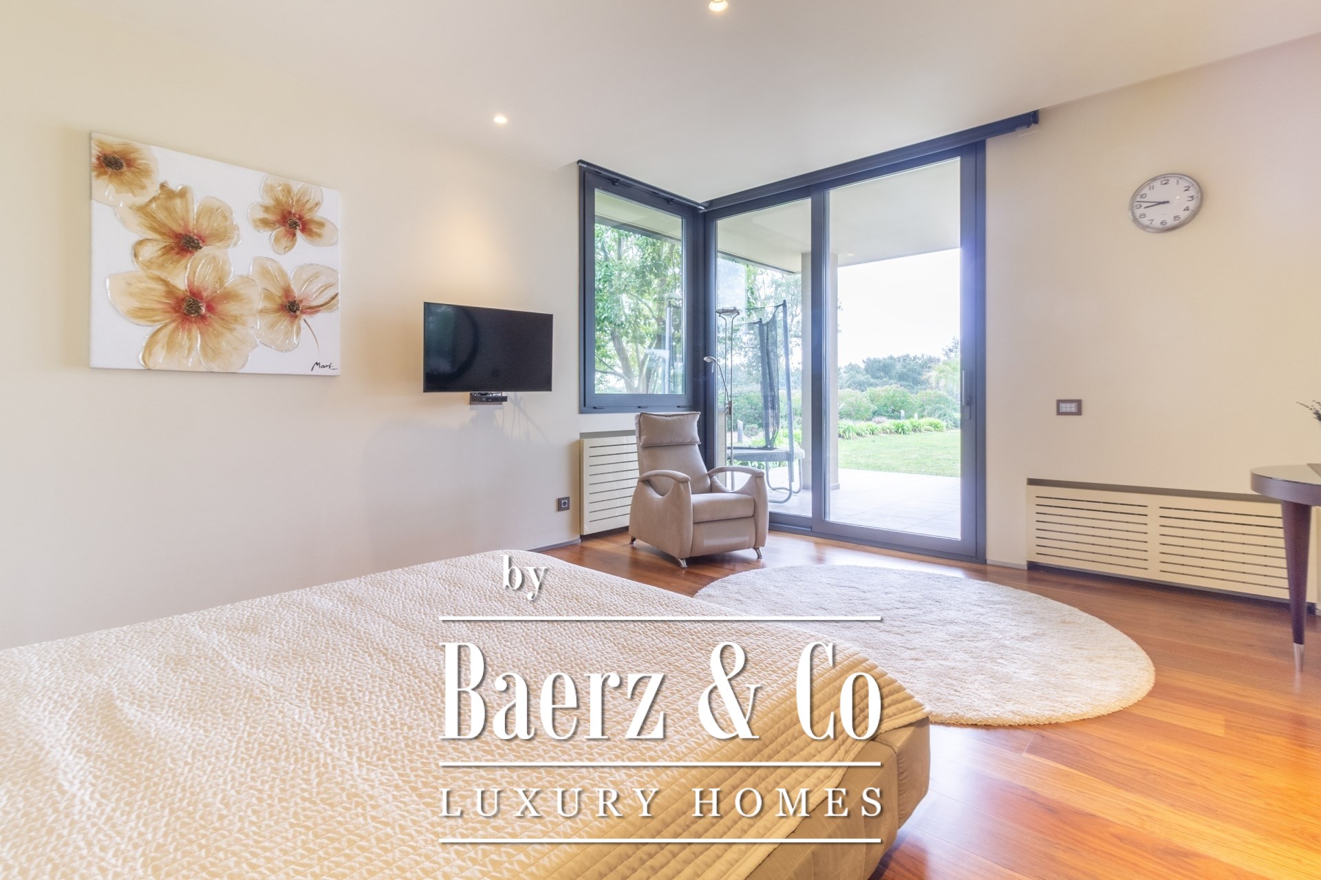 Buiten omringen volgroeide tuinen het zwembad met waterval, een barbecue met buitenkeuken en royale chill-out zones. Vloerverwarming, centrale airconditioning, elektrische ramen, geïntegreerd audiosysteem, volledige beveiliging en een lift benadrukken het comfort en de veiligheid van deze woning.