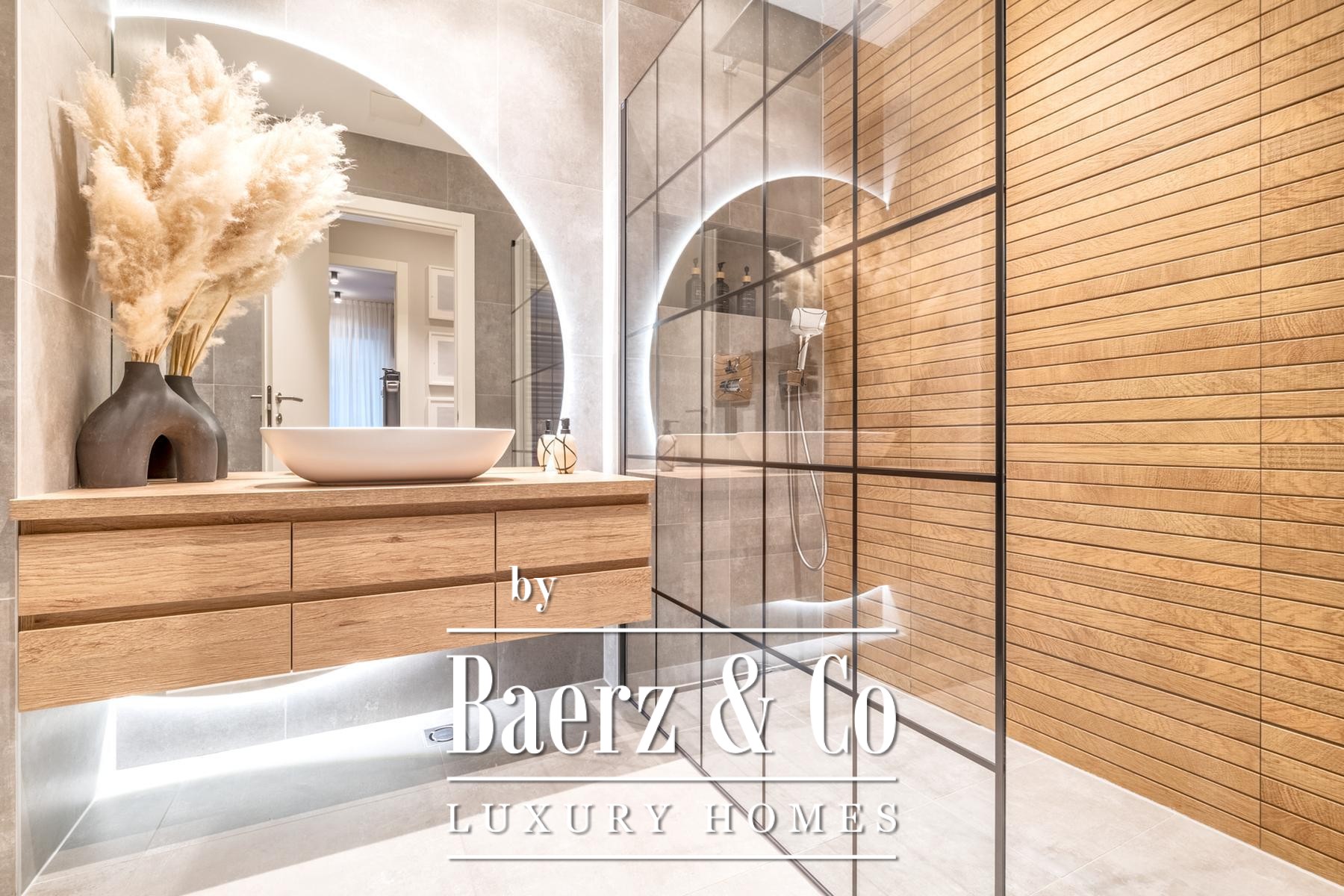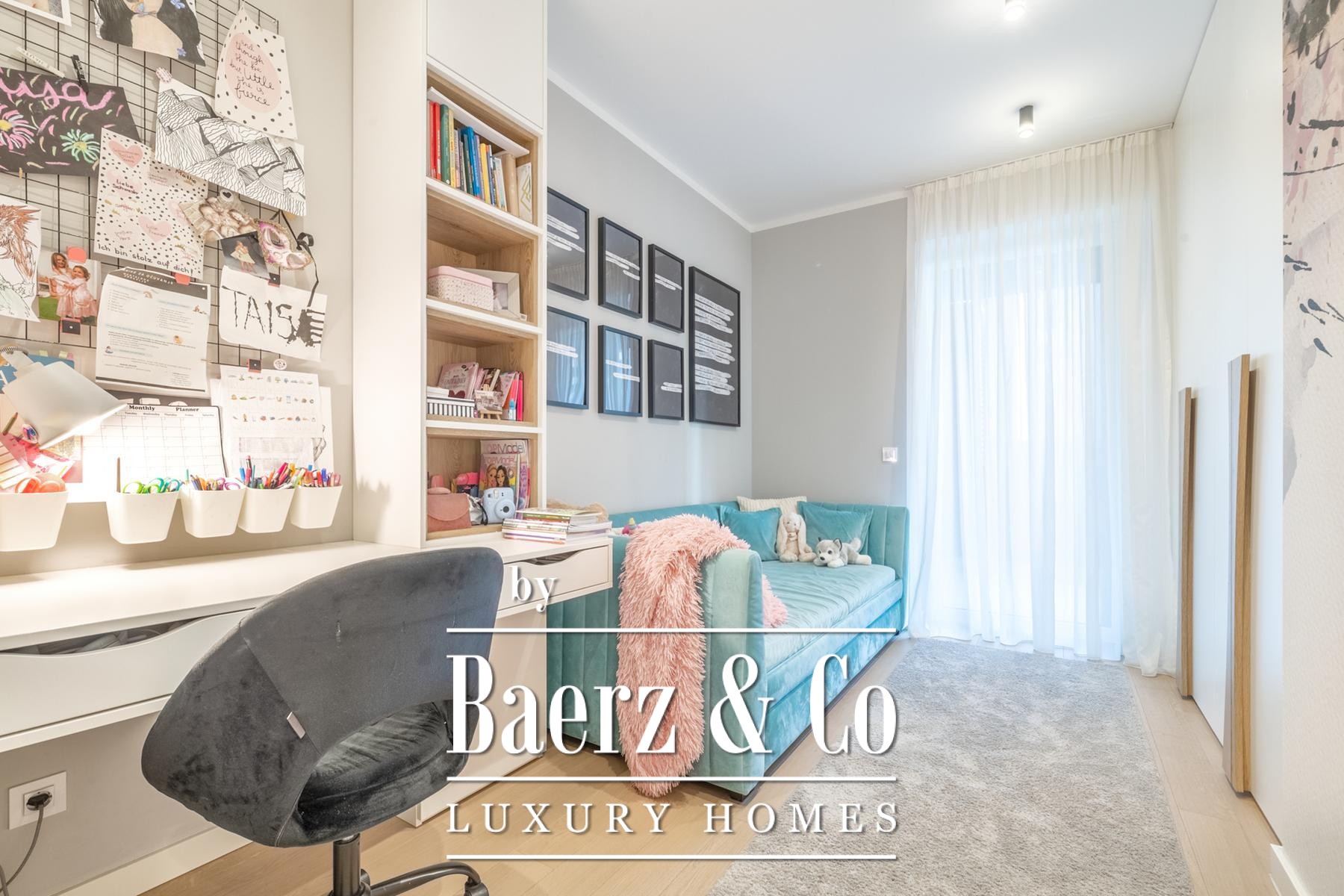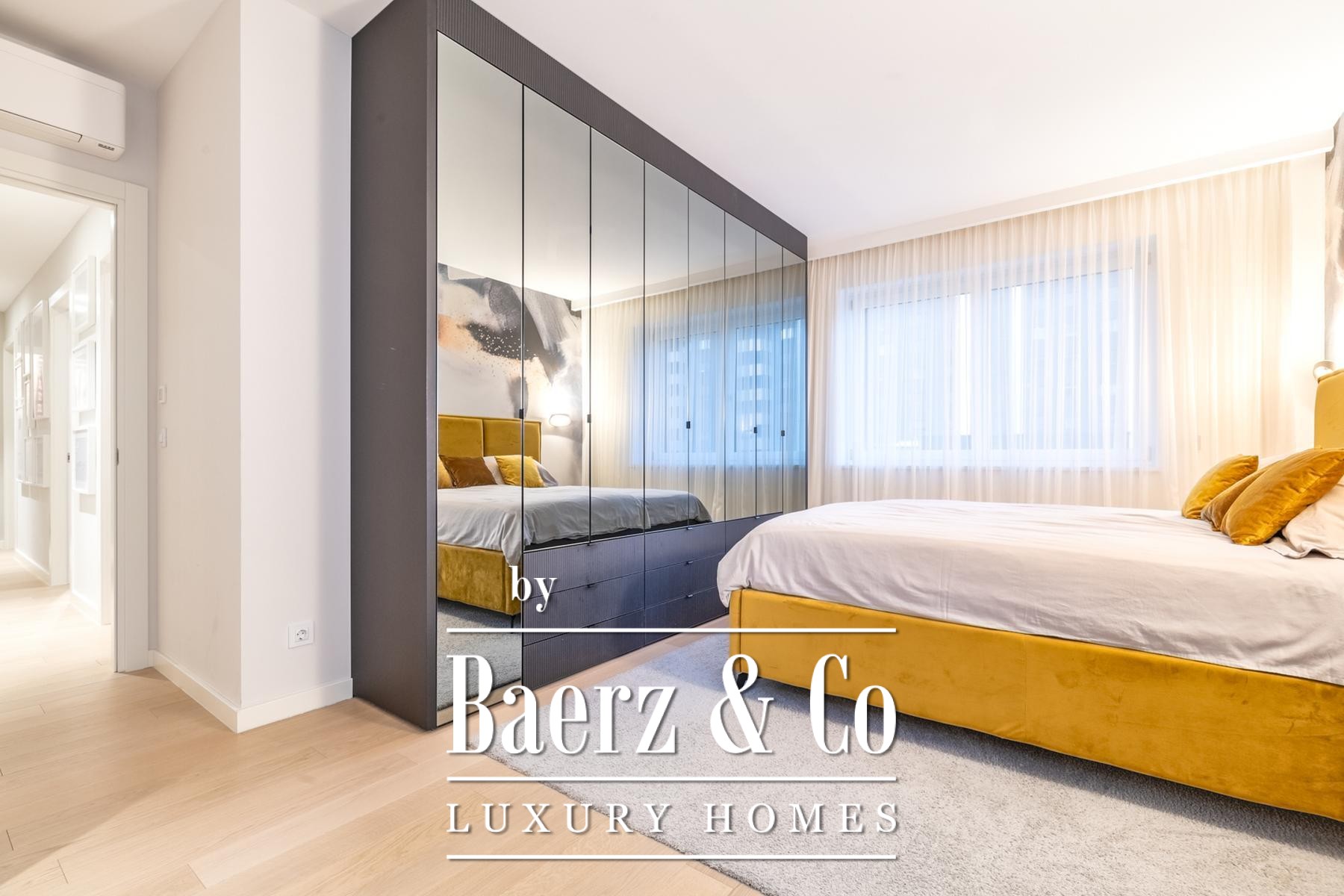 Elk van de vier slaapkamers kent zijn eigen sfeer voor totale ontspanning, met een mastersuite die zich onderscheidt door een maximaal gevoel van afzondering, terwijl twee slaapkamers directe toegang bieden tot een tweede loggia buiten. De aanwezigheid van vier badkamers en een apart gastentoilet garandeert zowel voor bewoners als bezoekers optimale privacy en gemak. Maatwerkmeubilair en vloerverwarming in het gehele appartement verhogen het comfort en de materiaalbeleving.