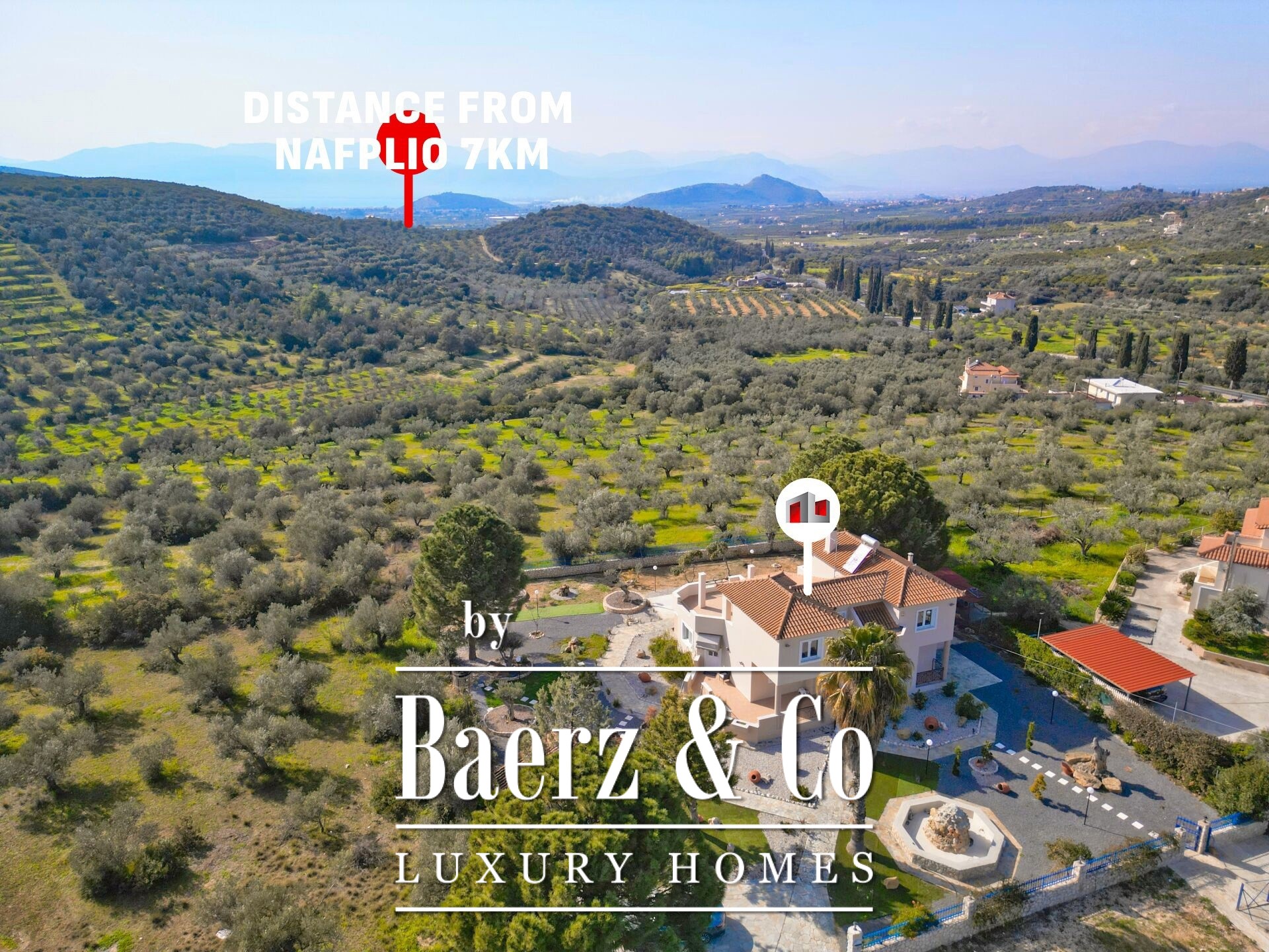 Praktische kenmerken zijn onder meer een berging van 10 m², een beveiligingssysteem met alarm en camera’s en kostenefficiënte irrigatie via het Anavalos-netwerk. Momenteel verhuurd tot november 2027, biedt deze woning rust, investeringspotentie en een bevoorrechte ligging op slechts enkele minuten van het centrum van Nafplio.