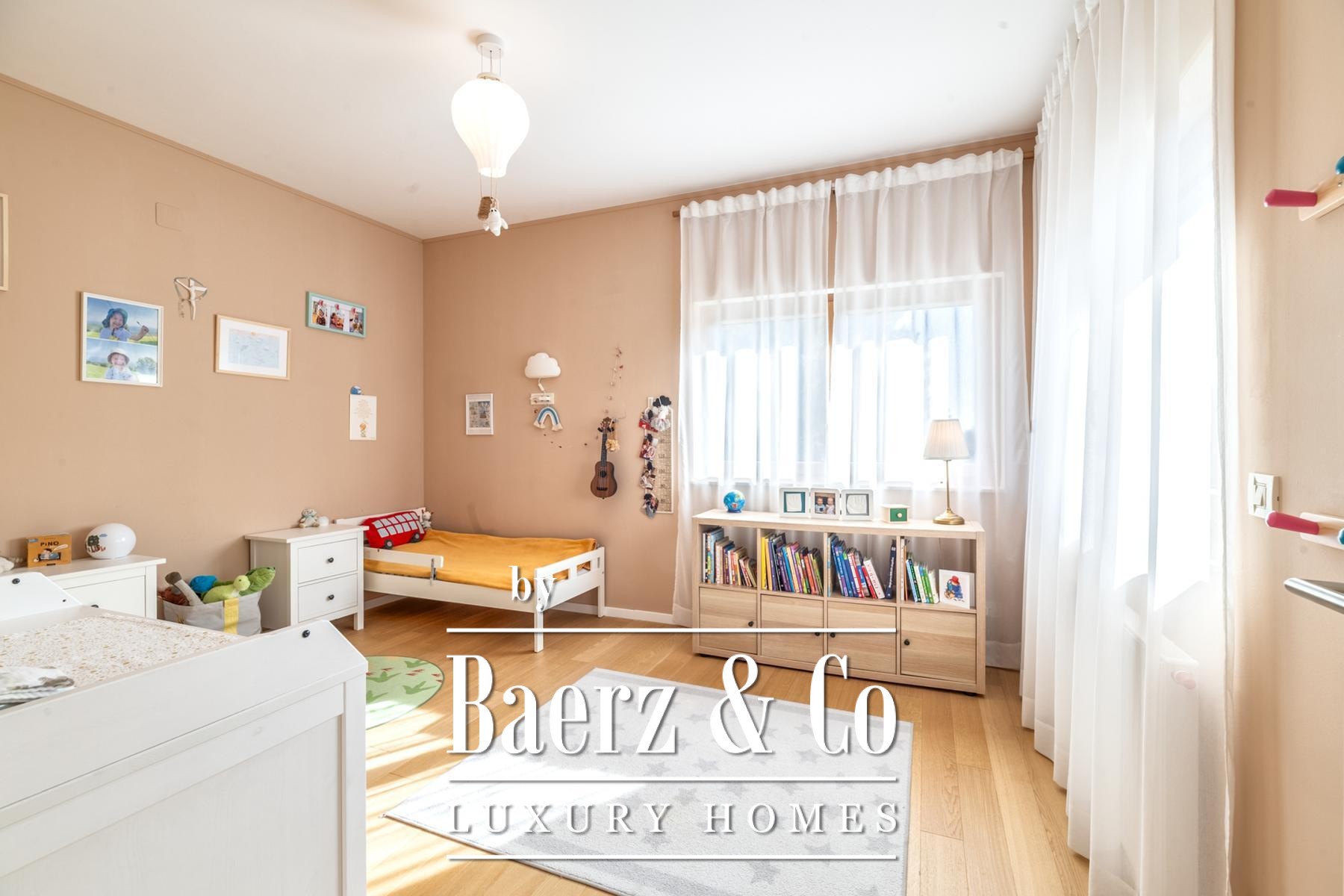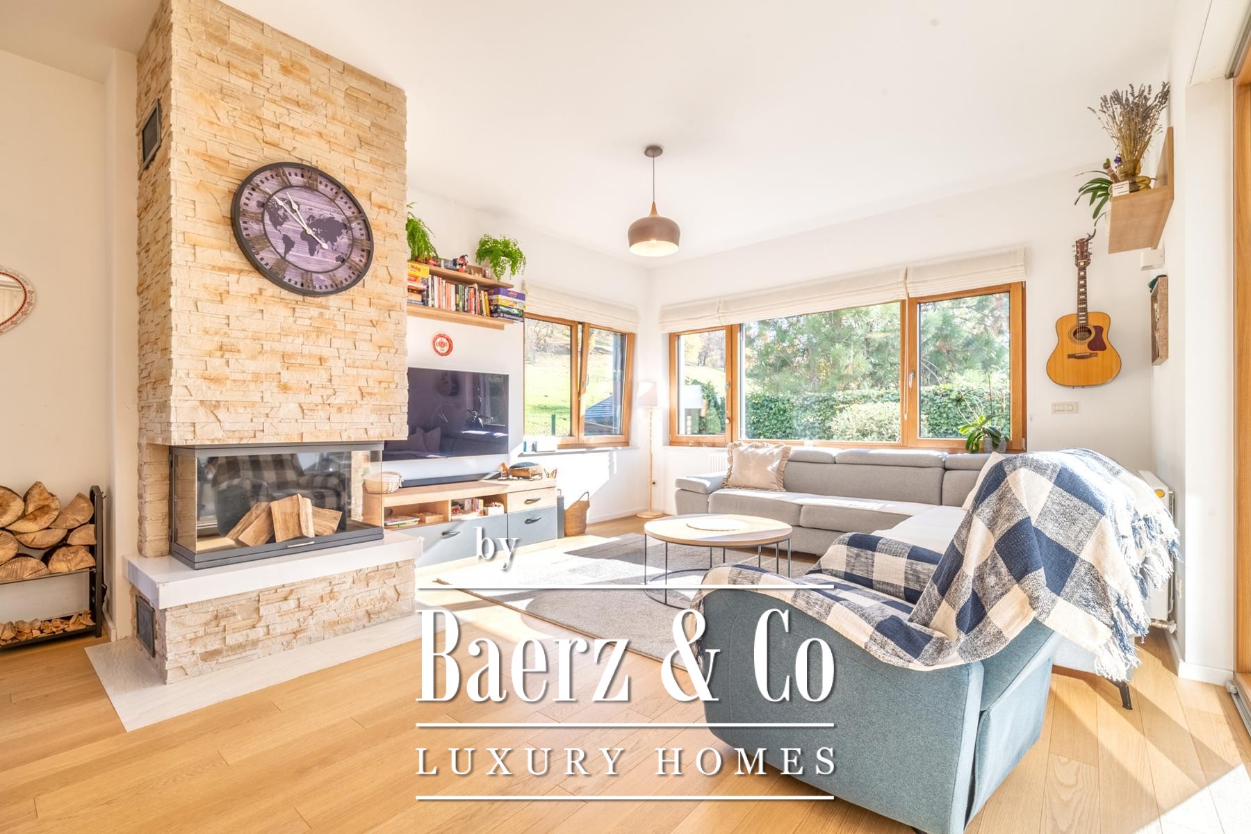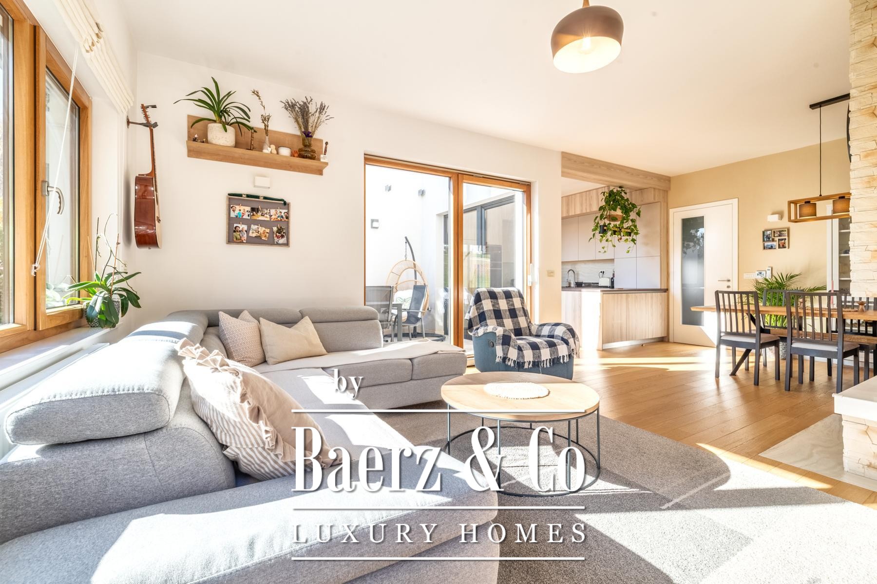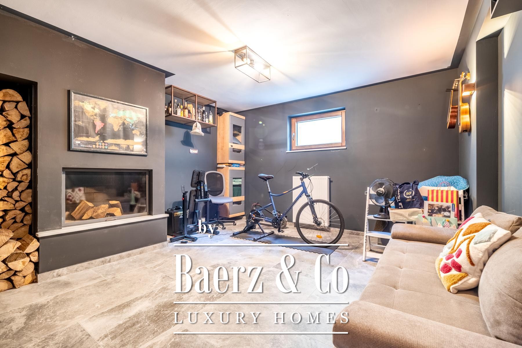 De begane grond start met een entreehal die vloeiend overgaat in een lichte woonkamer, naadloos verbonden met een open terras van 14 m² en een privé-tuin van 58 m². De keuken en eetruimte vormen een subtiel sociaal centrum, terwijl de bovenverdieping drie slaapkamers biedt—waarvan één geschikt als werkkamer—en stijlvolle badkamers. In het souterrain bevindt zich een discrete bergruimte, een extra badkamer en twee verdere slaapkamers, wat optimale privacy biedt voor gasten of familieleden.