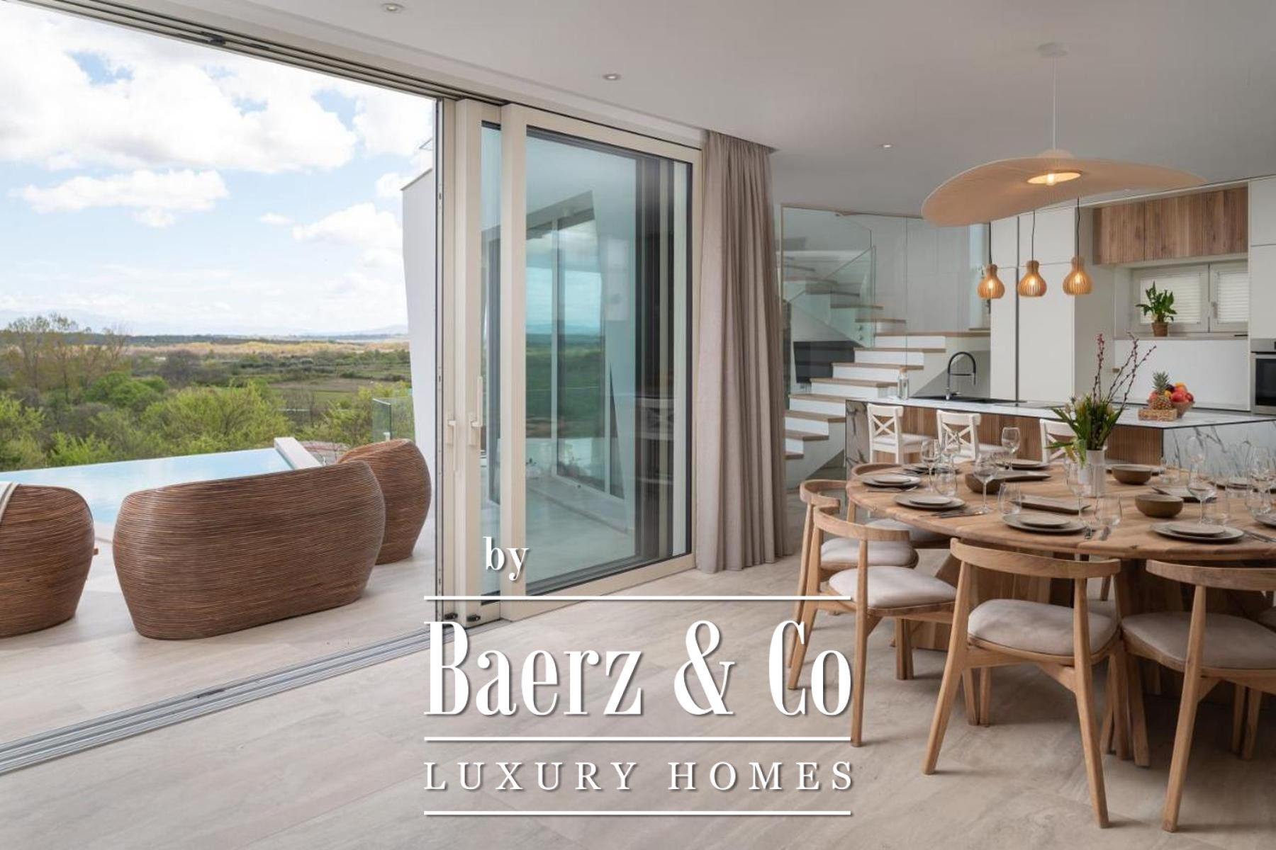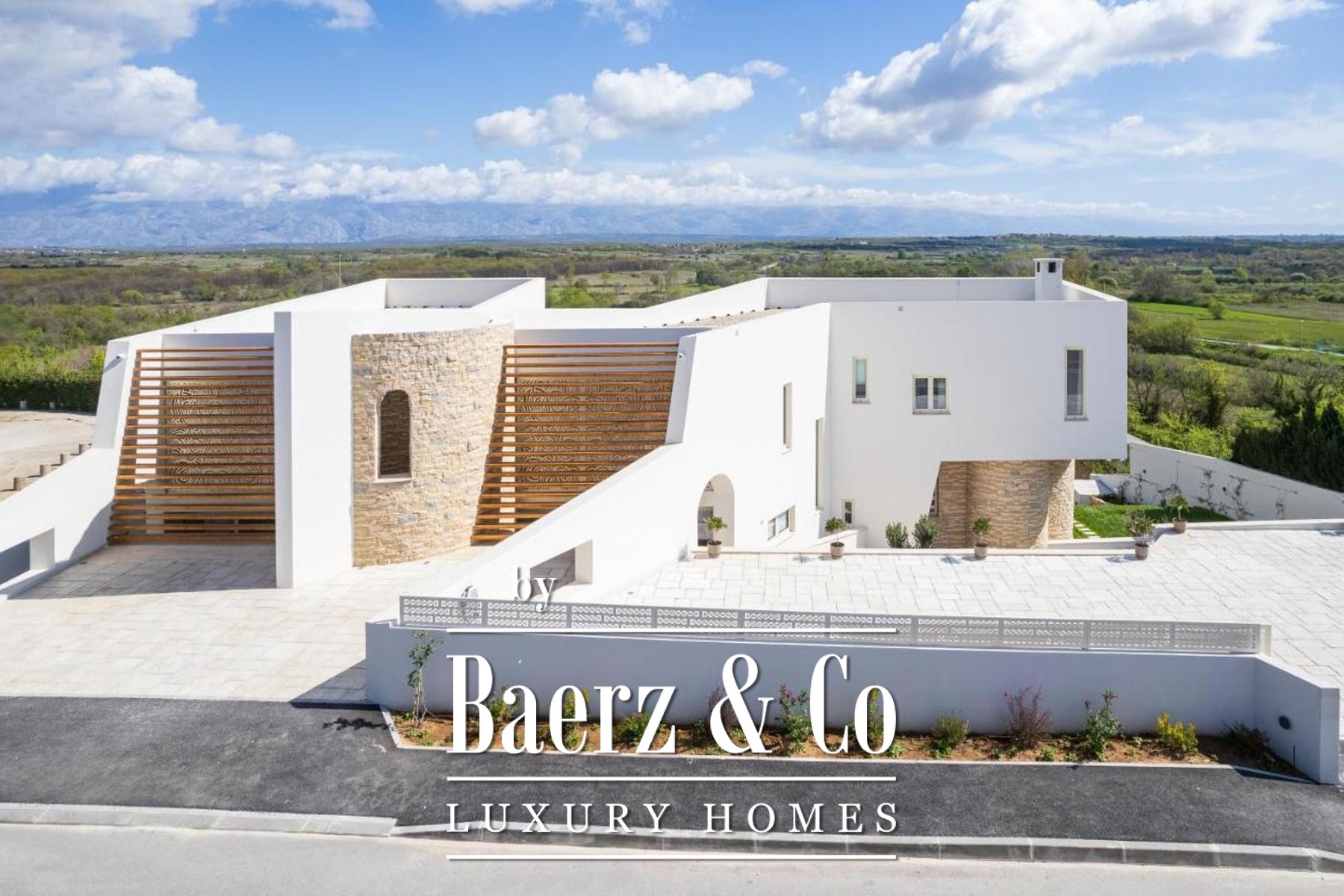De moderne villa Poličnik vormt een verfijnde samensmelting van architectonische elegantie en wijdse natuurpanorama’s. Deze eigentijdse villa biedt 414 m² zorgvuldig vormgegeven leefruimte, waar een doordacht design samensmelt met de rust van de omgeving nabij Zadar. Op een perceel van 1.191 m² beschikt de woning over een fraai aangelegde buitenruimte met zes privéparkeerplaatsen, royale terrassen en een zwembad dat baadt in het licht.