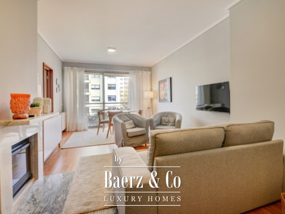 Dit tweeslaapkamerappartement in Porto biedt een verfijnde leefruimte op een van de meest gewilde woonlocaties van de stad. Het volledig gemeubileerde appartement beslaat 104 m² en bevindt zich op de vijfde verdieping. Kenmerkend is de doordachte scheiding tussen het sociale en het private woongedeelte. Direct bij binnenkomst scheidt een uitnodigende hal de verschillende zones. De woonkamer beschikt over een haard en directe toegang tot een gemeubileerd balkon. Dankzij de oost- en zuidoriëntatie geniet u van ochtend- en daglicht.