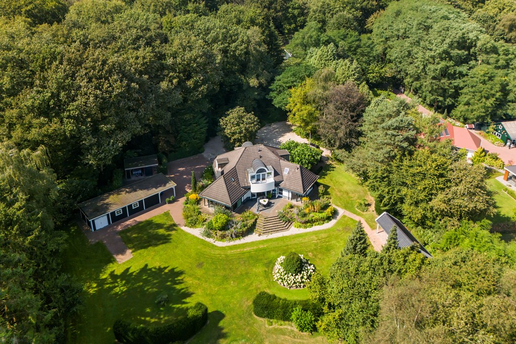 De oprit brengt u naar het prachtige perceel omzoomd door planten en bomen. De weelderige achtertuin op het zuidoosten biedt een groen en open landschap. Met een groot gazon hebben kinderen hier alle ruimte om te spelen of geniet u van de rust, zon en privacy. Een bestraat terras aan het huis biedt een schitterend uitzicht over de tuin. Daarnaast is er een tweede, overdekt terras, waar u op warme dagen in de schaduw kunt ontspannen. Dit terras is onderdeel van de in 2022 nieuw gebouwde kapschuur met bergruimte voor tuingereedschap, tuinstoelen e.d.. Een grote houten schuur (wanden en dak geïsoleerd) met carport en grote berging (2022) zorgen voor voldoende ruimte voor het stallen en/of opbergen van een auto, motor, fietsen, grasmaaier, gereedschap e.d.. Er is nog een derde schuur aanwezig welke o.a. wordt gebruikt voor het stallen van een aanhangwagen. In de tuin is een irrigatiesysteem voor besproeiing van de tuin aanwezig (middels een grondwaterpomp).