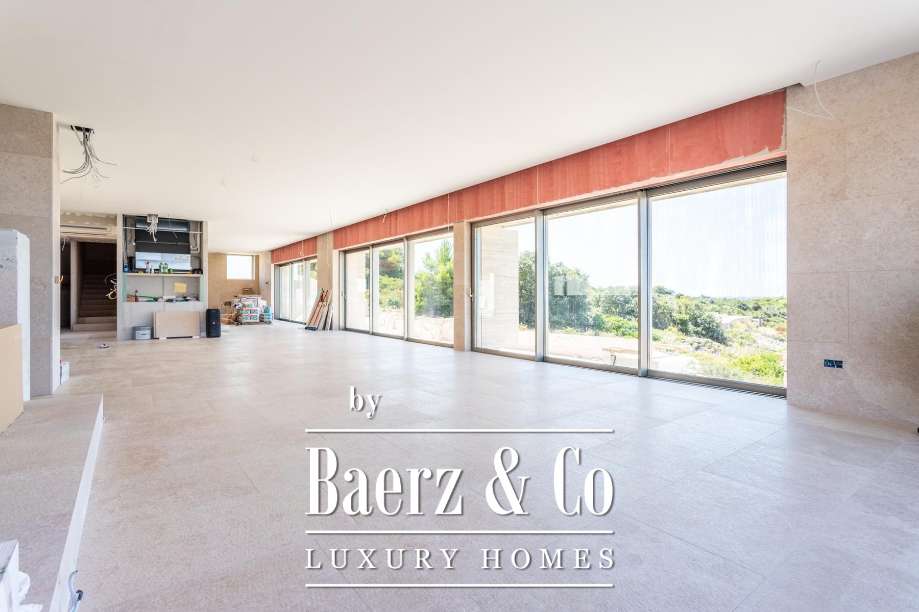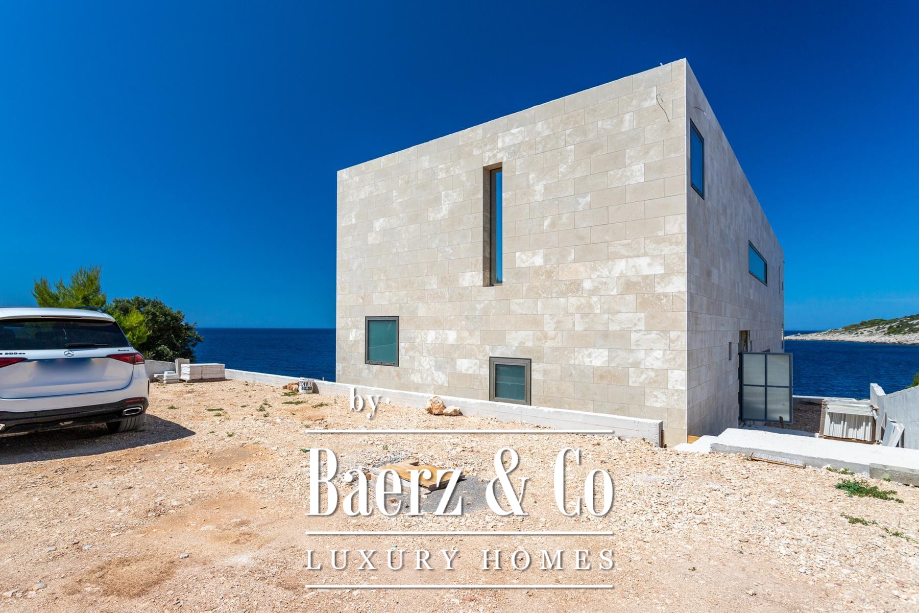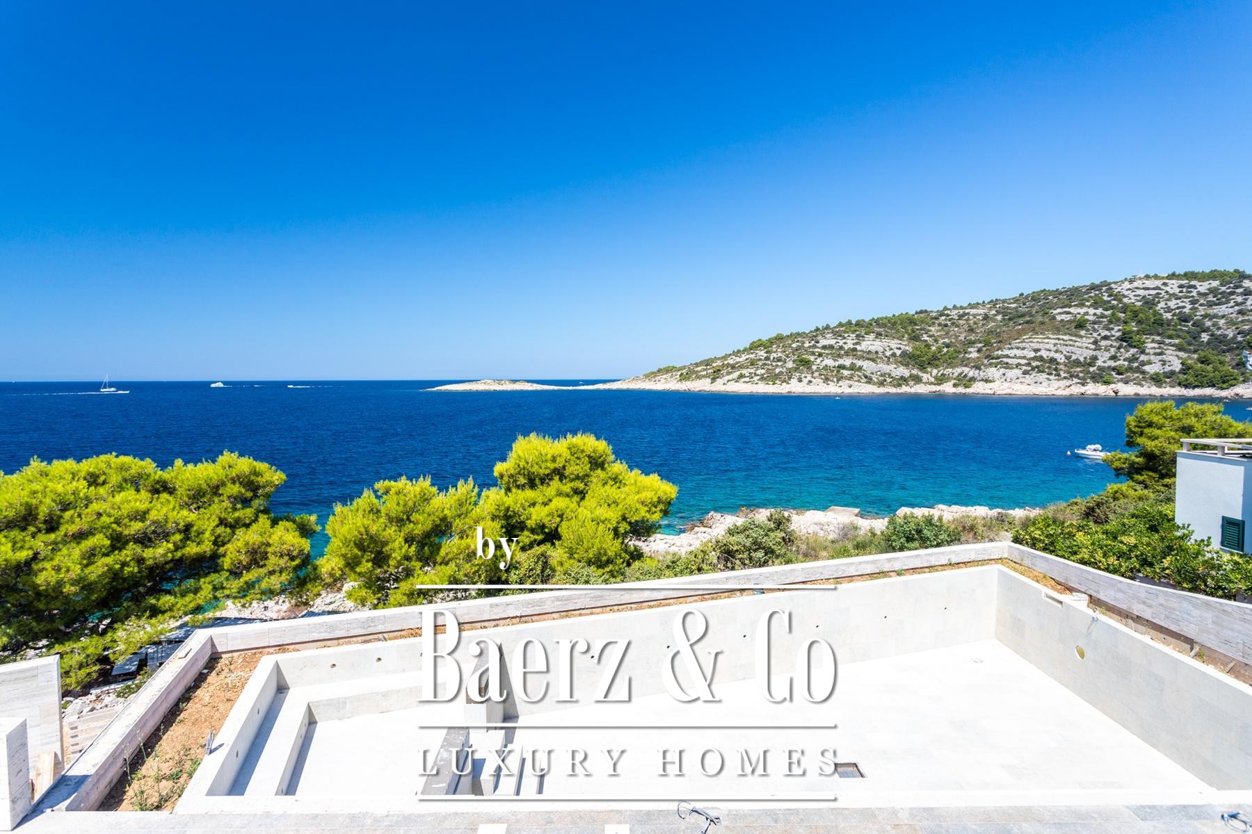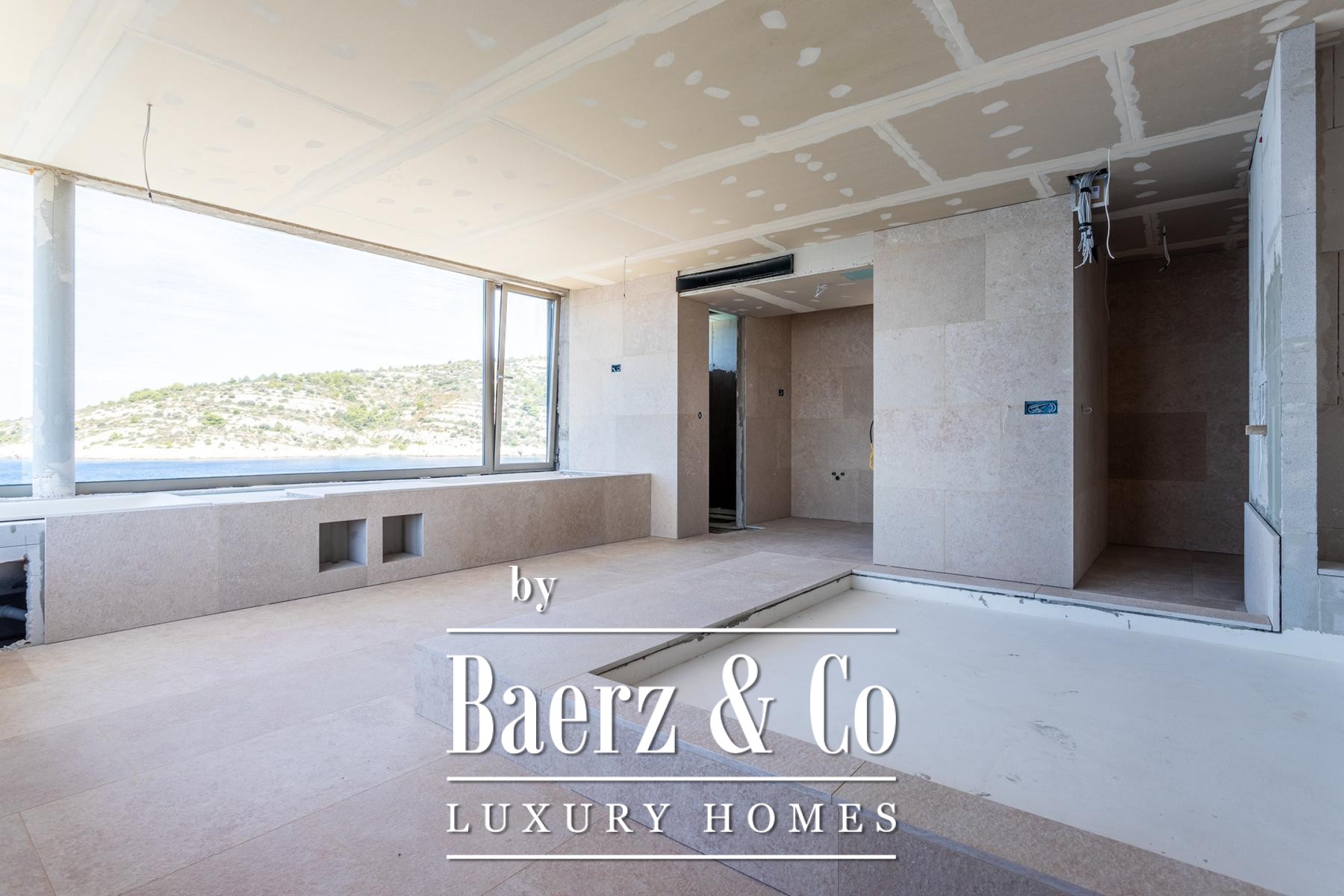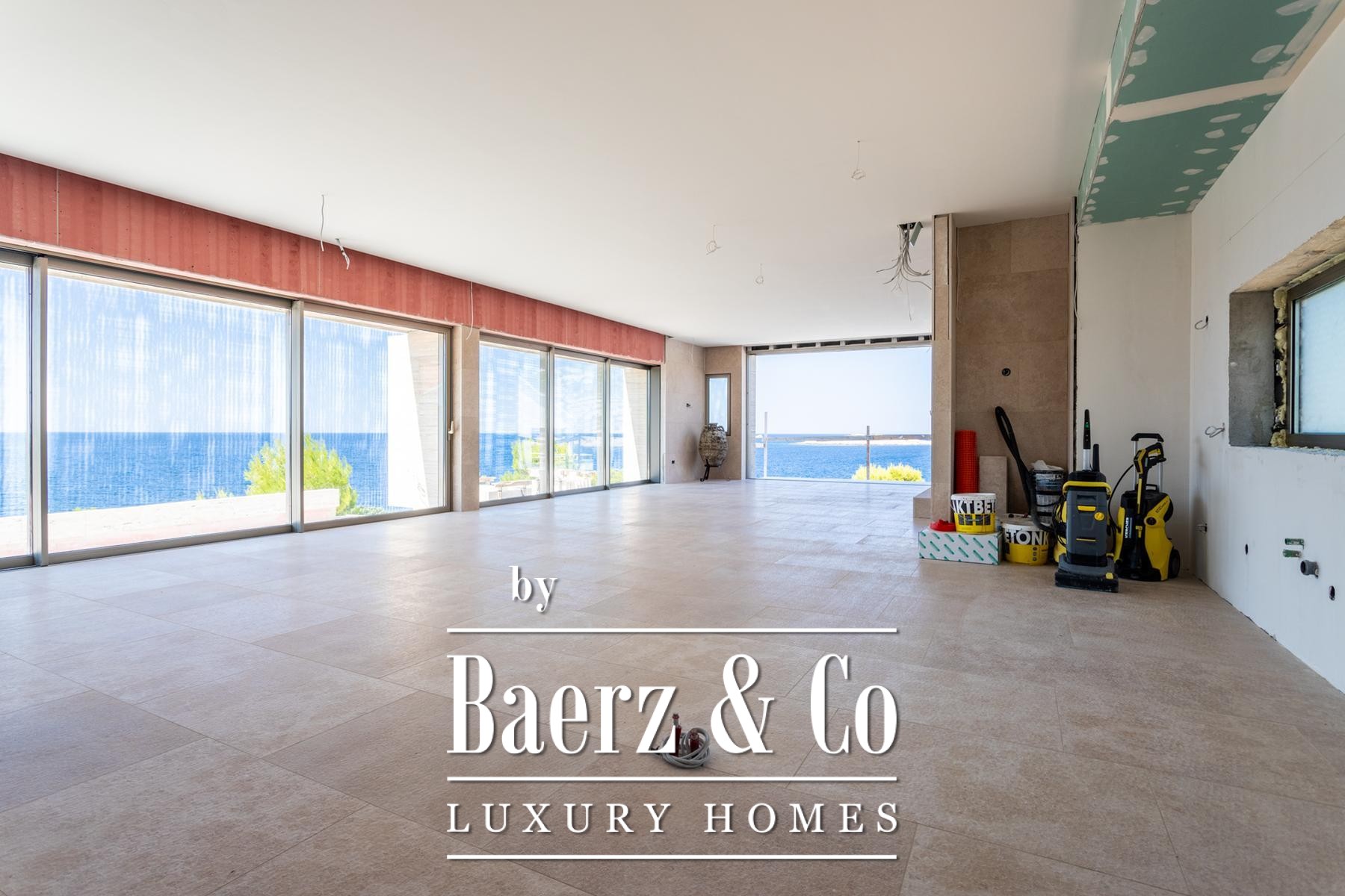 De begane grond verwelkomt met een royale entree, die overloopt in de bar, keuken, eet- en leefruimten, met terrassen die direct uitkomen aan zee. Op de eerste verdieping beschikken vier slaapkamers elk over een eigen badkamer en inbouwkast; de master suite beschikt over een terras met panoramisch zeezicht. Een ruime inloopkast en een wasruimte bieden dagelijks gemak. Het souterrain huisvest een traditionele taverne met keuken, een fitness- en gymruimte met badkamer, en directe toegang tot het buitenleven—het zwembad van 250 m² met geïntegreerde pool van 75 m² vormt een vloeiende overgang tussen woning en kustlijn.