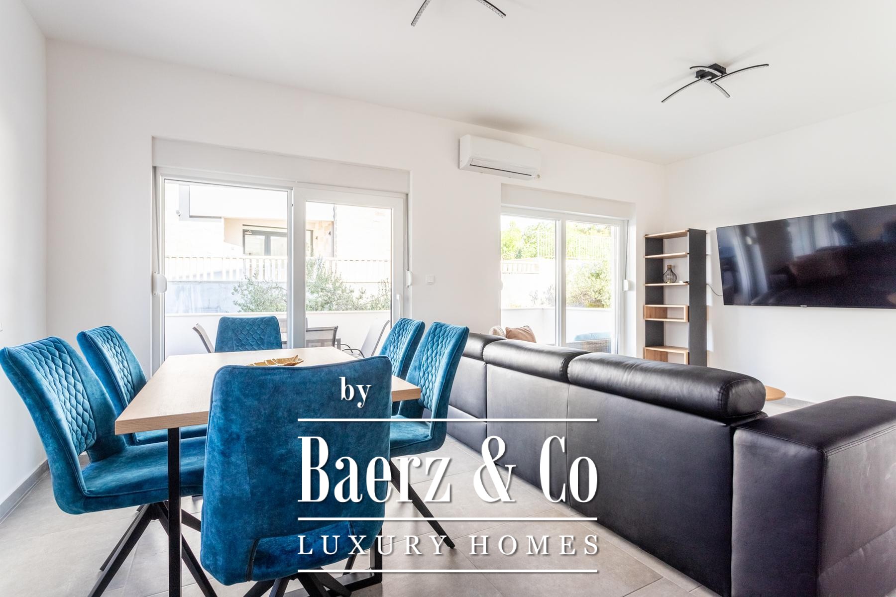 House Rogoznica ligt op slechts 90 meter van de Adriatische kust en biedt 366,81 m² aan doordacht design verdeeld over vier volledig ingerichte appartementen. Deze woning combineert privacy met flexibiliteit en beschikt over acht slaapkamers en acht badkamers, ideaal voor verfijnd dagelijks wonen of stijlvolle vakanties in alle discretie.