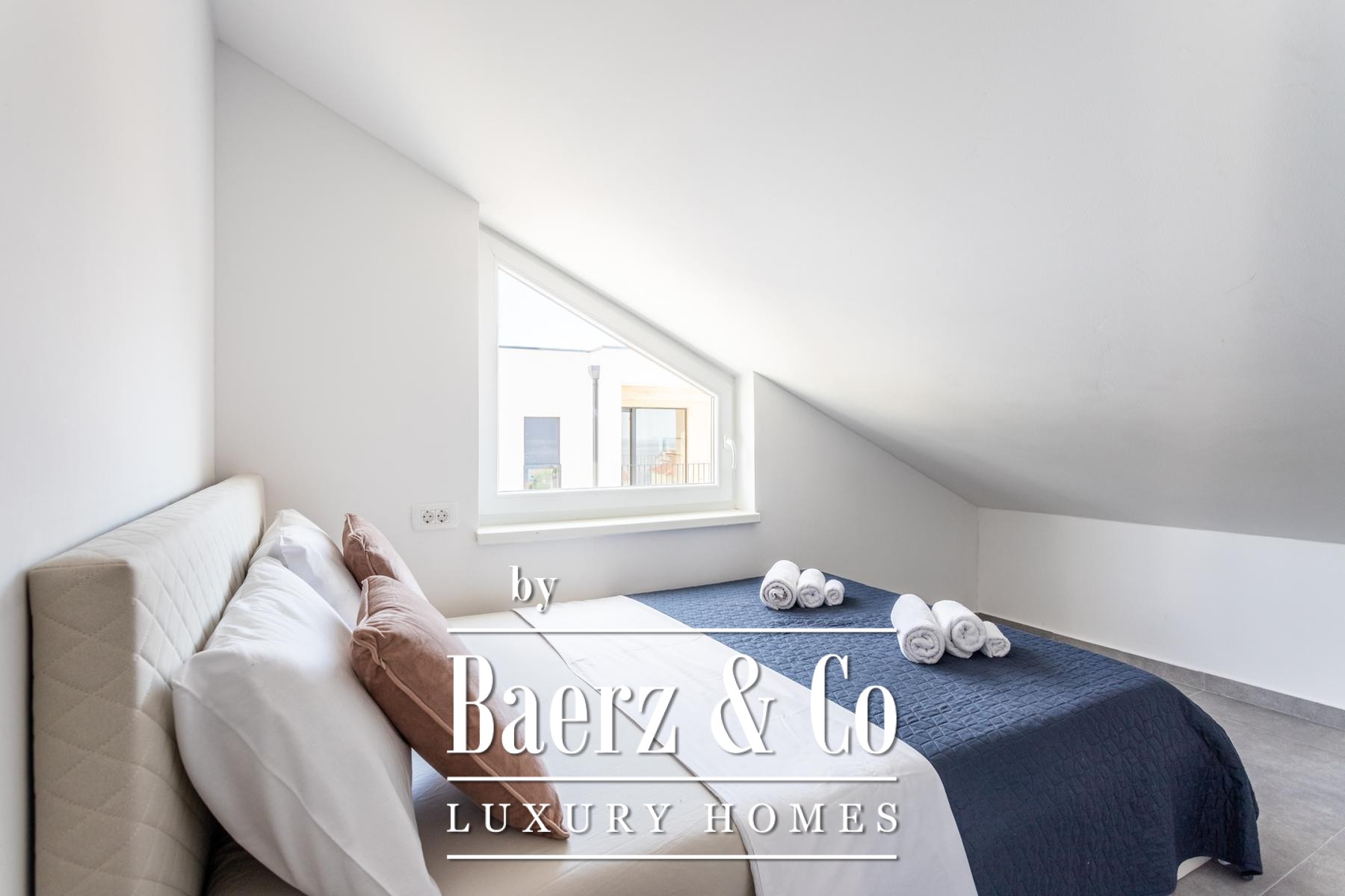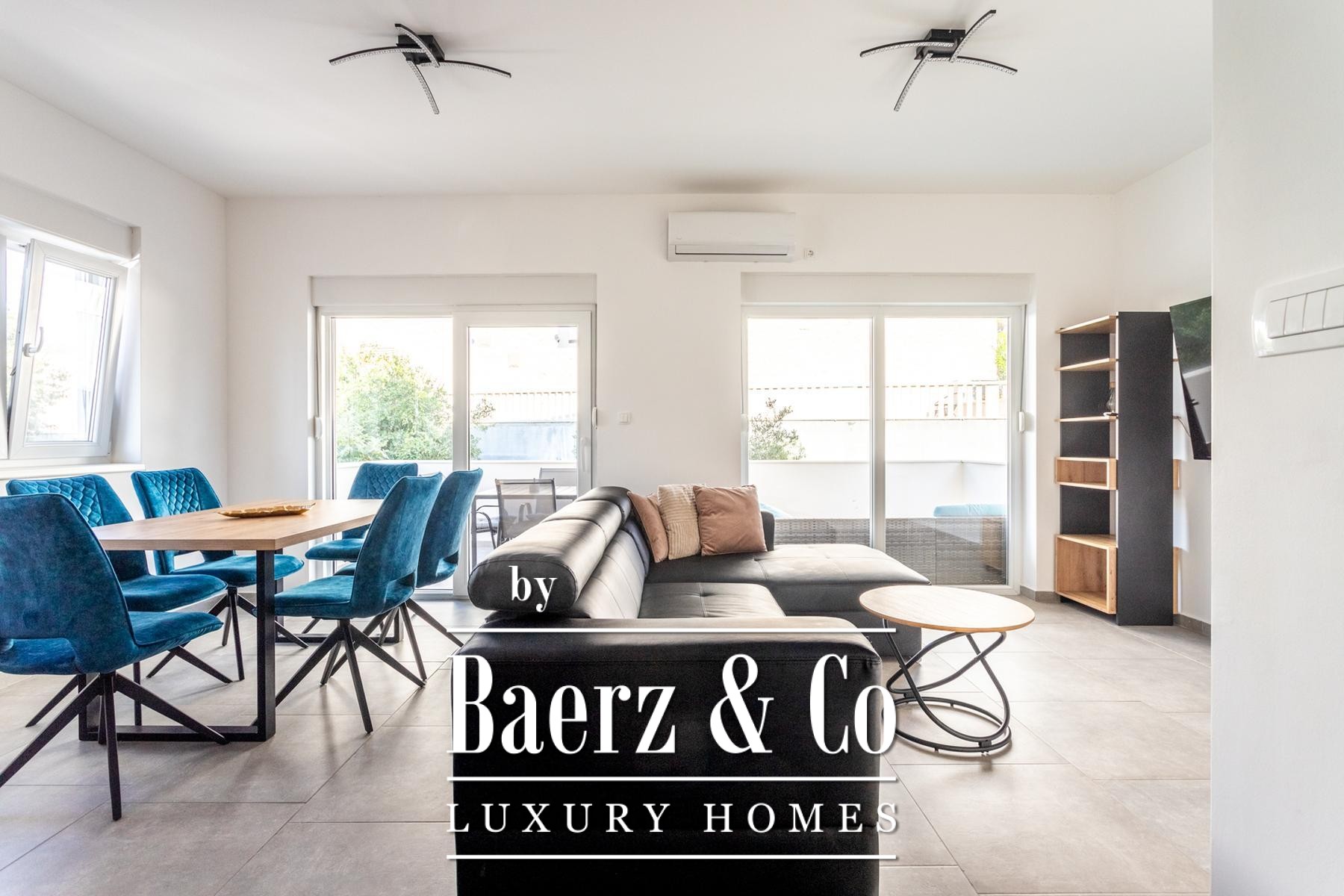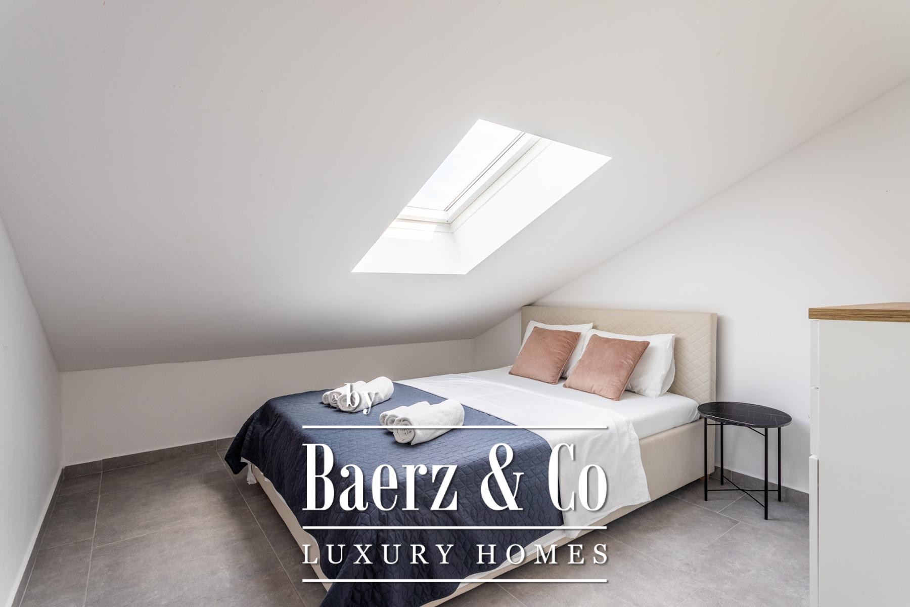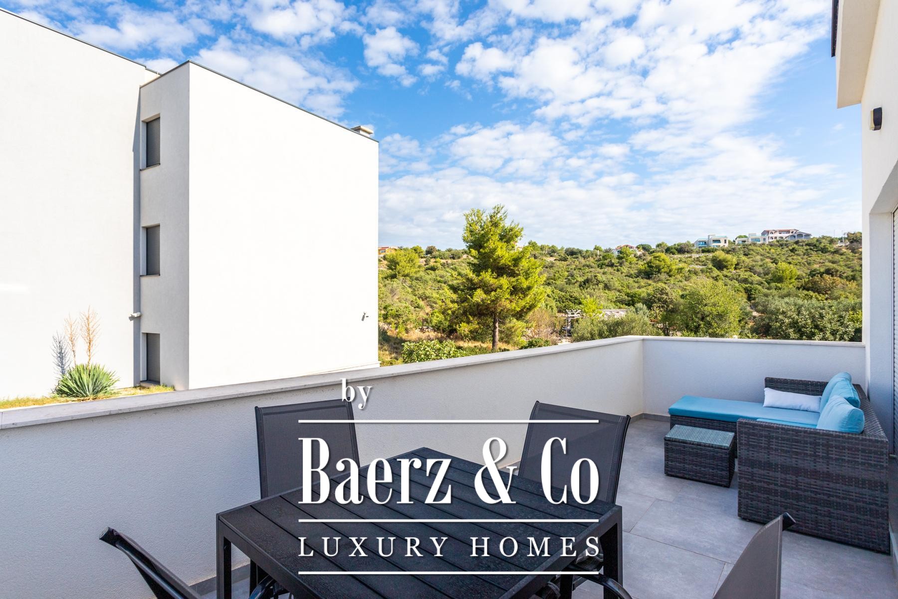Gebouwd op een compact perceel van 207 m² in Zečevo, is het huis afgewerkt volgens hoge standaarden en voorzien van drie privéparkeerplaatsen. De ligging is rustig en ingetogen, maar de kust en het strand zijn op korte loopafstand. Voor wie zoekt naar een kustpand met architectonische helderheid en functionaliteit, vormt dit huis in Rogoznica een uitgebalanceerd toevluchtsoord aan de Kroatische kust.