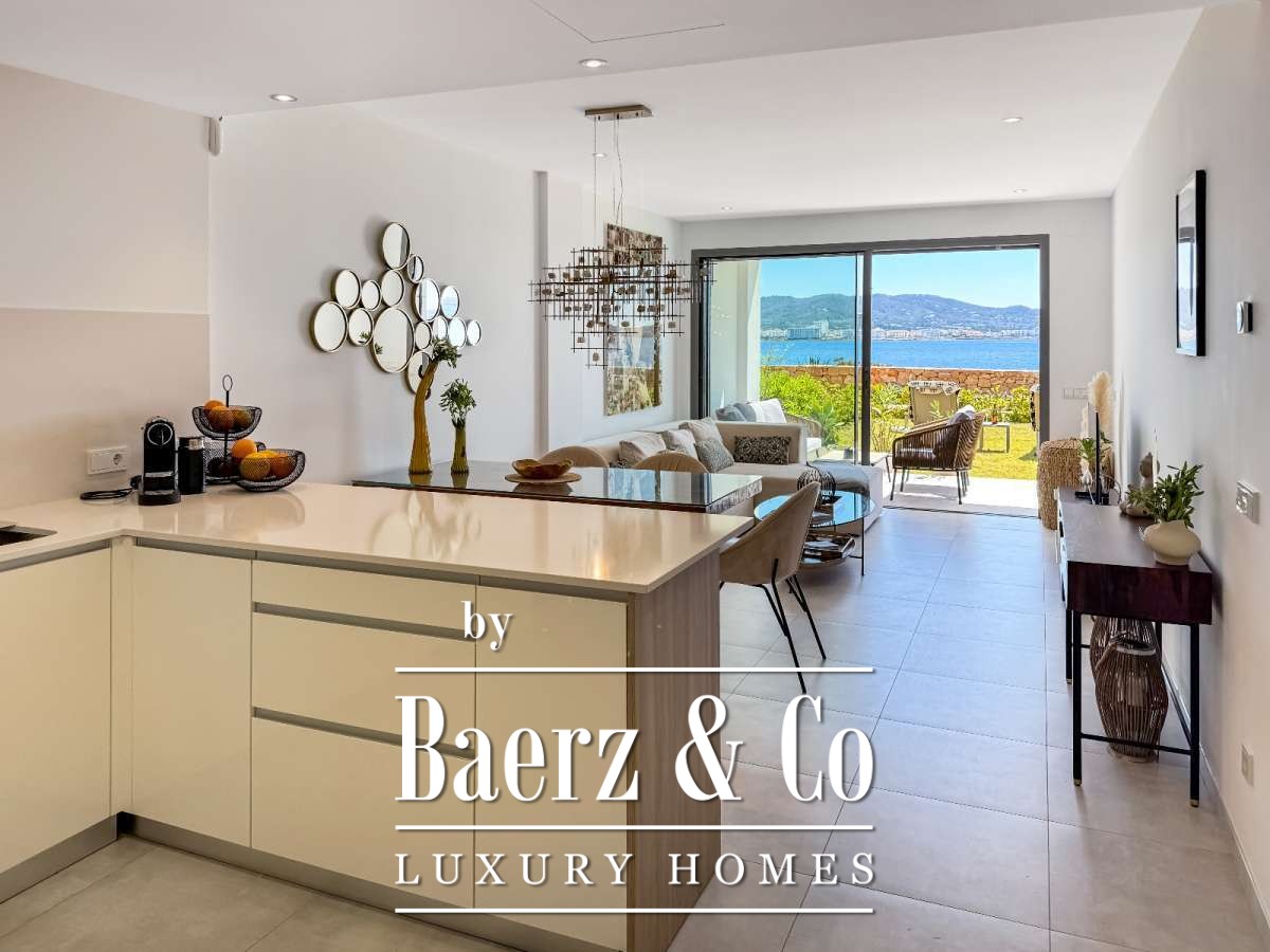 Dit uitzonderlijke appartement ligt in eerste lijn aan zee nabij de prachtige Cala Gració, bekend om haar kristalheldere water en ontspannen sfeer. Restaurants, cafés en wandelroutes langs de kust liggen op korte afstand. Het centrum van San Antonio is snel bereikbaar. Vanaf het terras en de tuin kunt u de mooiste zonsondergangen van het eiland bewonderen, die elke avond bijzonder maken.Het appartement en de indeling