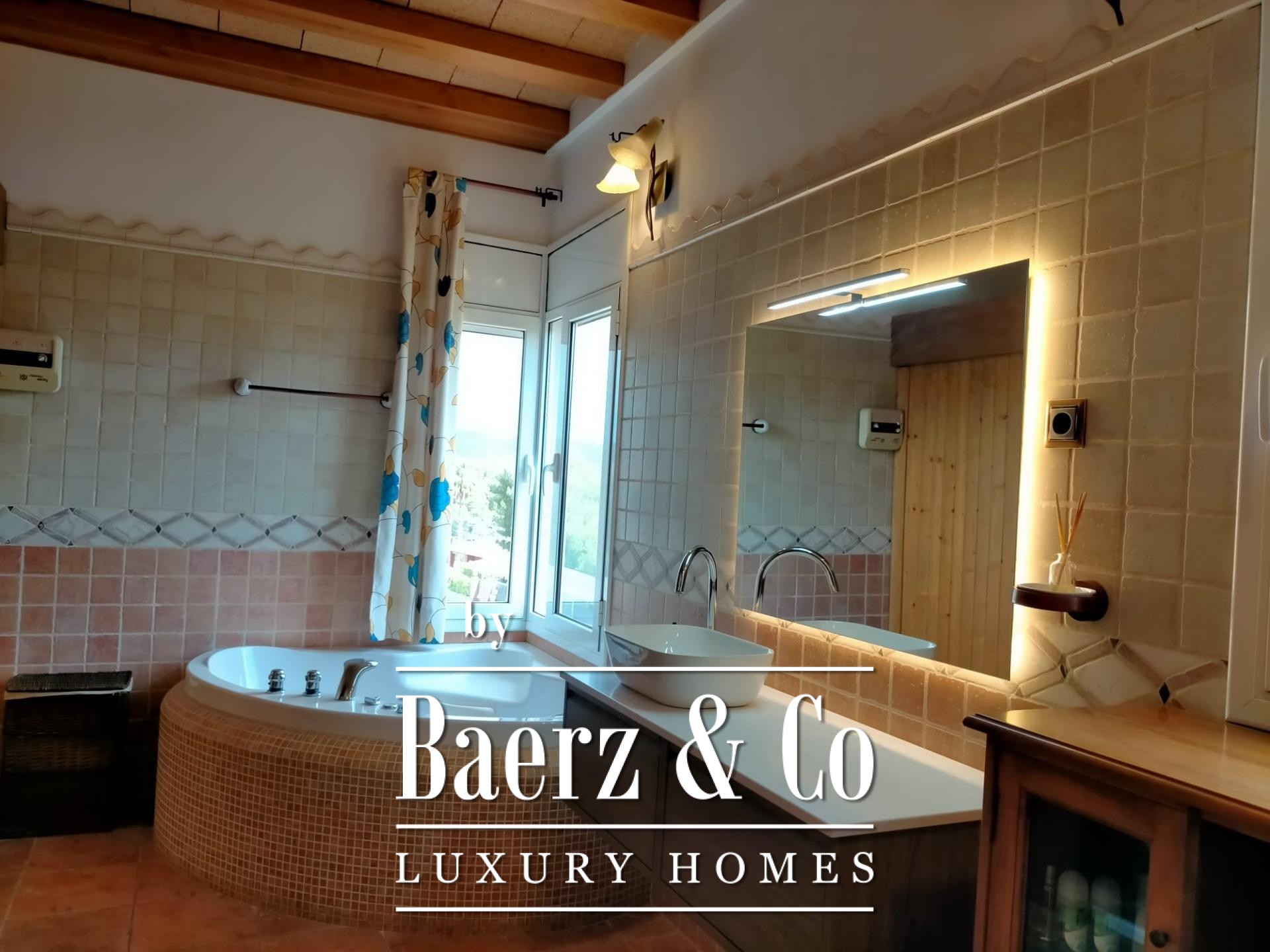 Buiten is de villa omgeven door een weelderige tuin met volwassen mediterrane beplanting, gazon en een eeuwenoude olijfboom, die het zwembad omlijst met natuurstenen randen en een waterval, en zo het ideale decor biedt voor ontspannen middagen en stijlvolle bijeenkomsten. Praktische ruimtes zijn een ruime privé garage en bergruimte, geschikt voor auto’s en seizoensgebonden bezittingen. Airconditioning, verwarming, beveiligingssystemen en een barbecue verhogen het comfort en gebruiksgemak.