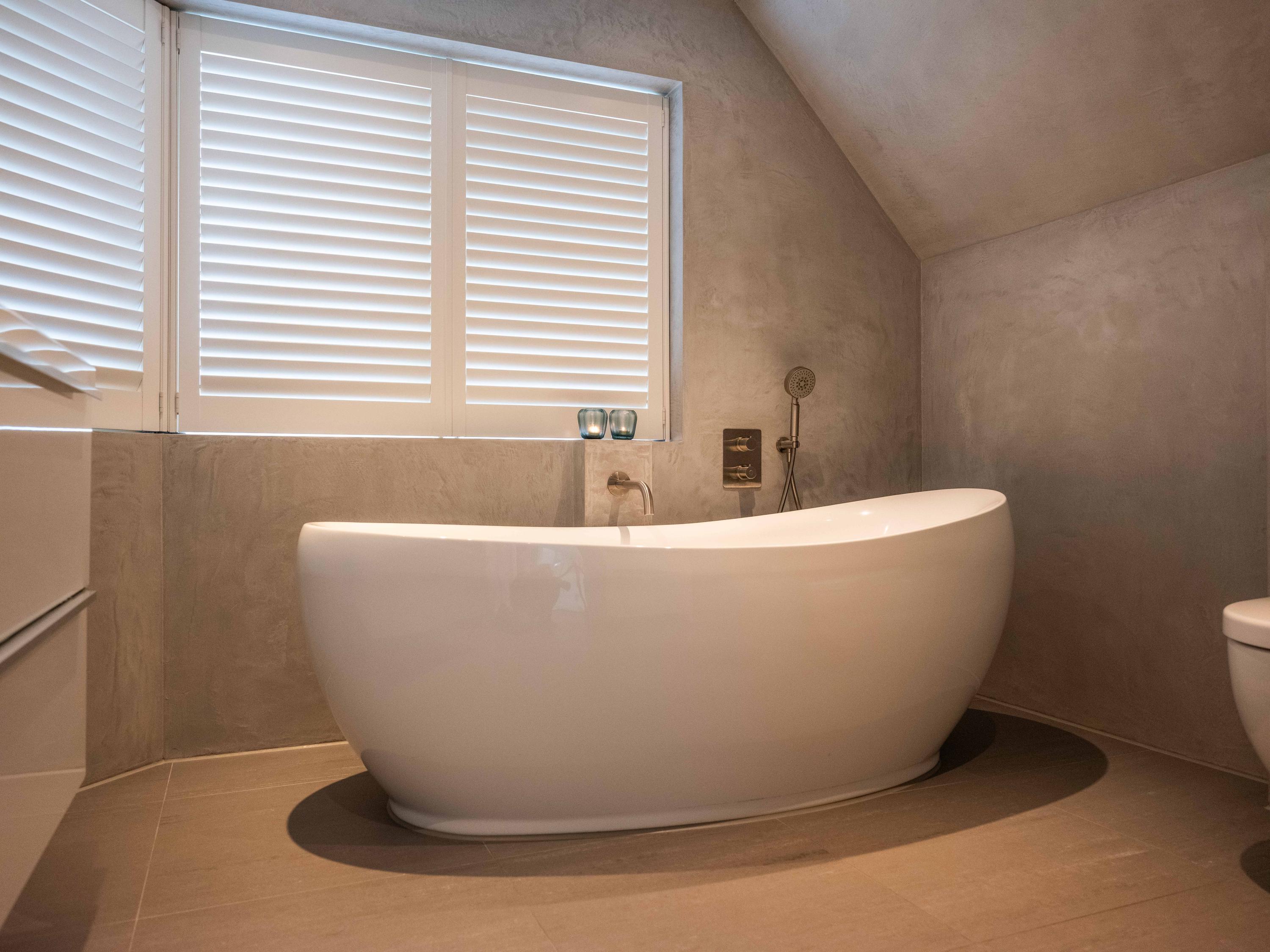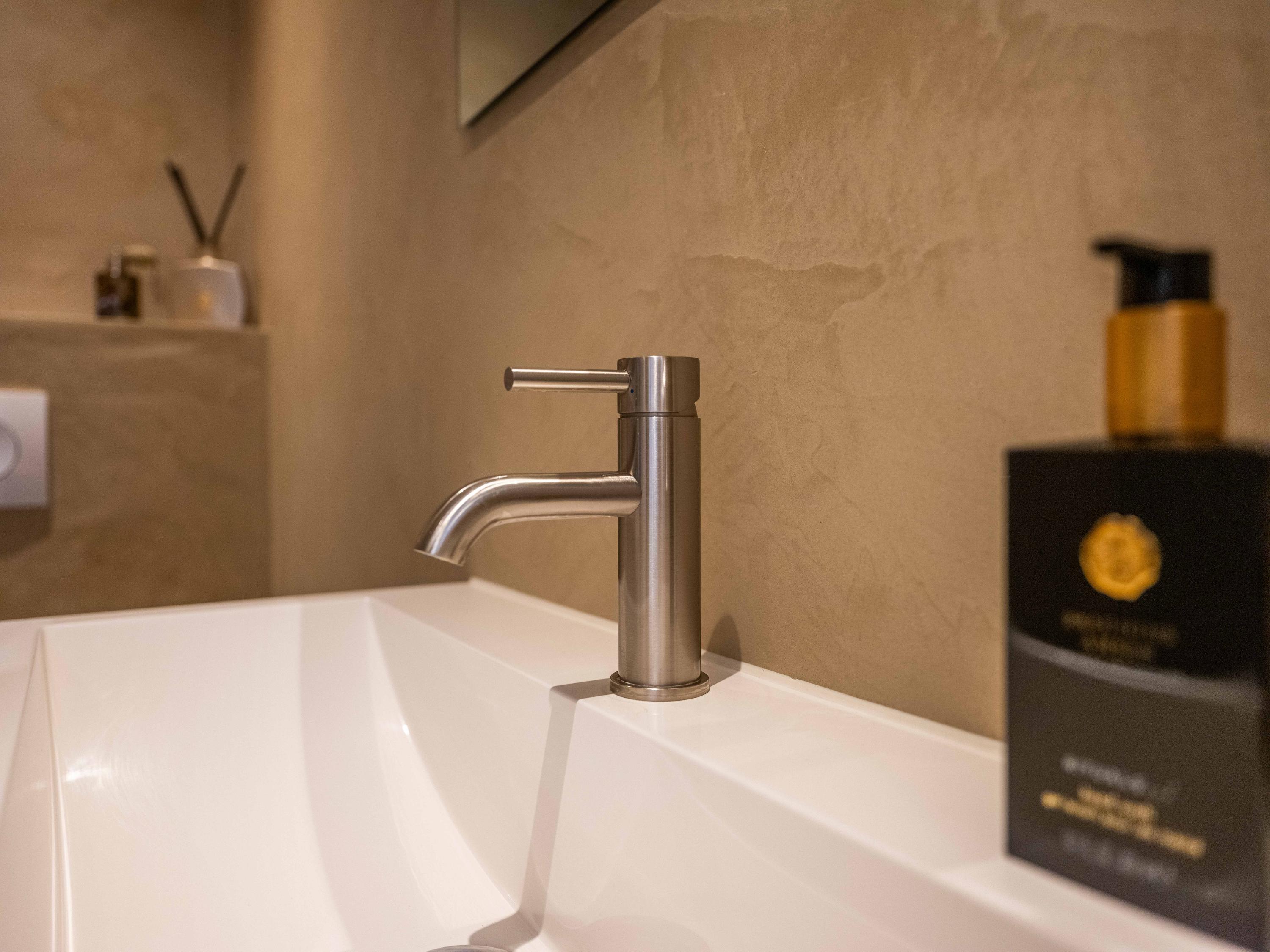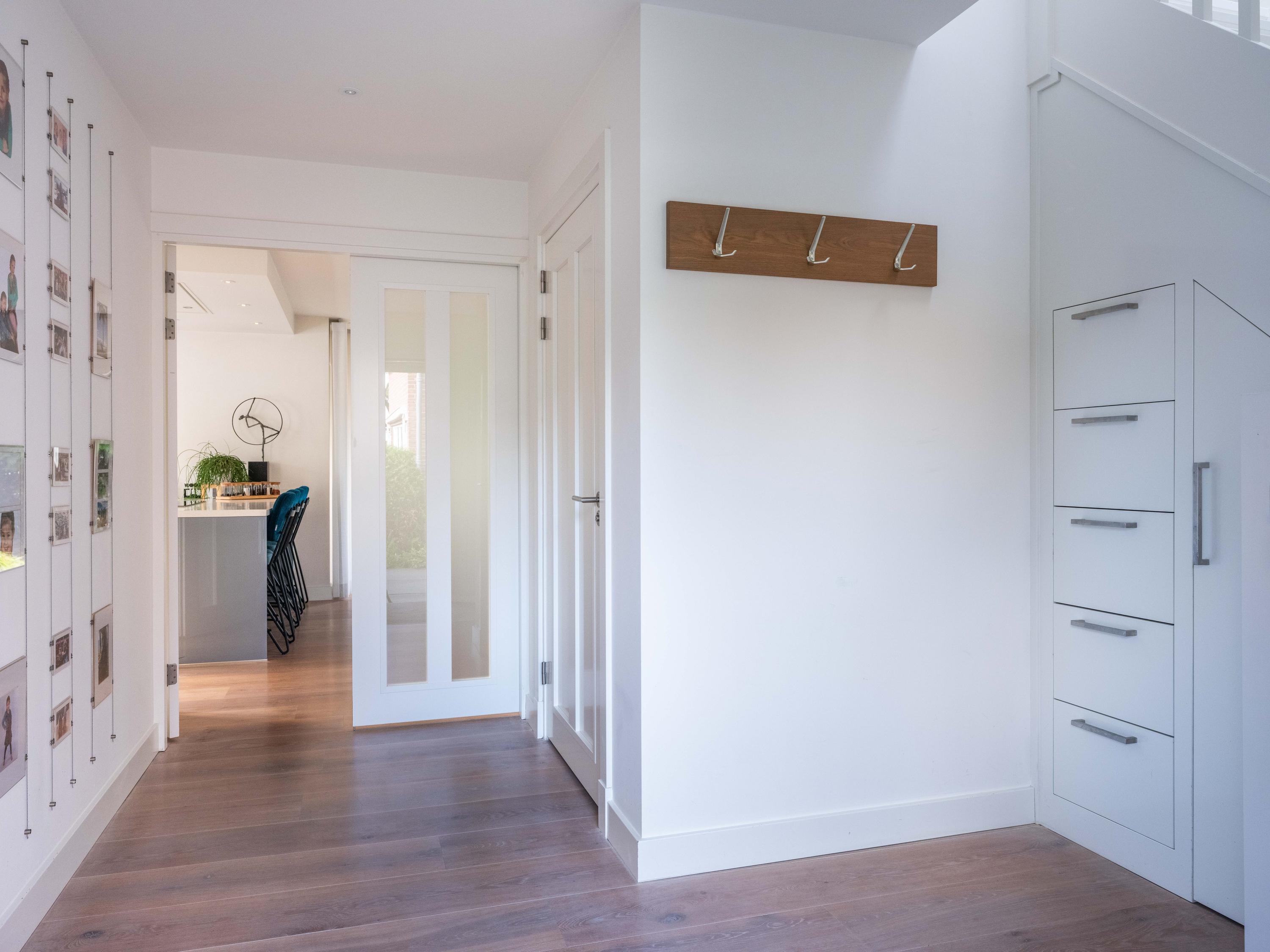 Bij binnenkomst valt direct de ruime hal op, met meterkast, extra badkamer en de trap naar boven. Onder de trap bevindt zich een praktische bergruimte. De luxe badkamer is ruim opgezet en uitgerust met een douche, toilet, wastafel en radiator.